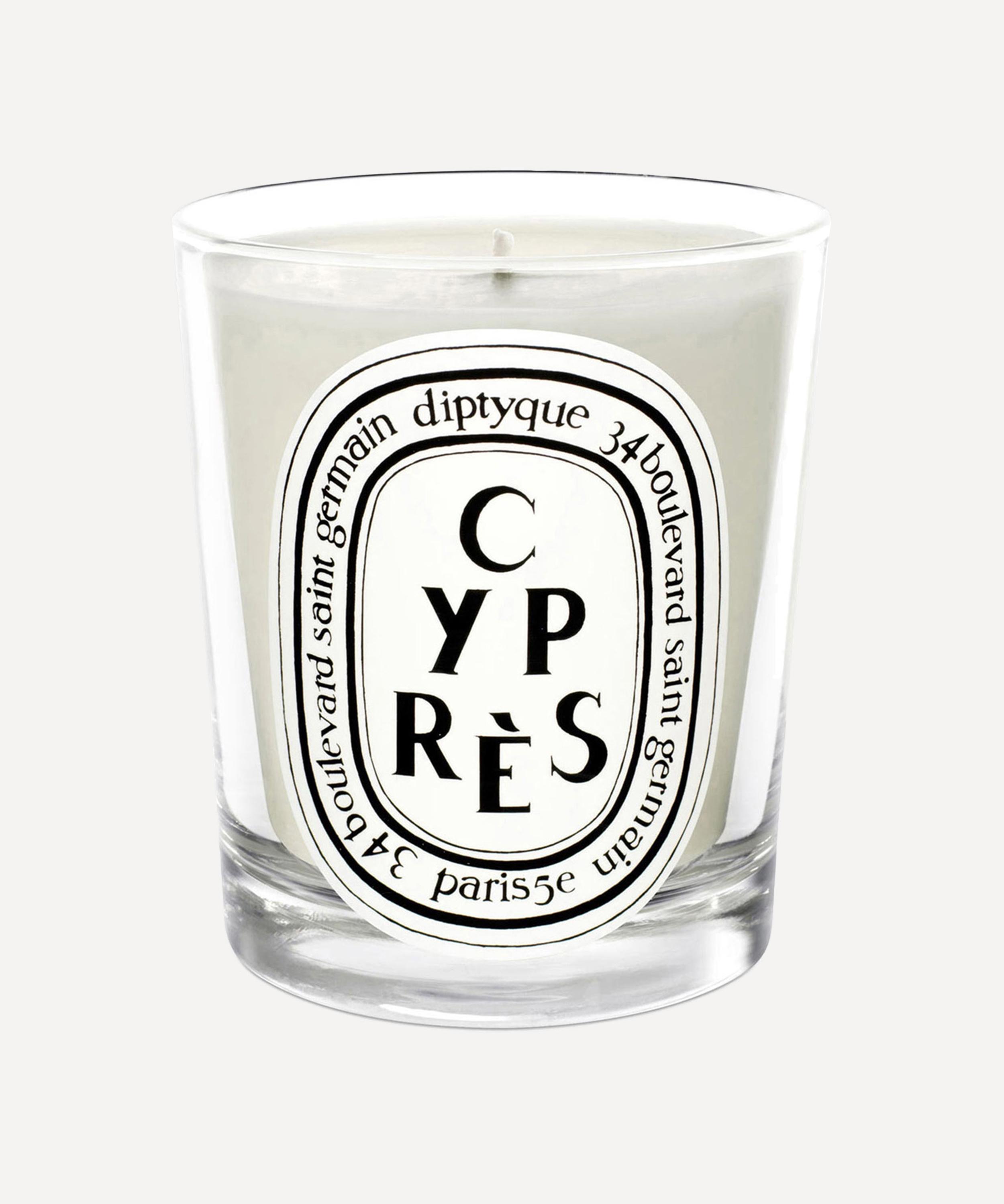 Diptyque's Cyprès scented candle evokes a green grove of cypress trees in the late summer sun.