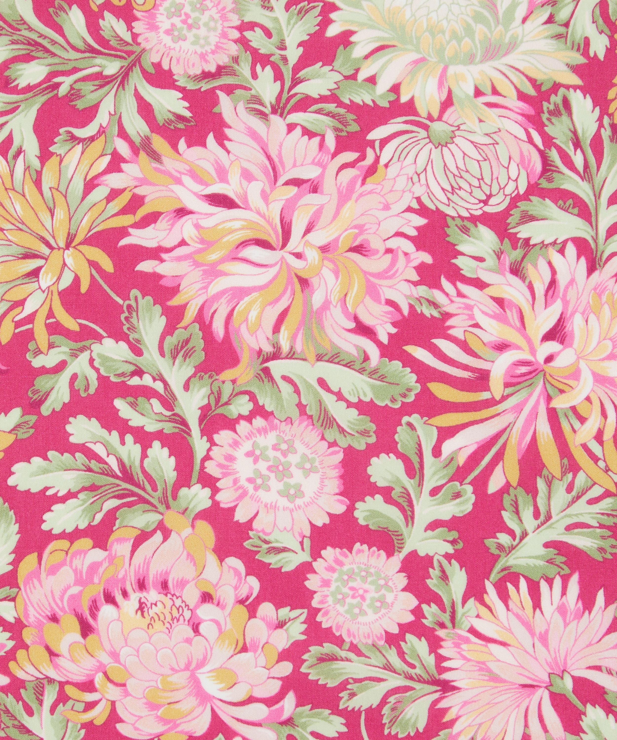 A bold, exaggerated botanical adorned with lavishly intricate petals, Dahlia Grace draws its inspiration from a hand-painted Liberty furnishing artwork from the 1990s. Bursting with sweeping dahlias and elegant chrysanthemums entwined in lush, ornamental foliage, the design captures the richness of the original through refined linework and layered shading. Rendered in both vivid and subdued palettes, the blooms appear to drift in graceful unison.
