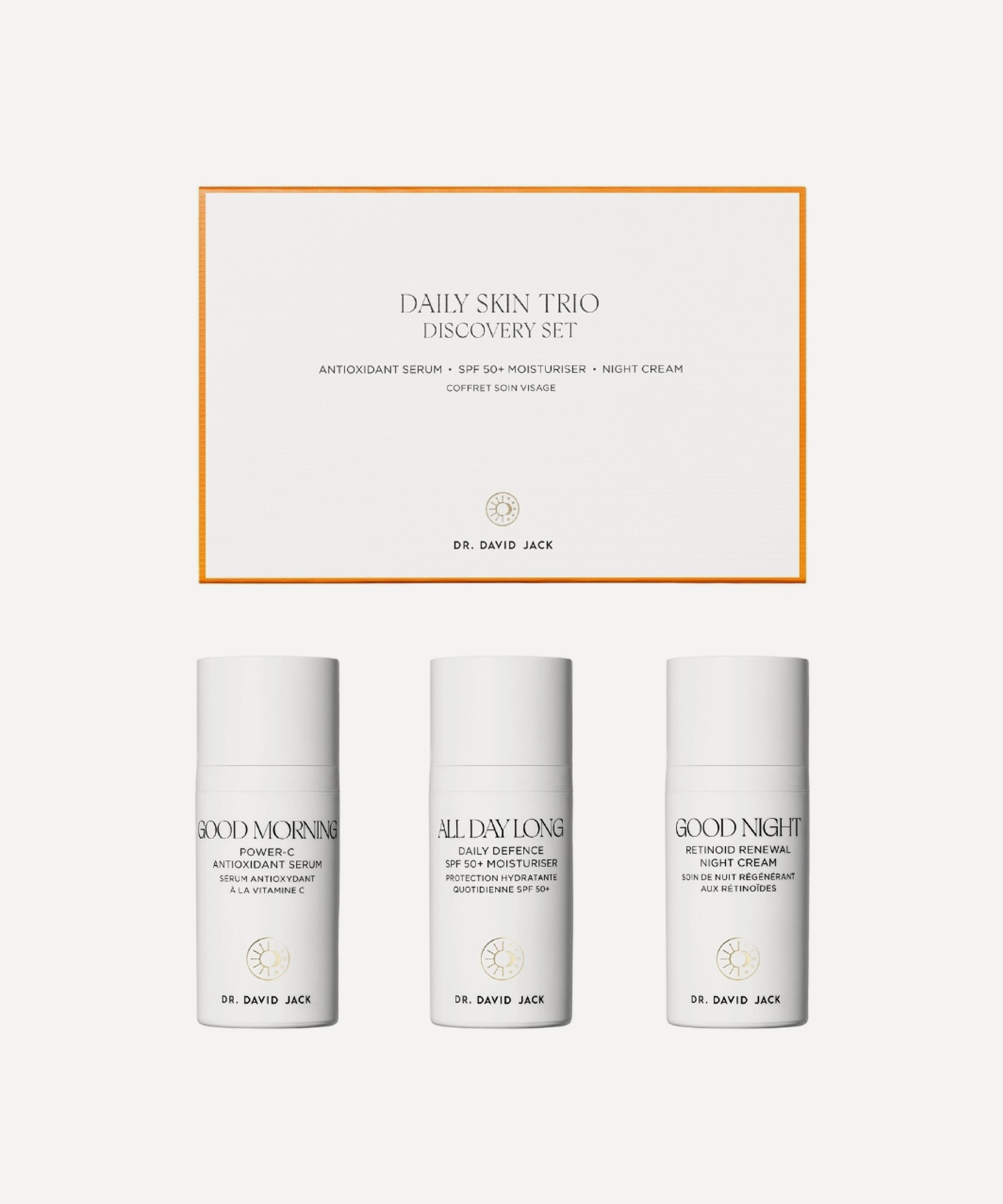 Unveil a new, awakened complexion with Dr. David Jack’s Daily Skin Trio Discovery Set, consisting of antioxidant-rich formulas that restore and fortify the skin.