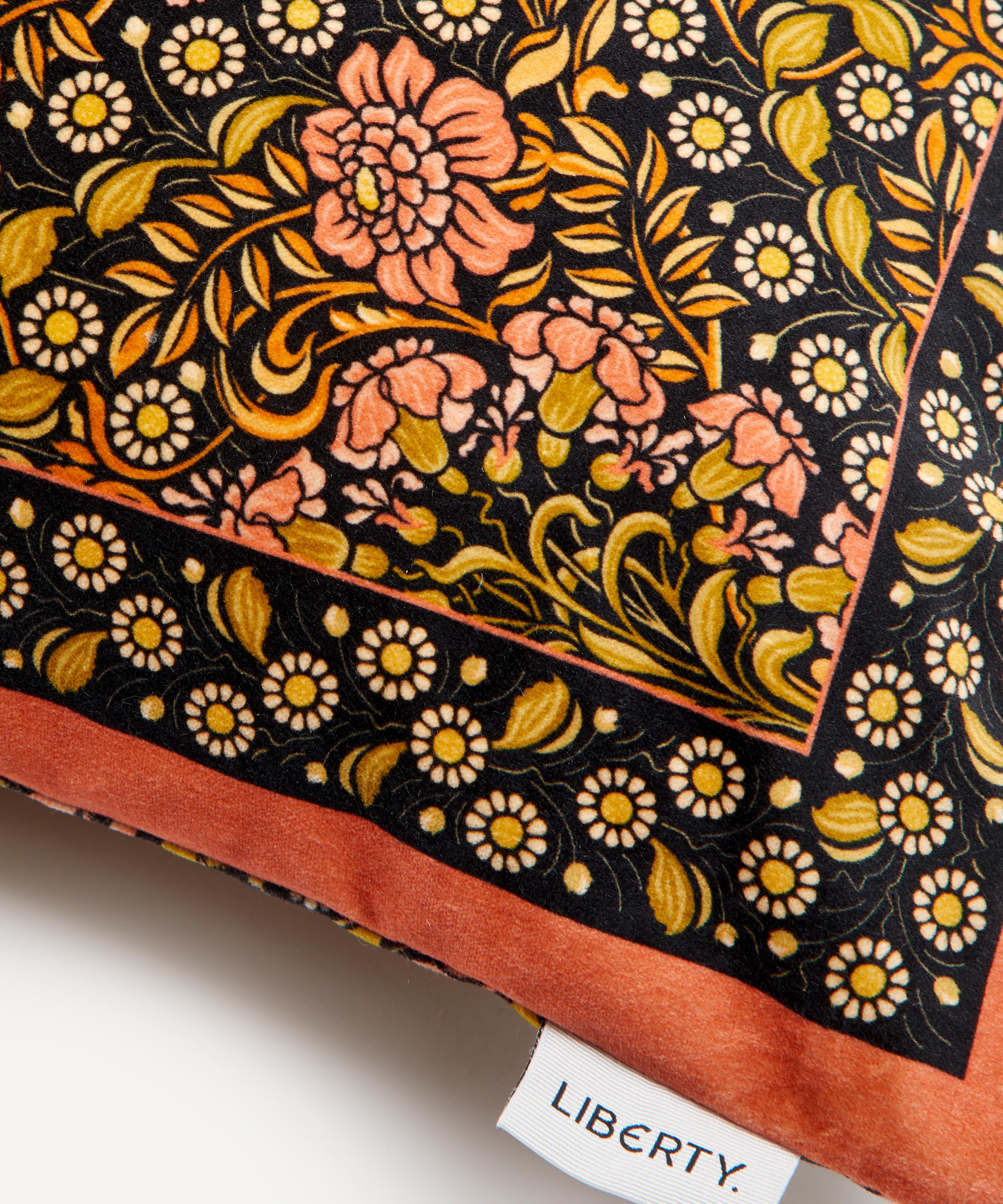 Liberty’s Daisy Chain cushion is crafted in England from cotton velvet with a plump duck feather filling, its classic placement design printed by experts in Italy.