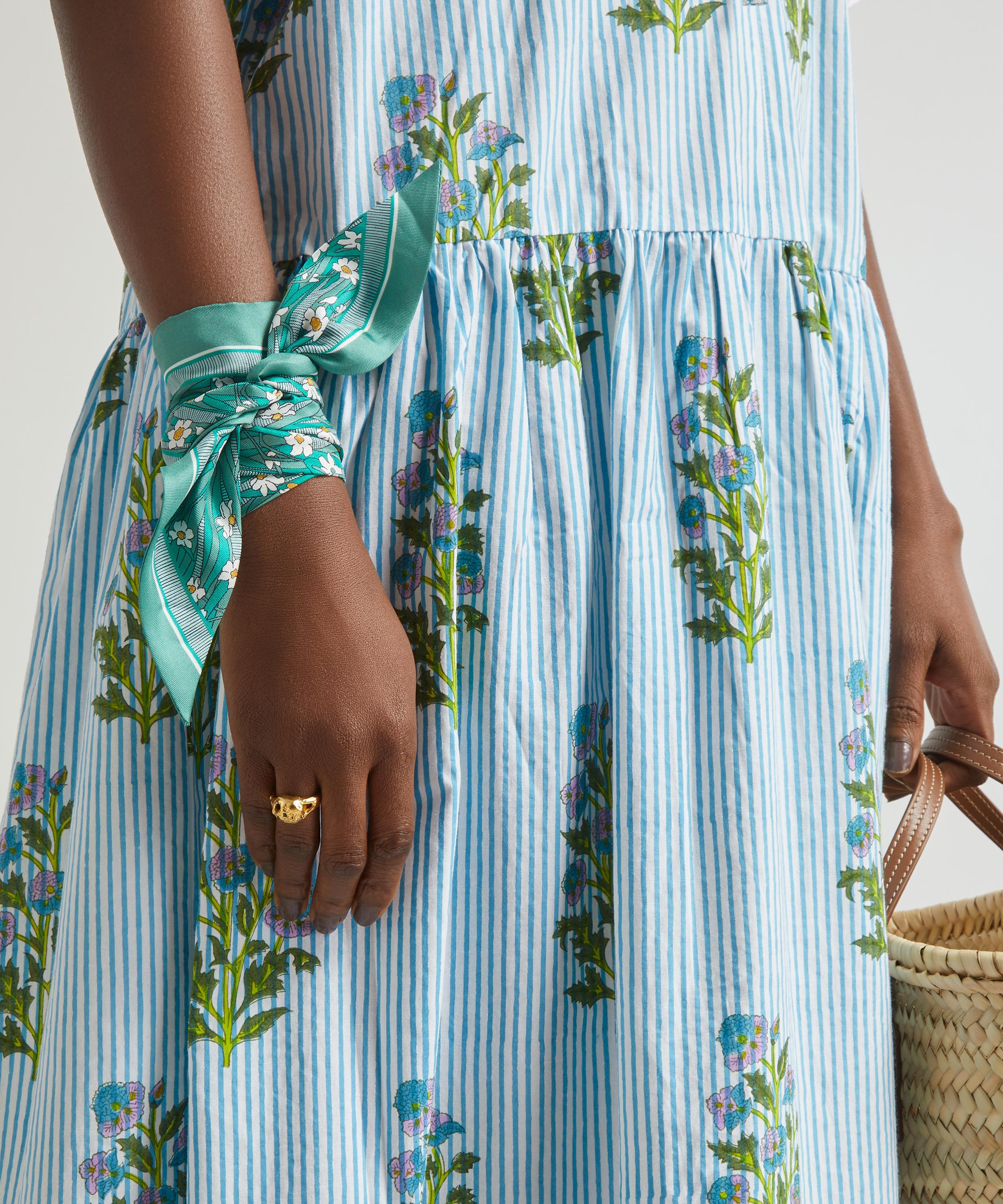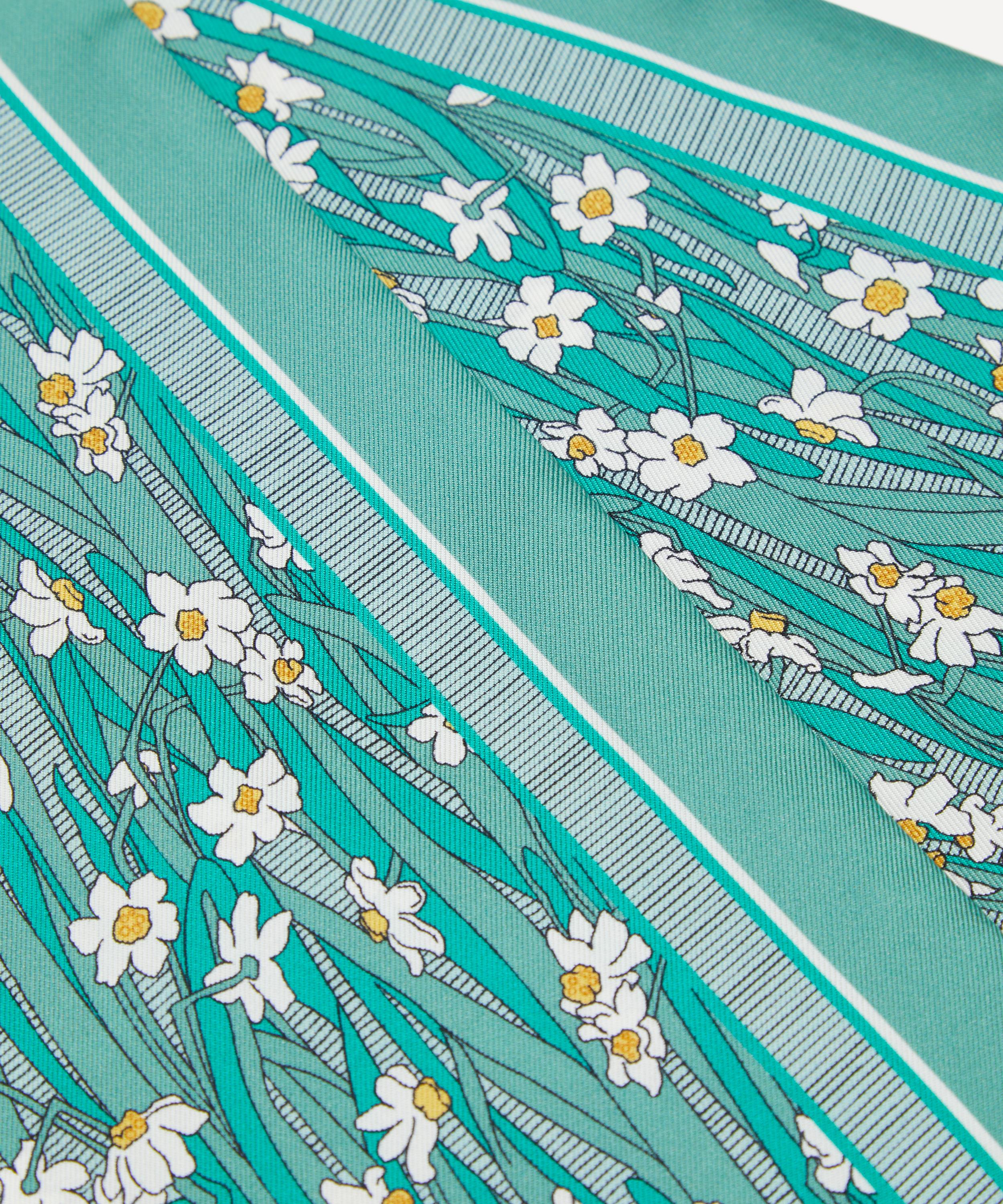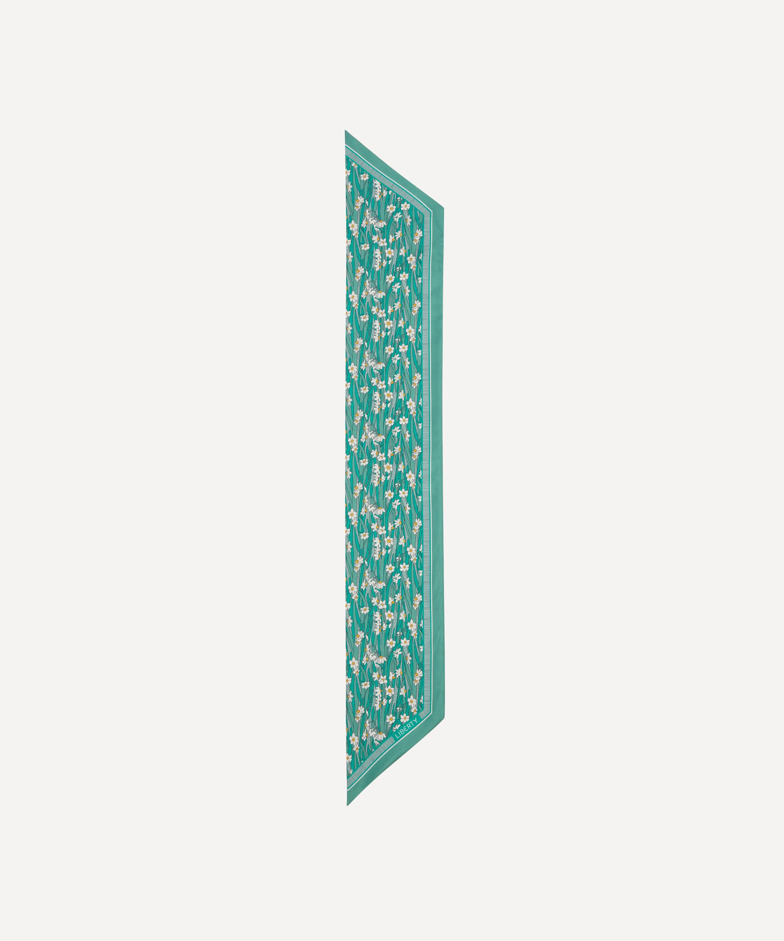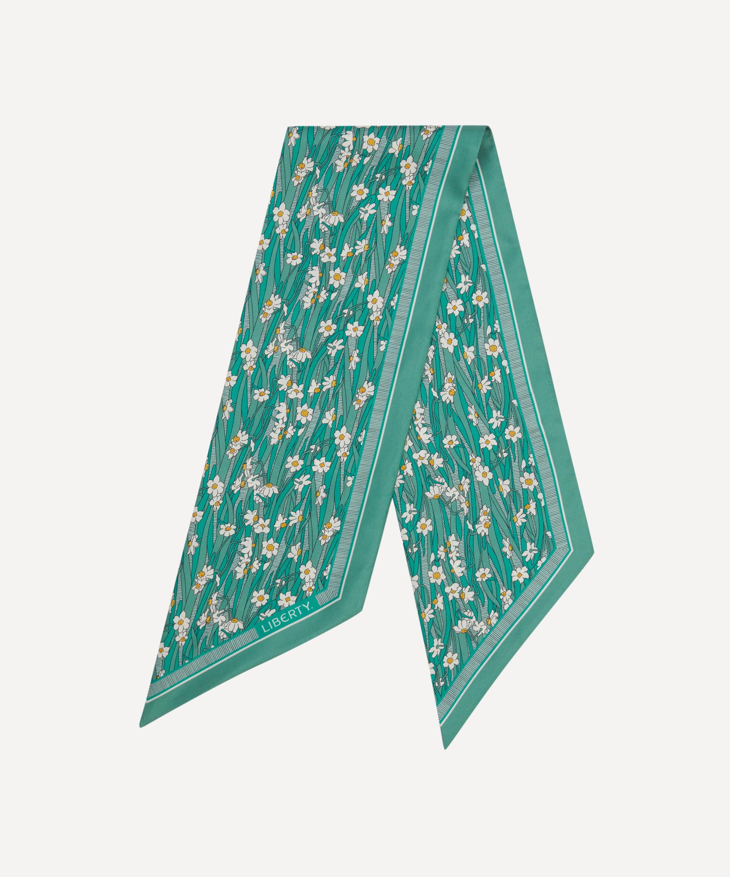 Effortlessly elevate your edit with Liberty’s Daisy Lawn scarf for a touch of print. This vibrant scarf has been crafted from luxurious and durable silk twill, featuring our Daisy Lawn print - a reworked artwork from 1903. It’s characterised by a delicate floral stripe made up of narcissi flowers and foliage. Complete with a slim border and hand rolled edges, try draping it over neutral outerwear for a burst of contemporary colour, or knot it close to the neck to lock in warmth.