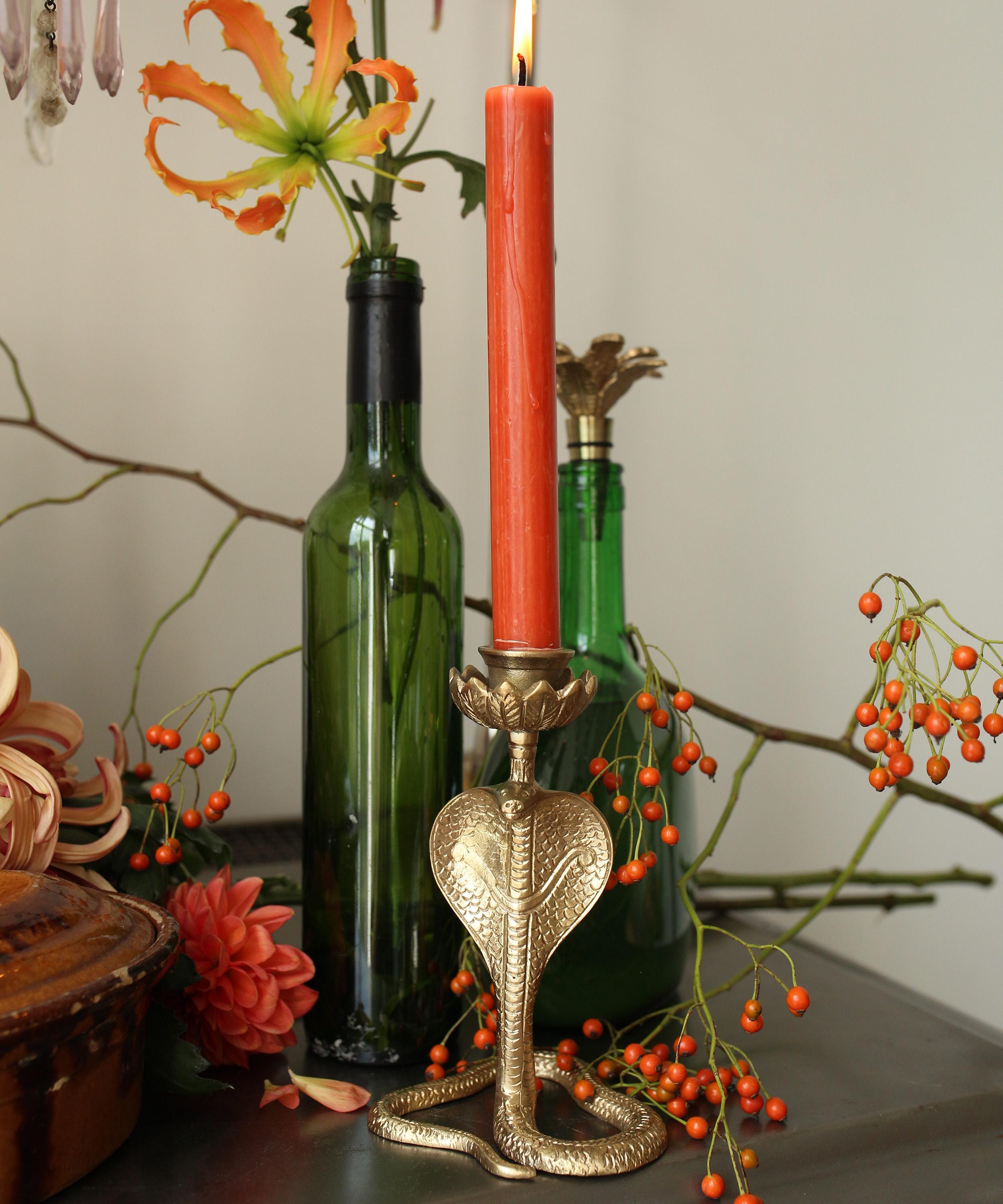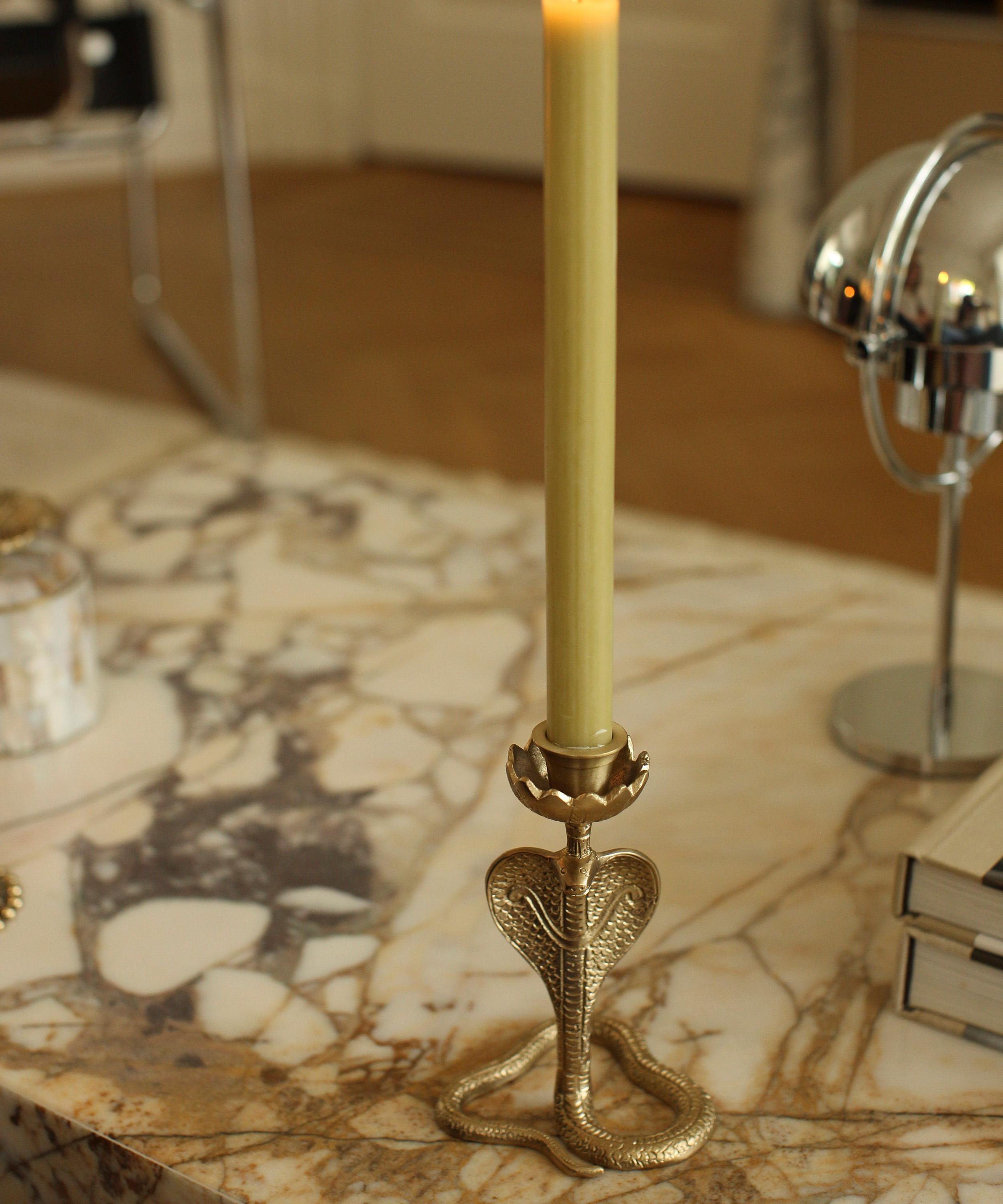 Give your table setting a sense of well-lit drama with this brass Dakota Snake candlestick holder from Doing Goods.