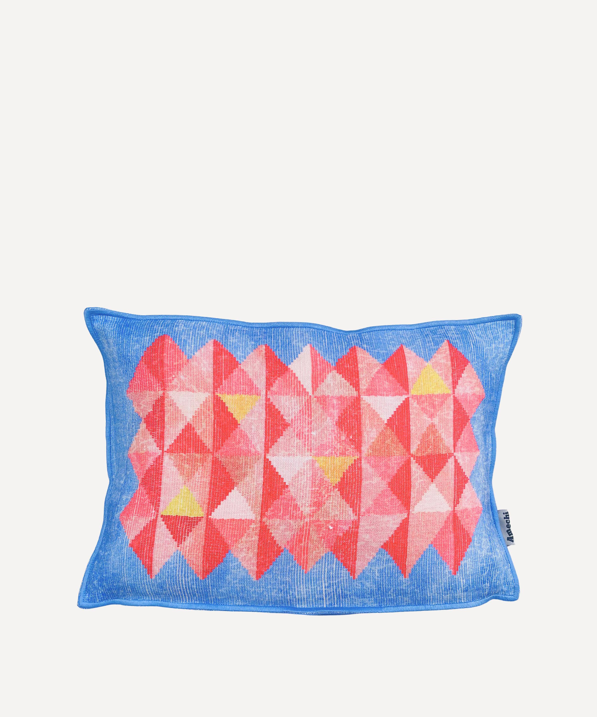 This cushion is part of the brand’s Kirdi collection, inspired by the rich design history of the modesty aprons worn by the Fali ethic group of far north of Cameroon and North Eastern Nigeria. Meticulously crafted from linen, this cushion features a colourful geometric pattern that has been hand drawn and digitally illustrated to imitate the beadwork of its source material. Arrange alongside brightly hued soft furnishings to channel vibrant, artful interior styling.