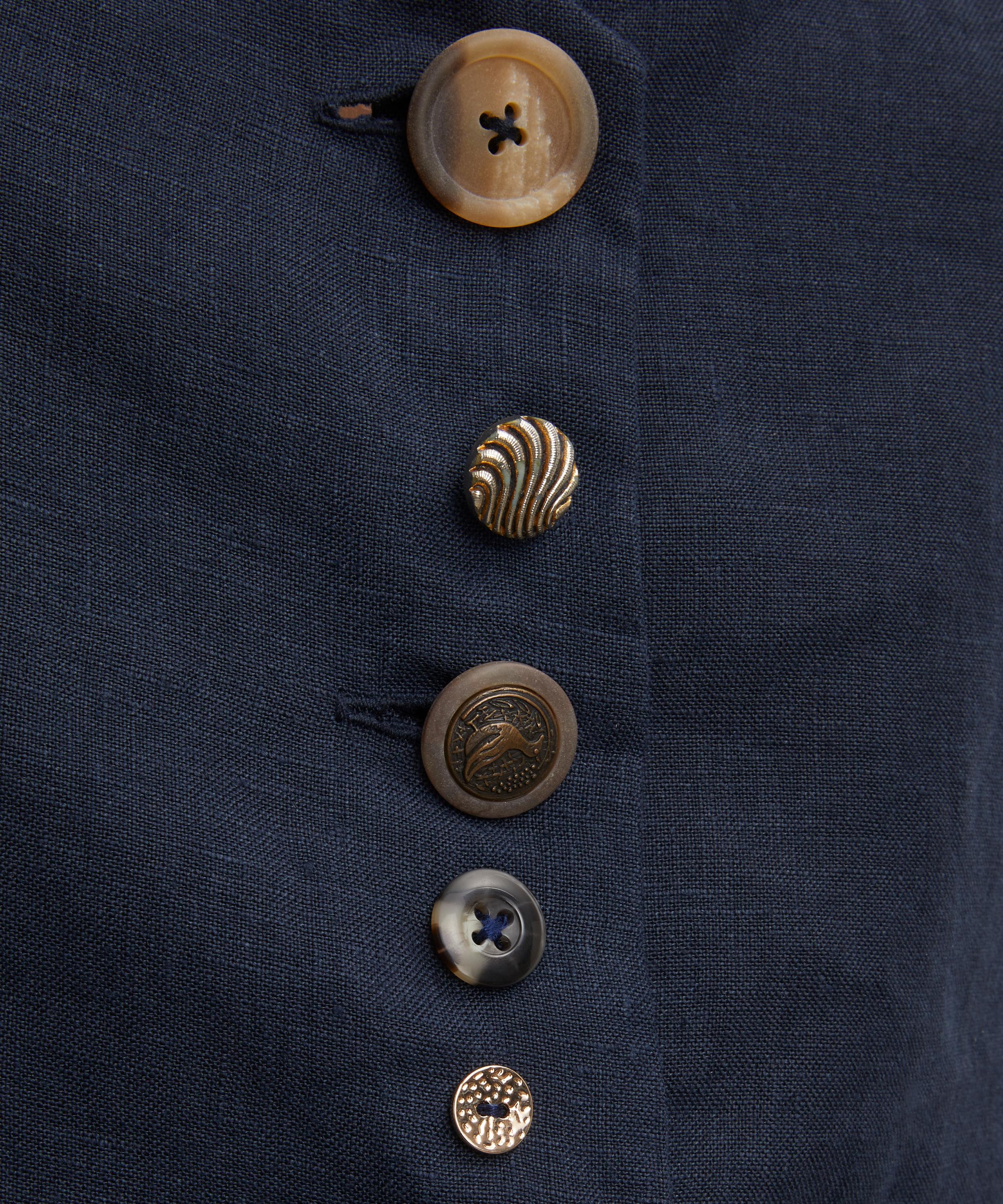 Easy and effortless, this vintage-inspired waistcoat features a smattering of assorted buttons, their composition ranging from sea glass to ceramic. Crafted from a lightweight linen, perfect for warmer months, this piece will be an elevated twist to your everyday edit – especially when paired with the Celeste Trousers.