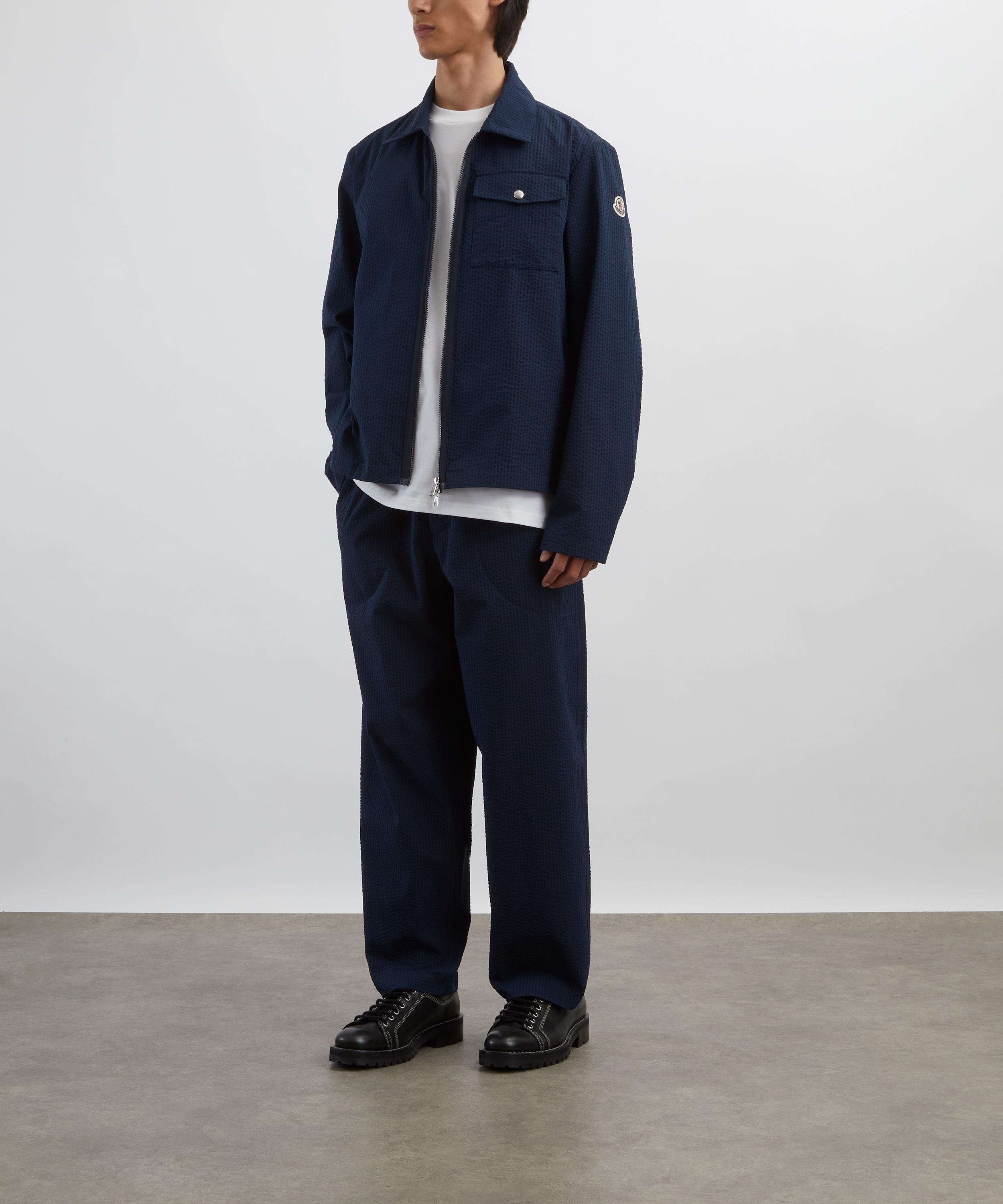 This Dark Blue Seersucker Shirt Jacket from Italian lifestyle brand Moncler displays the slick finishes and technical tailoring the brand is known for.