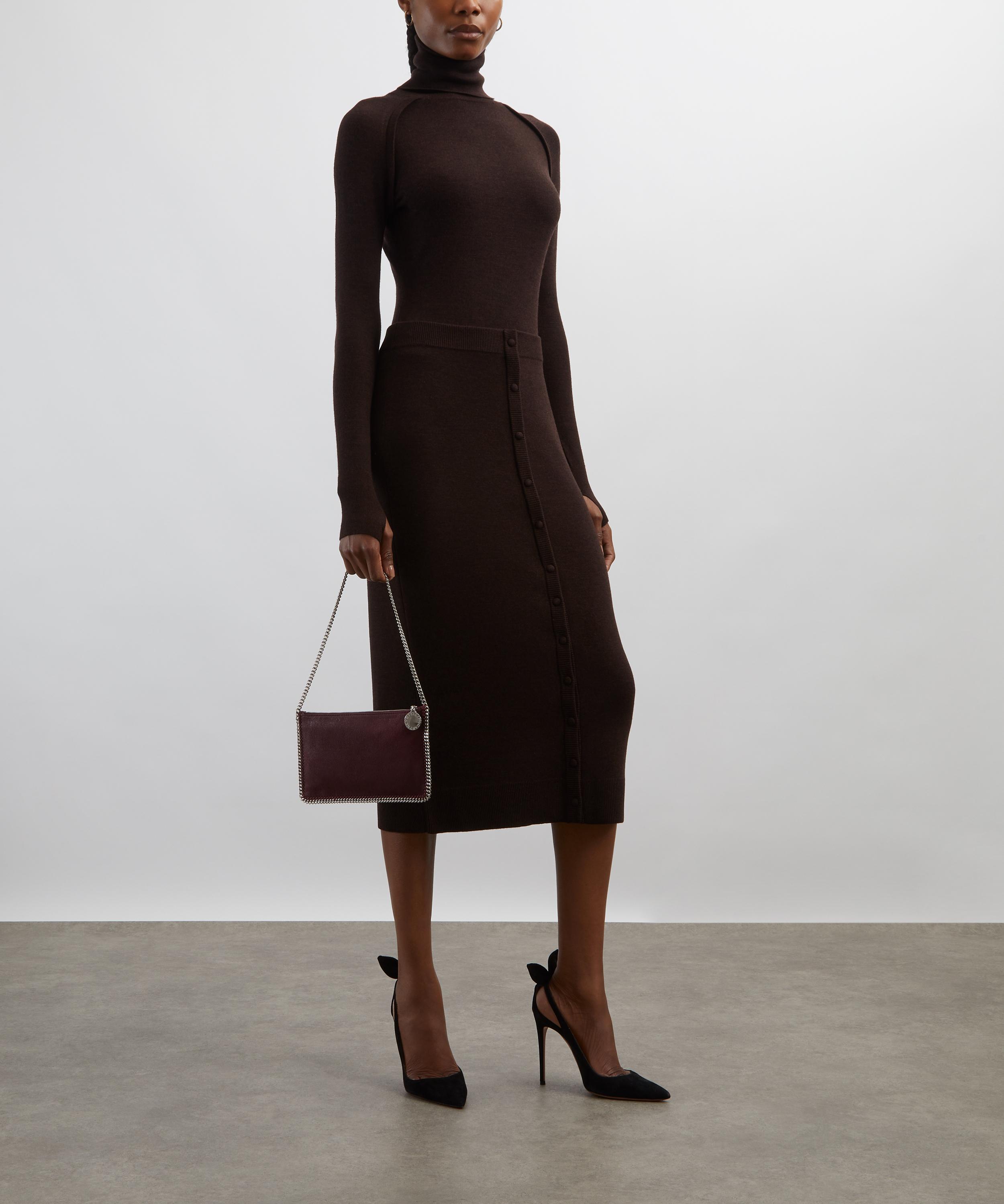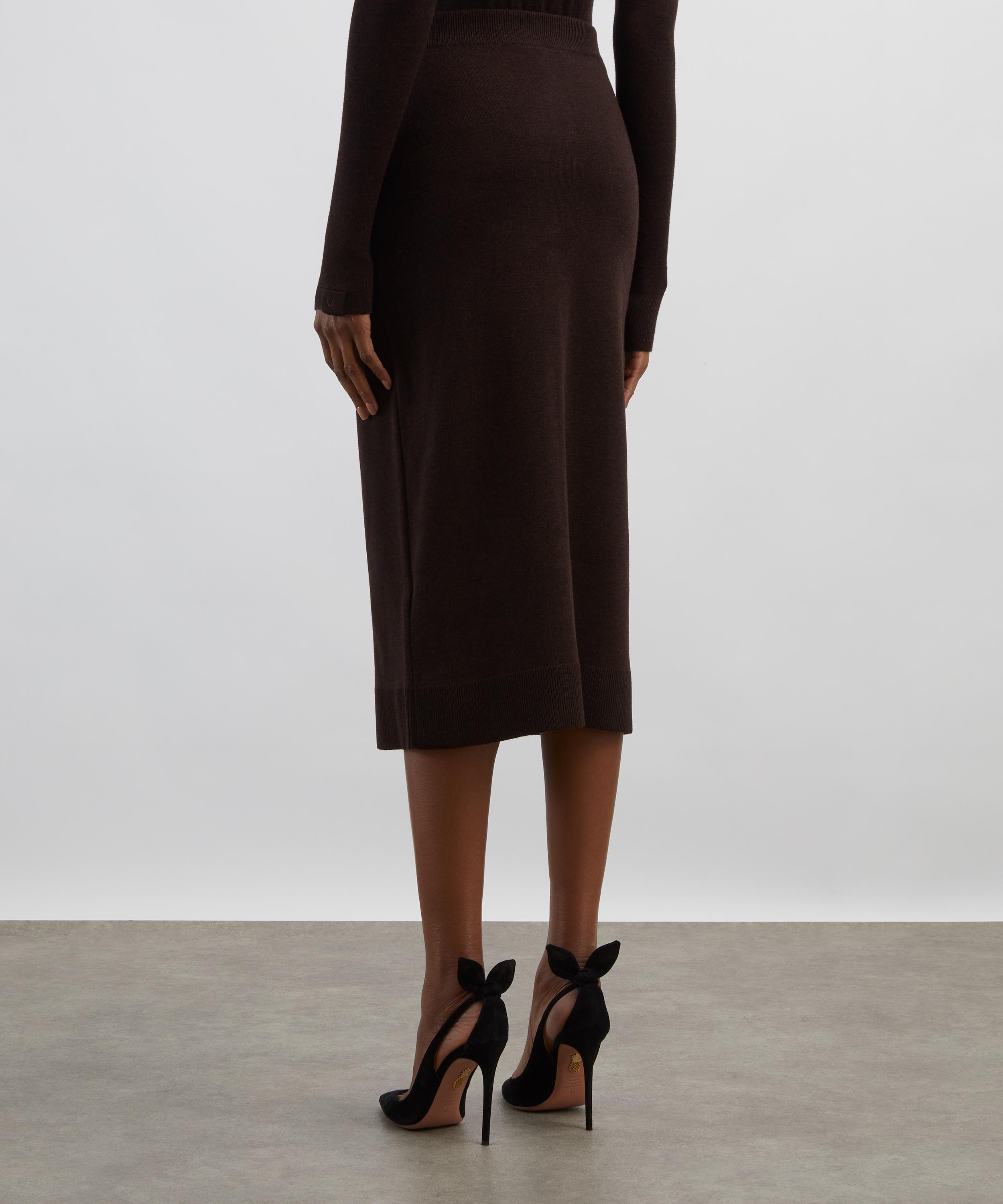 The Dark Chocolate Button Detail Midi Skirt from Victoria Beckham serves as the foundation of the modern woman's wardrobe with its timeless design and sophisticated silhouette.