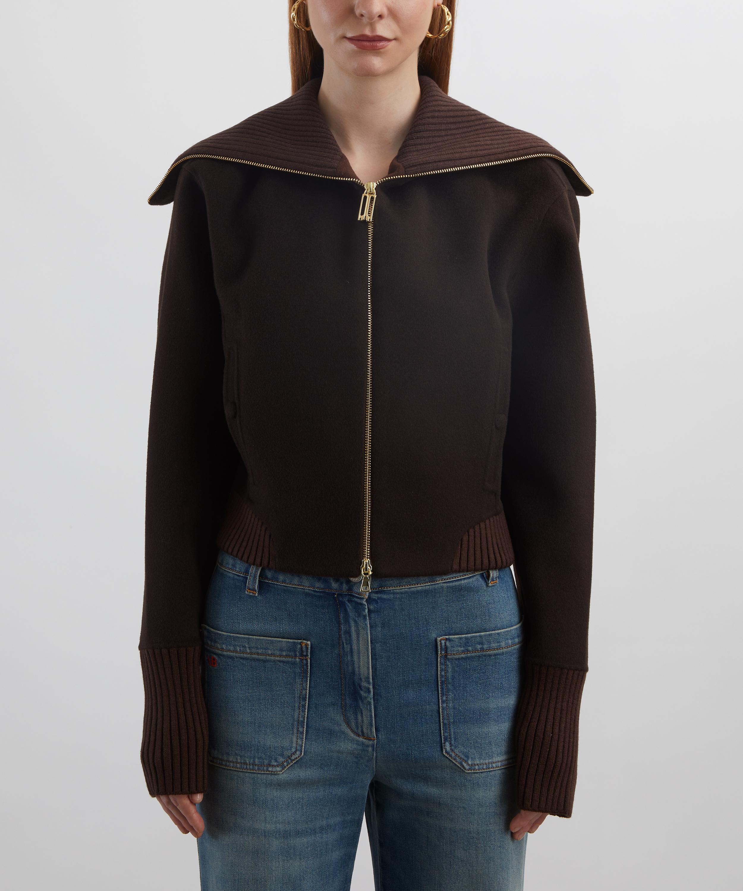 The Double-Faced Bomber Jacket from Victoria Beckham serves as the foundation of the modern woman's wardrobe with its timeless design and sophisticated silhouette.