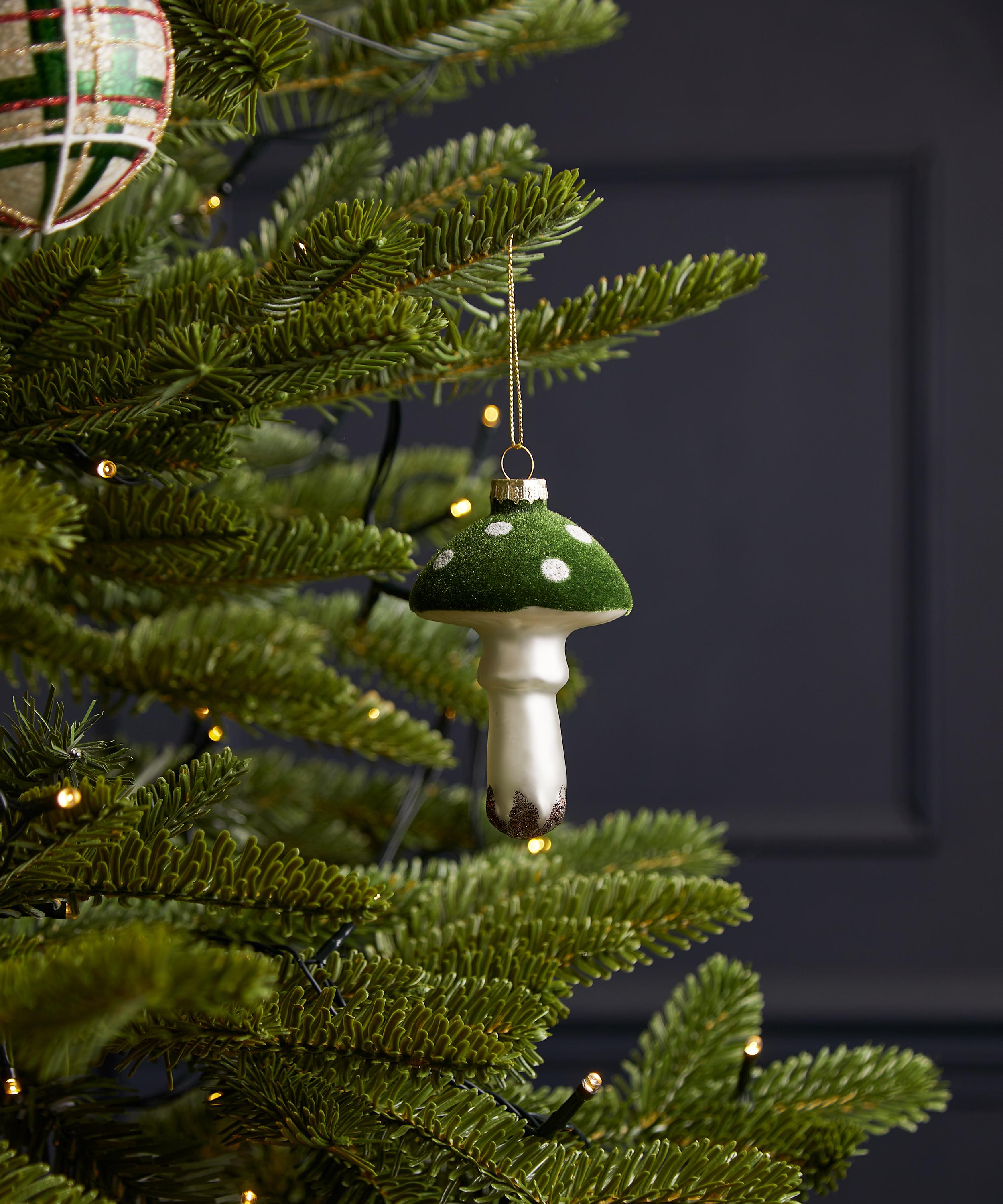 Deck out your tree with a touch of whimsy and bring the magic of the season to life with this ornament. An alternative to traditional decorations, it features a dark green mushroom with glitter detailing – a playful option for those seeking a treasured heirloom piece, use to bring a pop of colour to your festive display.