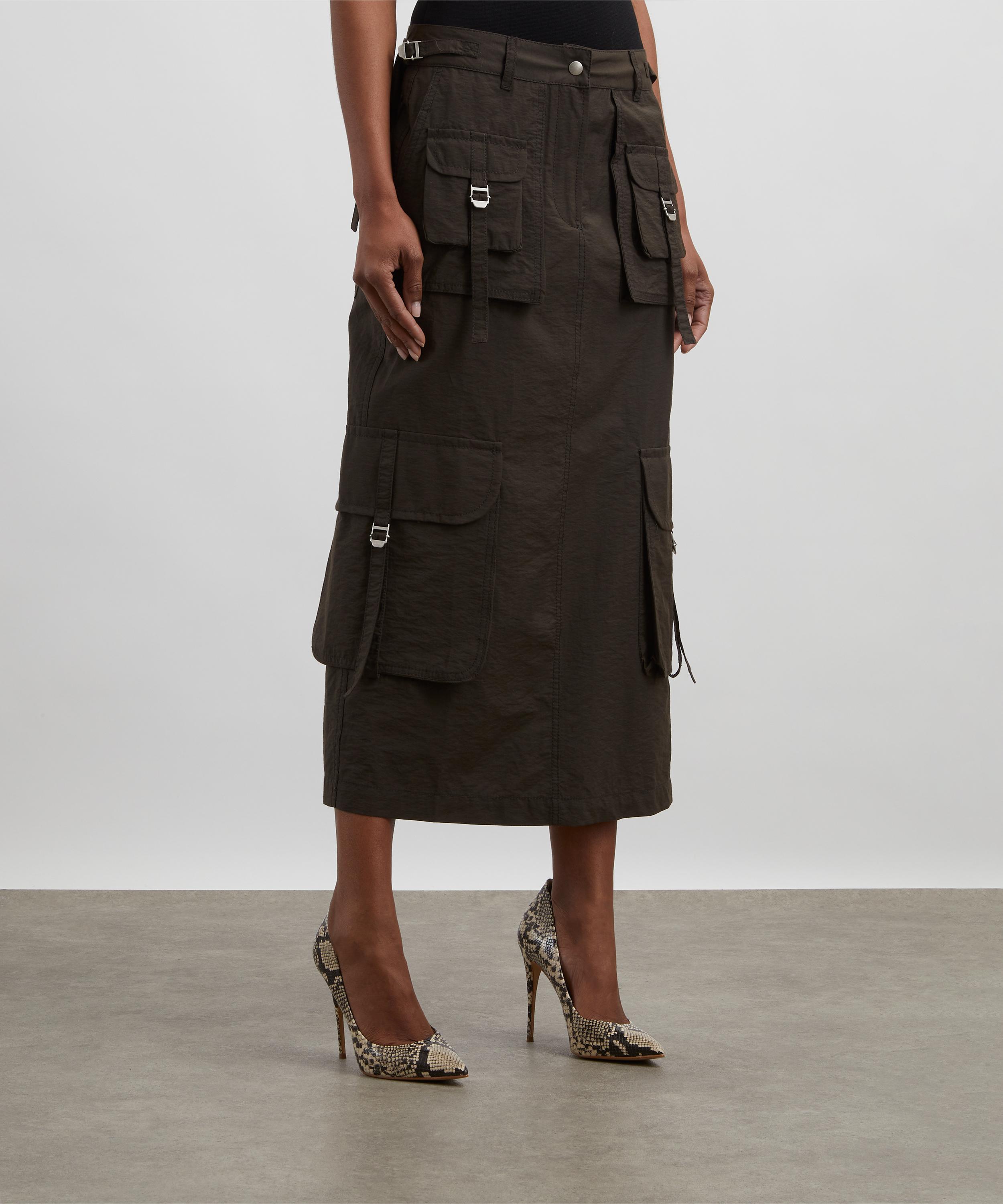 Crafted from a cotton-blend technical fabric with a soft, crinkled texture, this skirt is cut to a relaxed fit, featuring multiple cargo pockets. Its utilitarian design combines practicality with effortless style, making it a versatile addition to any wardrobe.