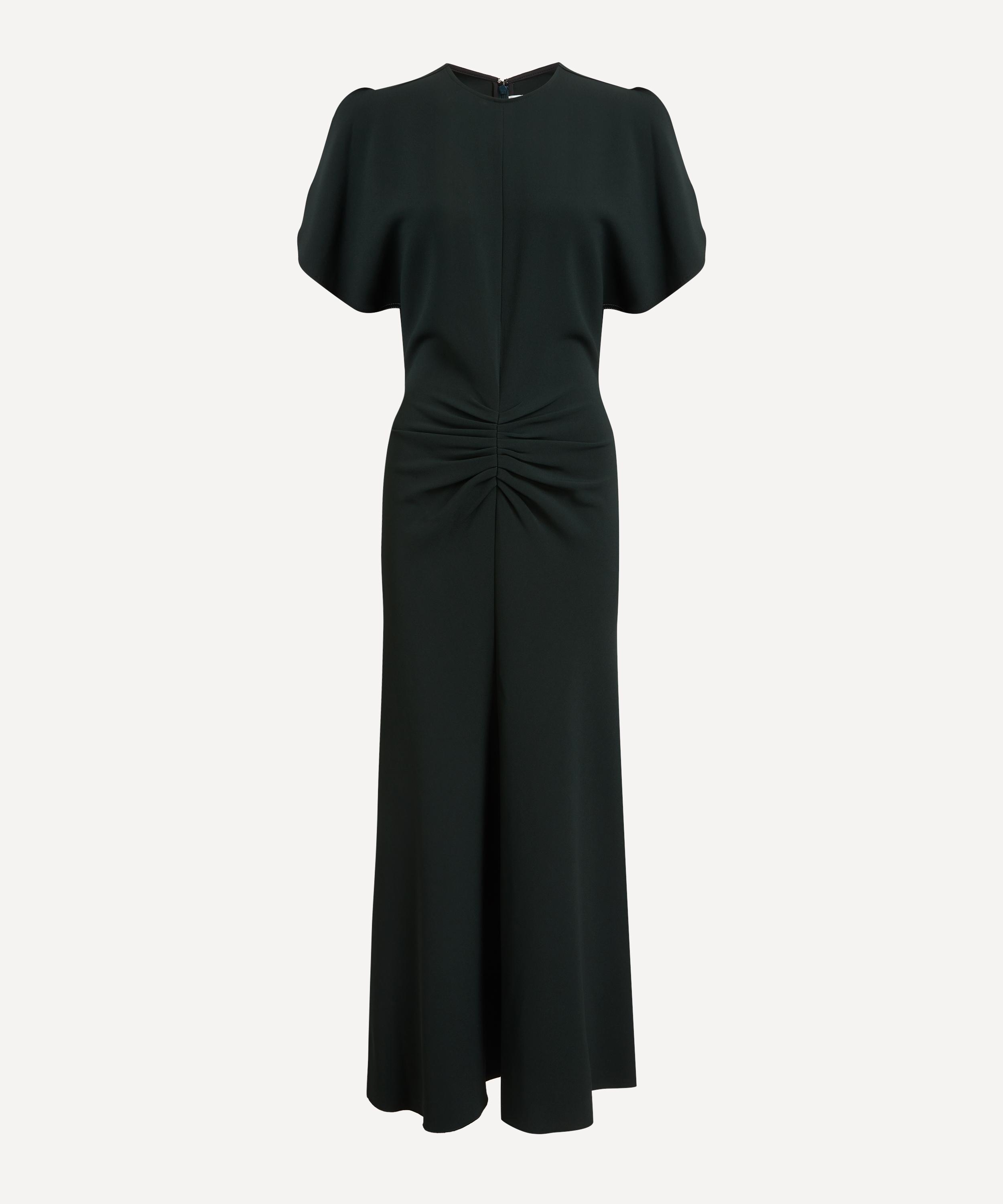 The Gathered Waist Midi Dress from Victoria Beckham serves as the foundation of the modern woman's wardrobe with its timeless design and sophisticated silhouette.