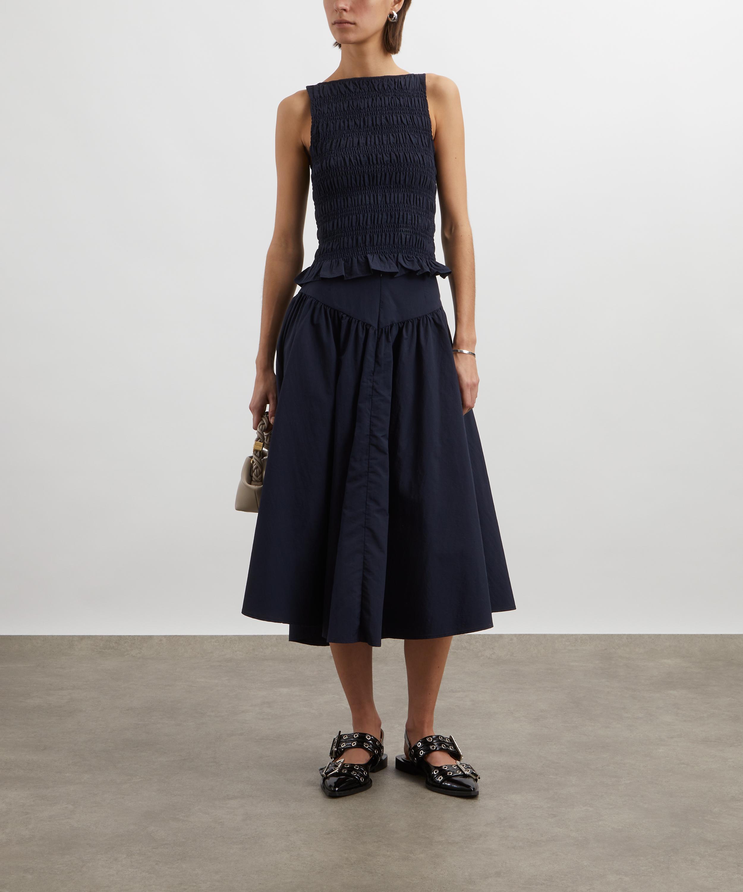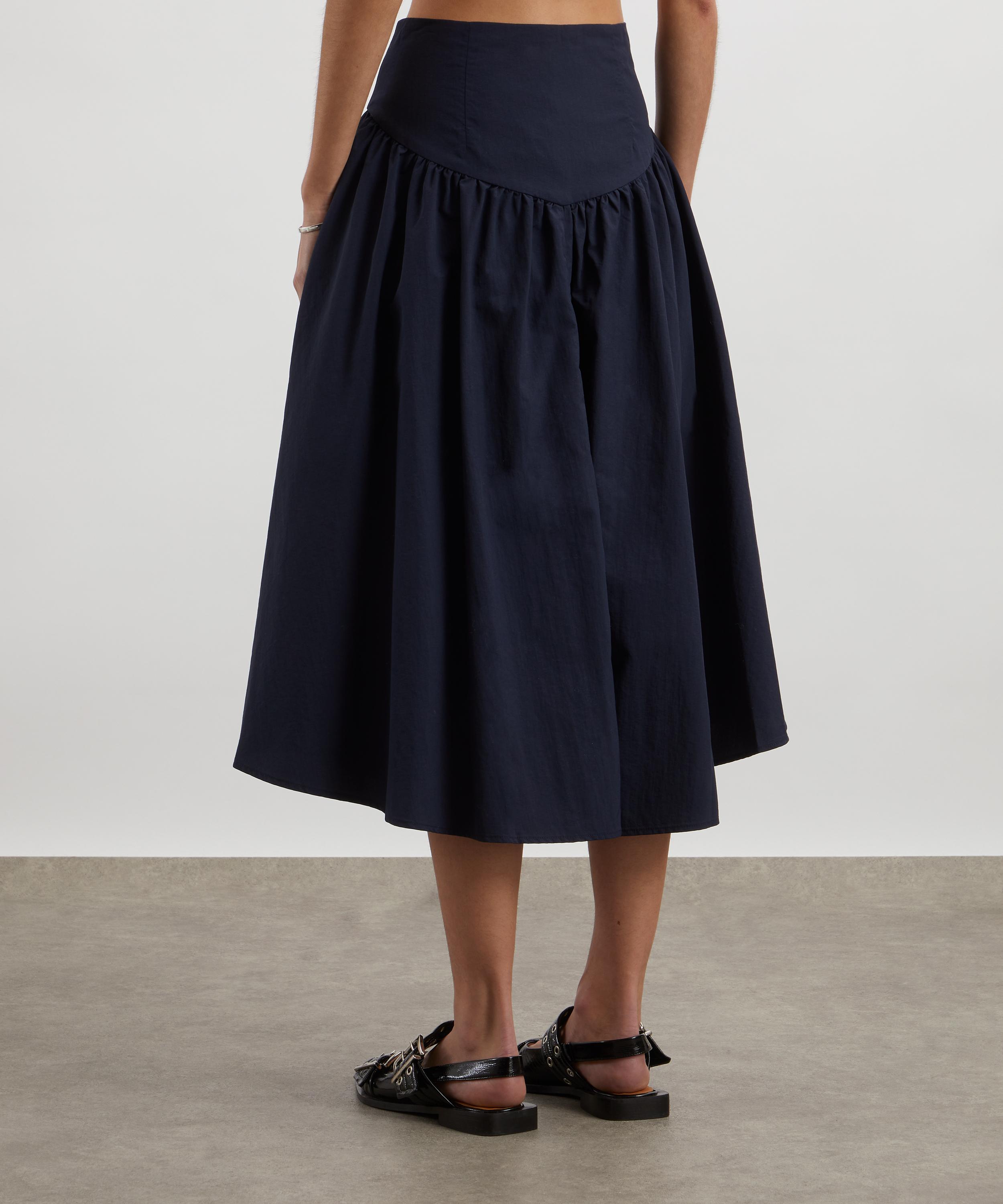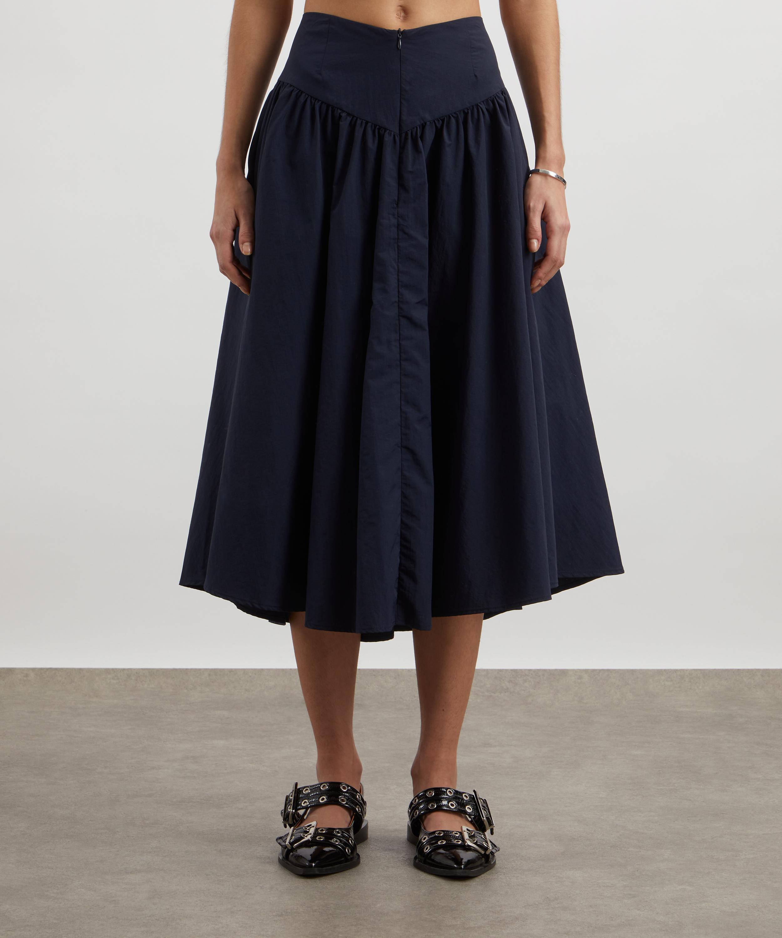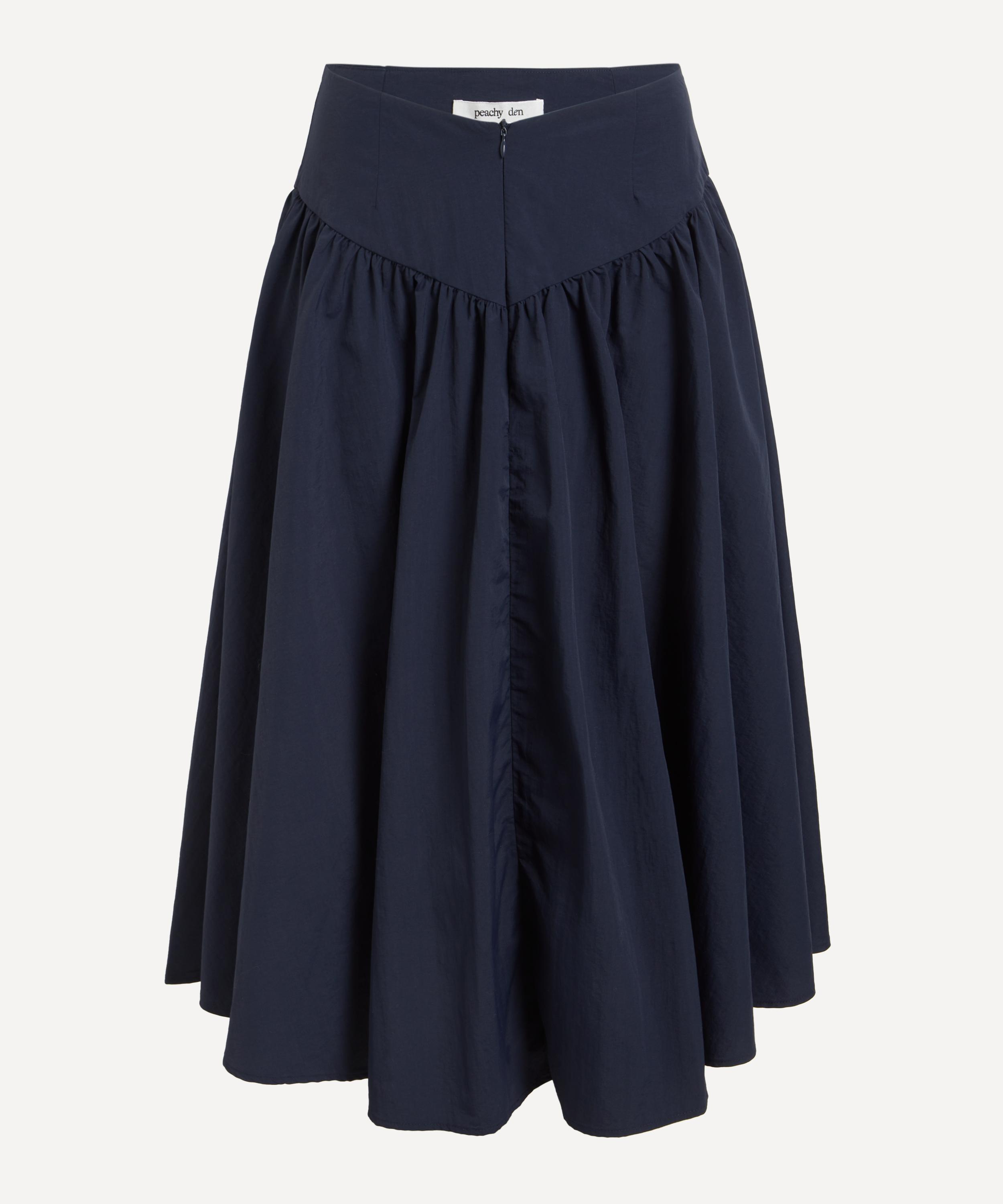 Effortlessly feminine, this half-circle skirt exudes a timeless elegance with its deep V-shaped waistband that leads into a gathered midi, creating the perfect, floaty A-line silhouette. Secured with an invisible zip closure at the front, it’s crafted from Peachy Den’s signature core nylon.