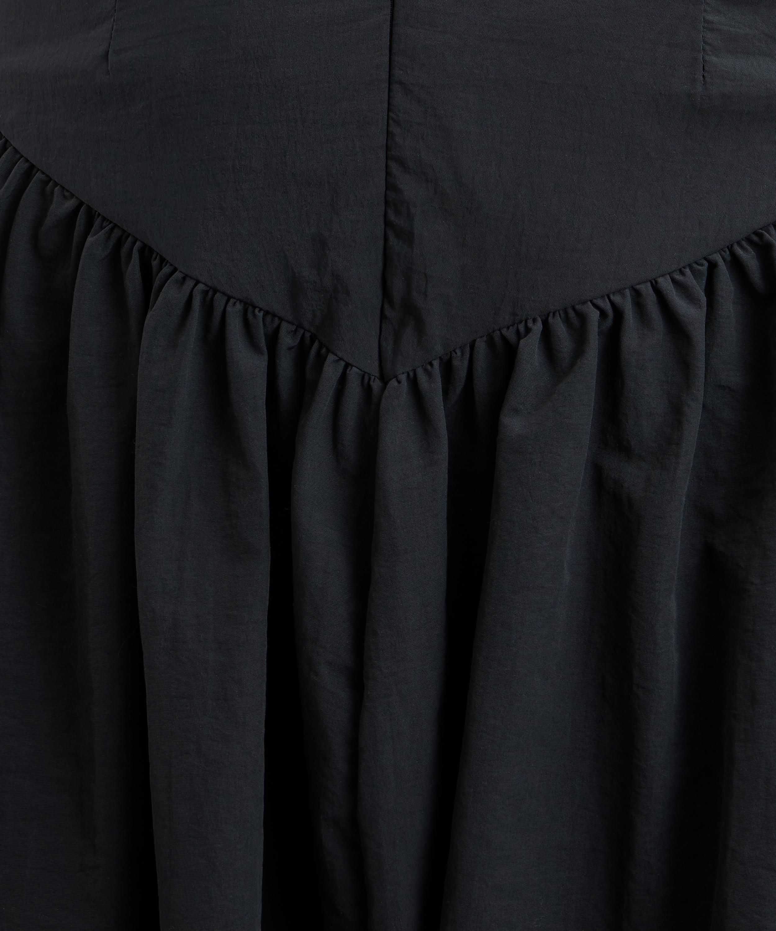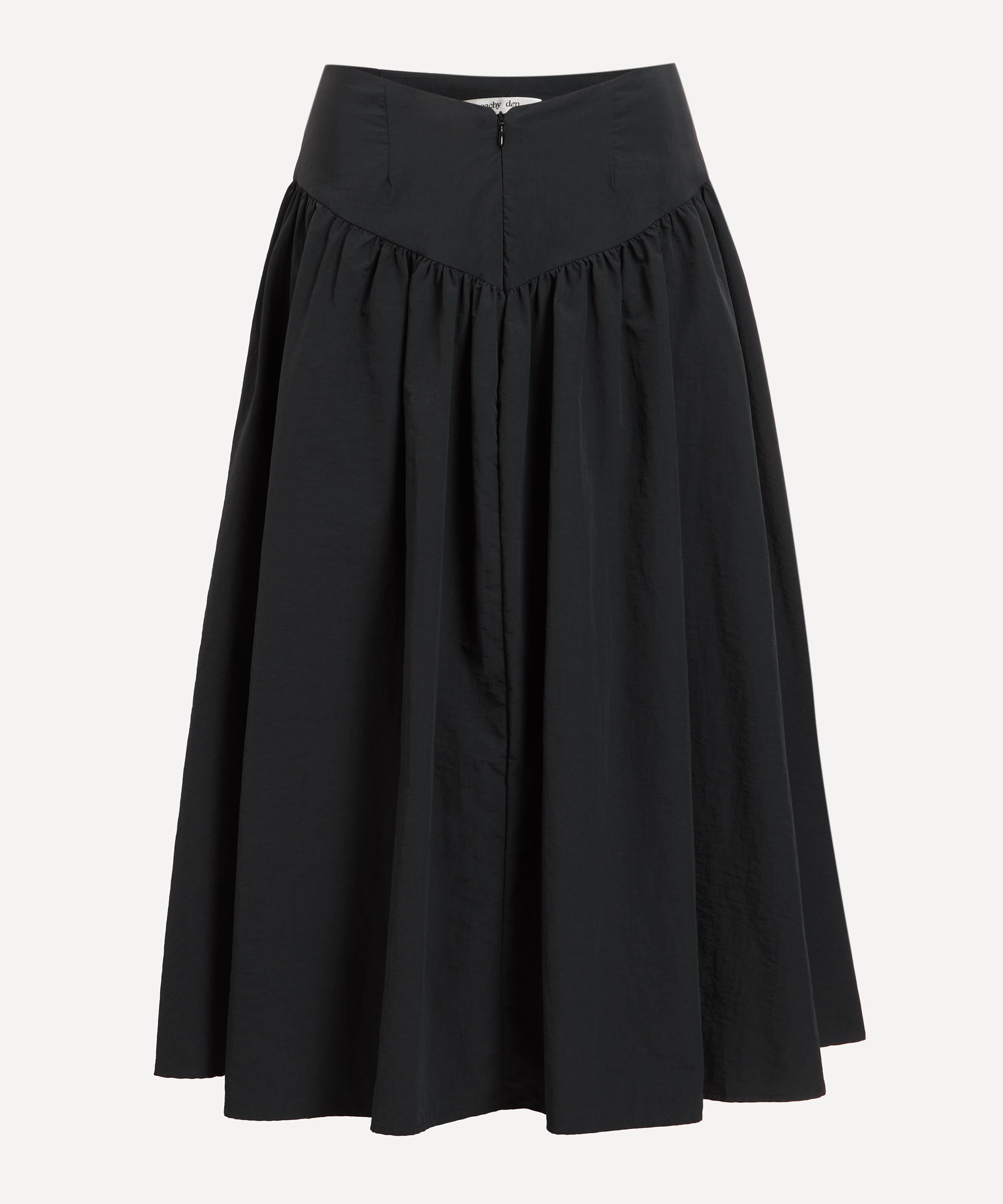 Effortlessly feminine, this half-circle skirt exudes a timeless elegance with its deep V-shaped waistband that leads into a gathered midi, creating the perfect, floaty A-line silhouette. Secured with an invisible zip closure at the front, it’s crafted from Peachy Den’s signature core nylon.