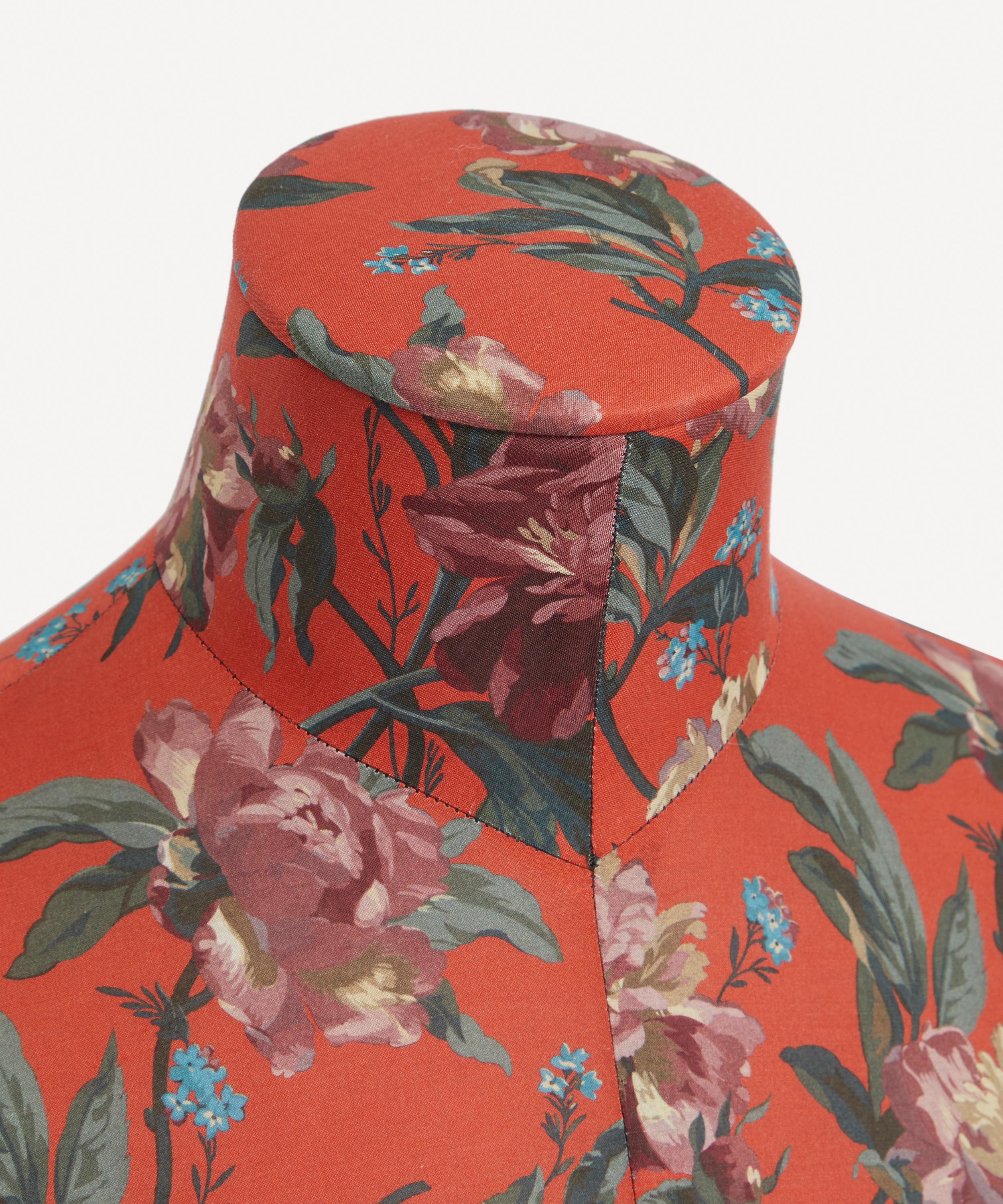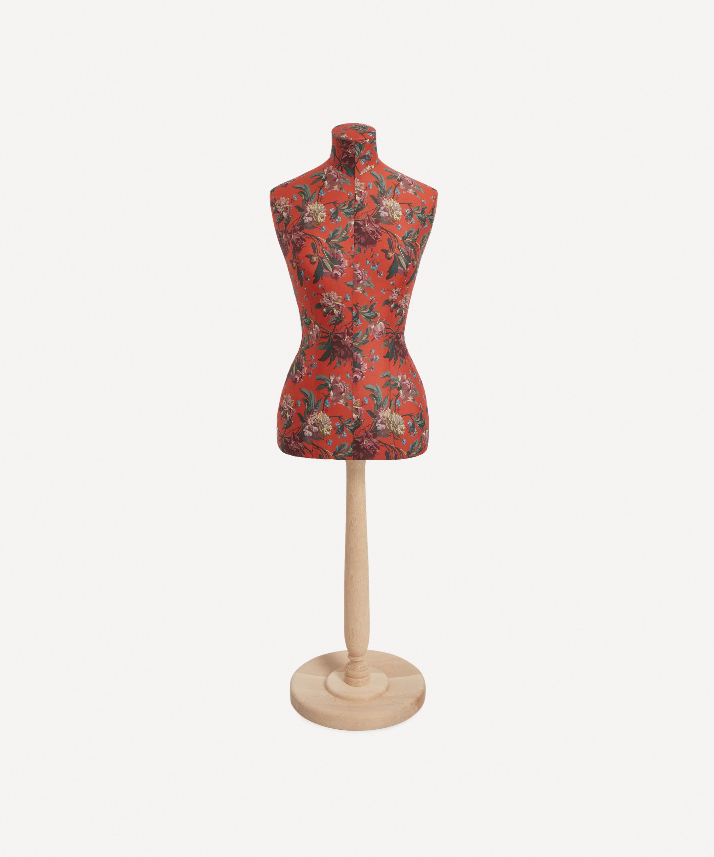Our Liberty print tailor’s dummy has an adjustable height that makes it perfect for garment display or dressmaking, finished with a turned wooden base. The mannequin is covered with Tana Lawn™ cotton, in our iconic Decadent Blooms print. Originally printed as a furnishing fabric in 1989, this design is based on a painting unearthed in the Liberty archive and features large and bounteous bunches of roses, peonies and forget-me-nots.