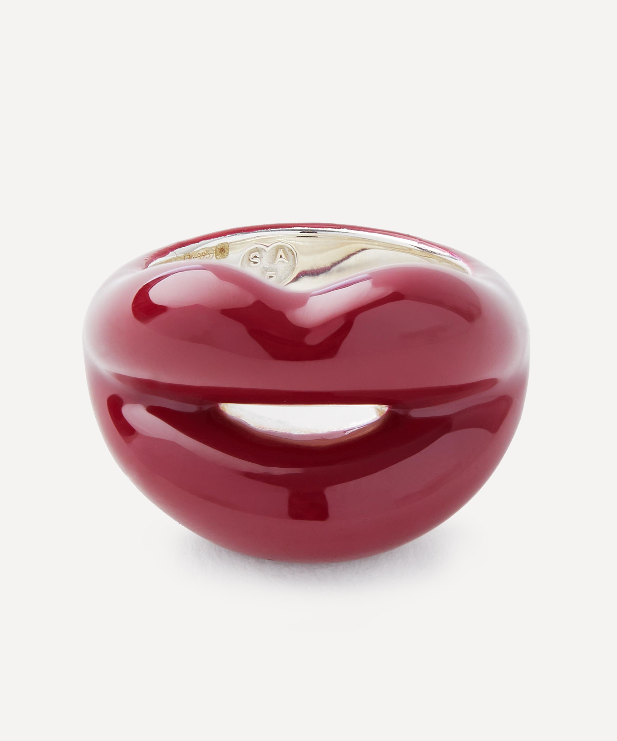 Infused with a gothic edge, this rendition of the iconic Hotlips ring by British designer Solange Azagury-Partridge is coated in a glossy, deep red lacquer. Crafted from solid sterling silver, this distinctive ring is complete with a red lacquer lipstick colour on a pair of pouting lips - perfect for injecting your everyday look with a dose of colour, mix and match with several other rings from the Hotlips range for a vibrant, contemporary curation.
