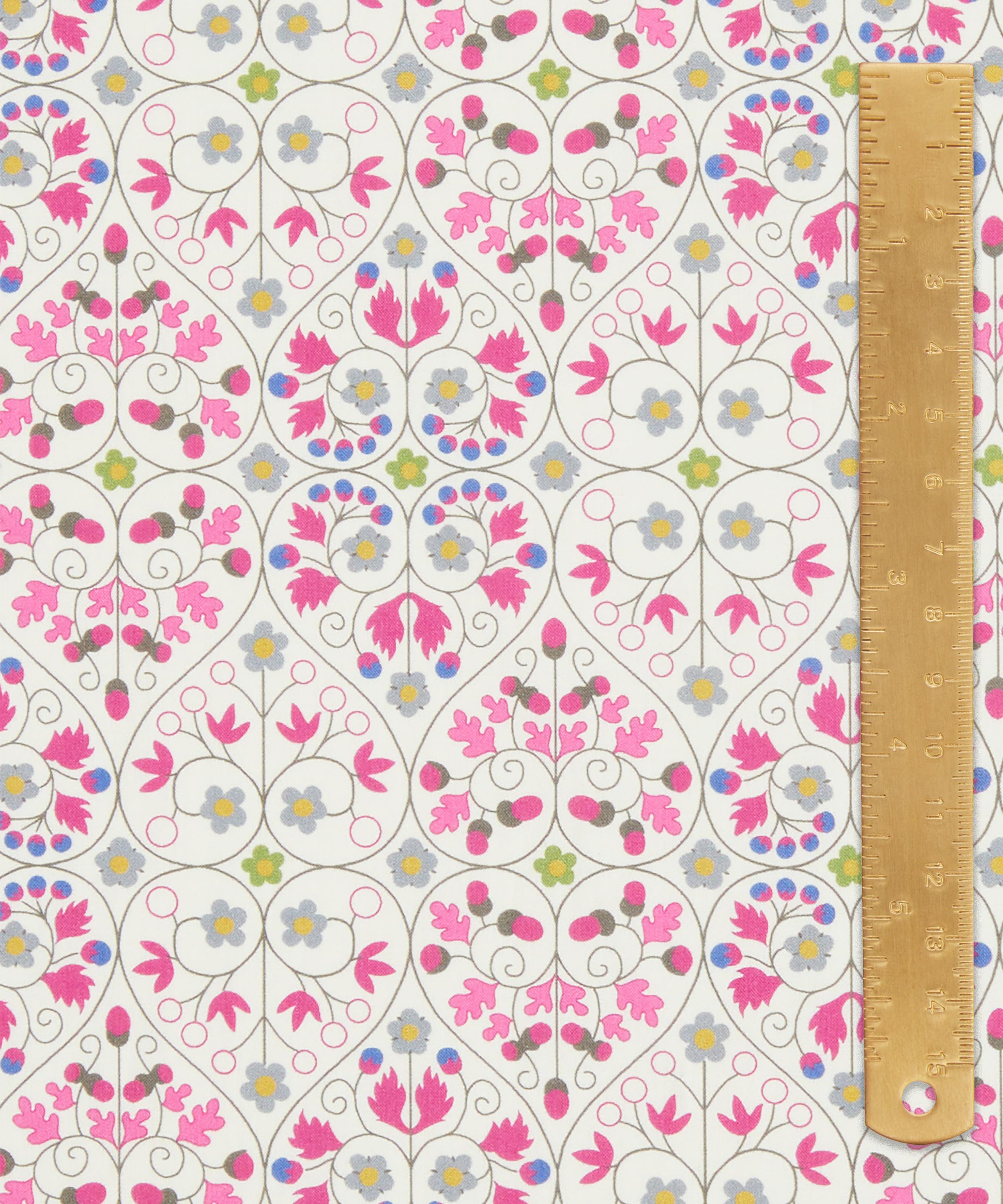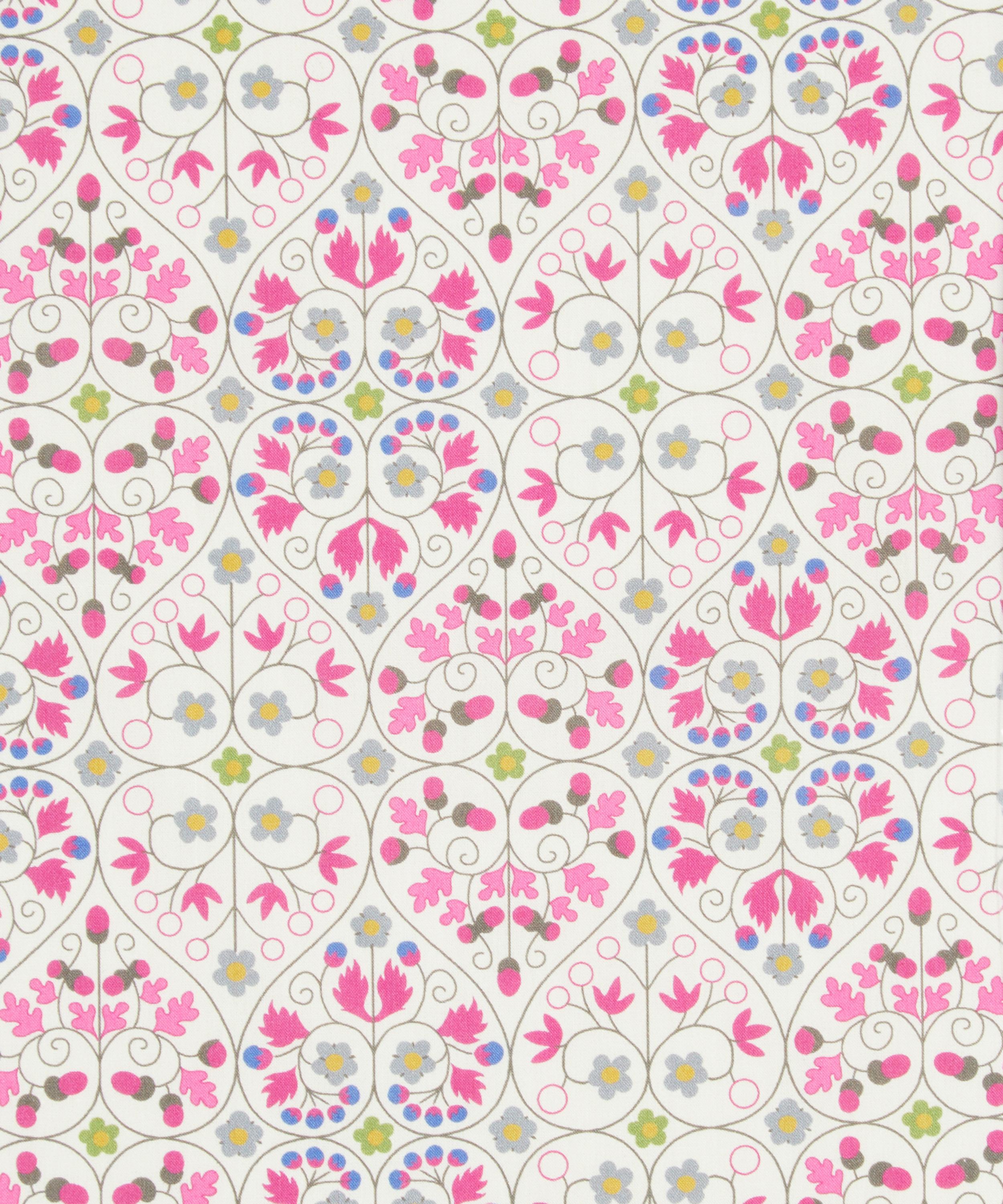 Delfie is inspired by a Liberty archive print from 1961 – featuring a heart shaped floral check pattern reminiscent of wrought iron swirls and decorative garden gate panels.