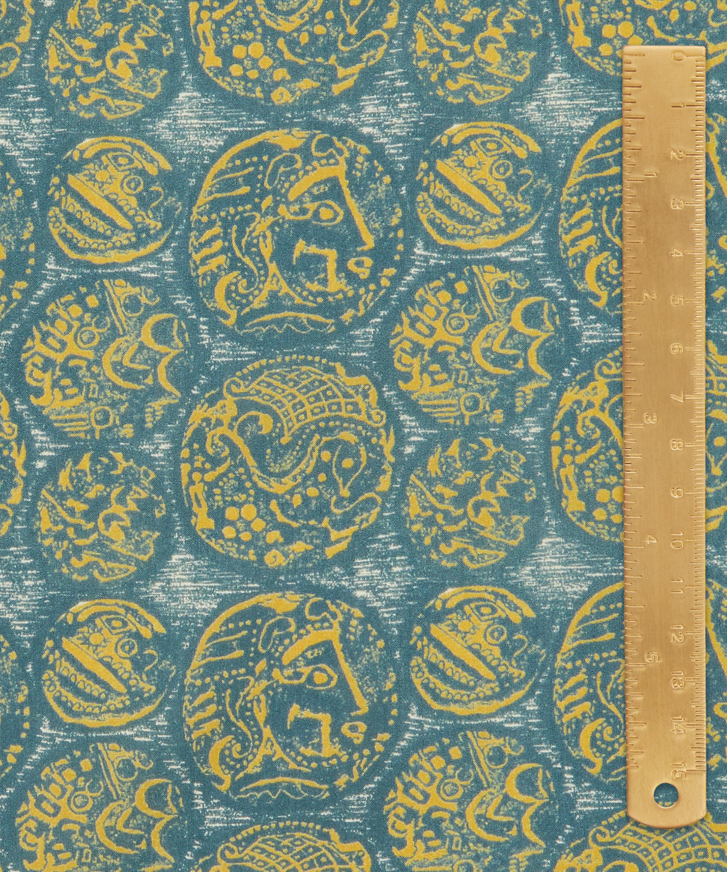 Denarius Coins draws on the rich heritage of ancient civilisations, reflecting their enduring influence on Liberty designs. First created as a furnishing fabric in 1956, this historic pattern has been meticulously redrawn to preserve the intricate, hand-screen printed textures of the original. The weathered, almost fossilised coins appear engraved with enigmatic symbols and motifs, echoing the civilisations of ancient Greece or Rome.