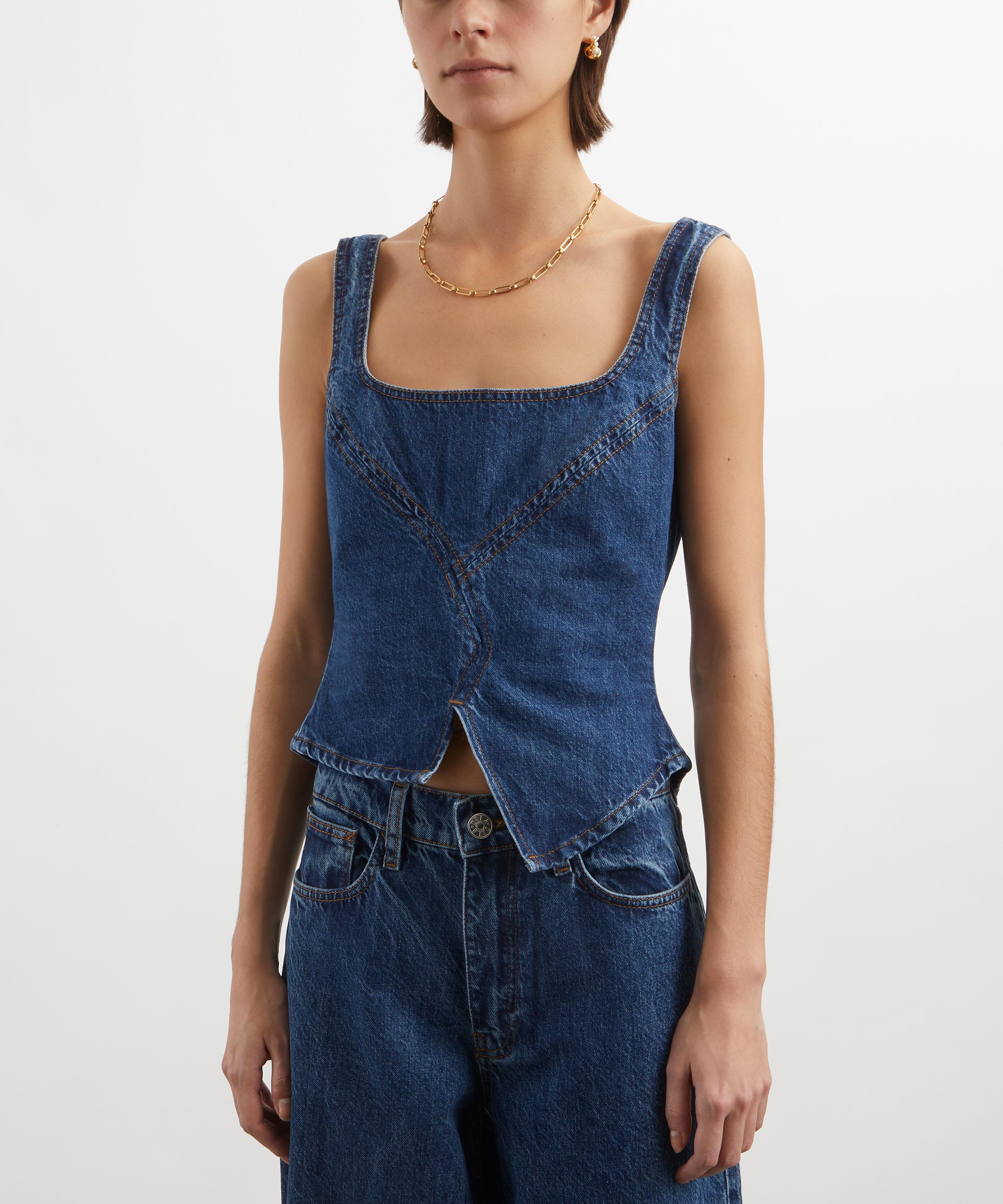DALA seamlessly blends the cultures of London and Paraguay in the Broken Denim Corset.