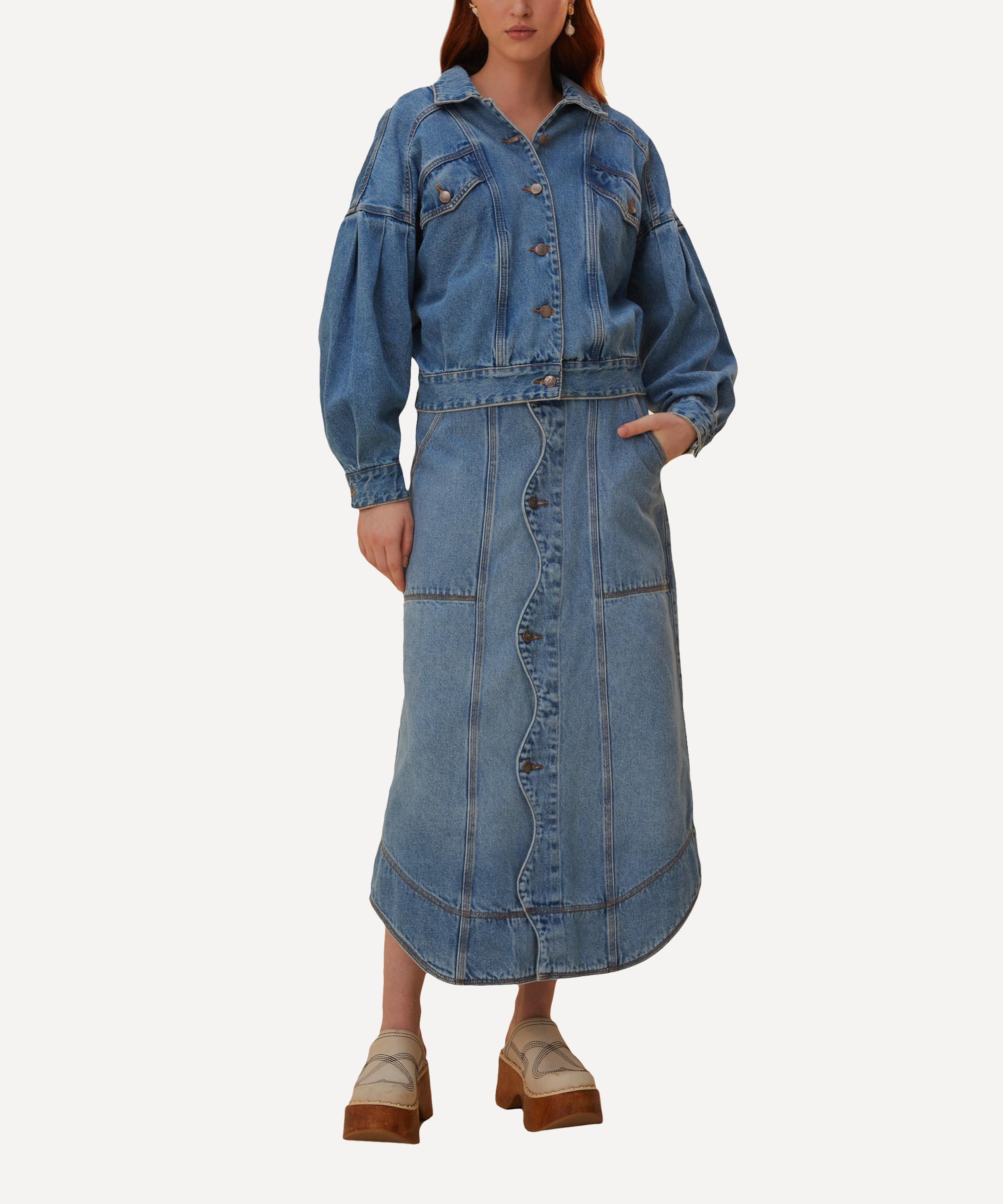 The Denim Wave Skirt from Rio de Janeiro-based label FARM Rio brings some Brazilian vivacity to your new-season edit.
