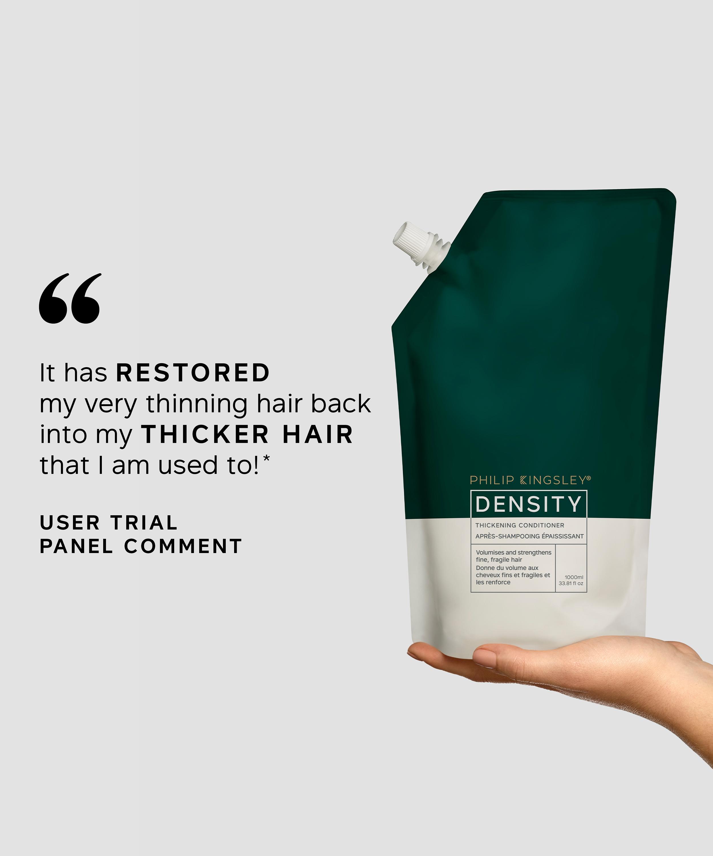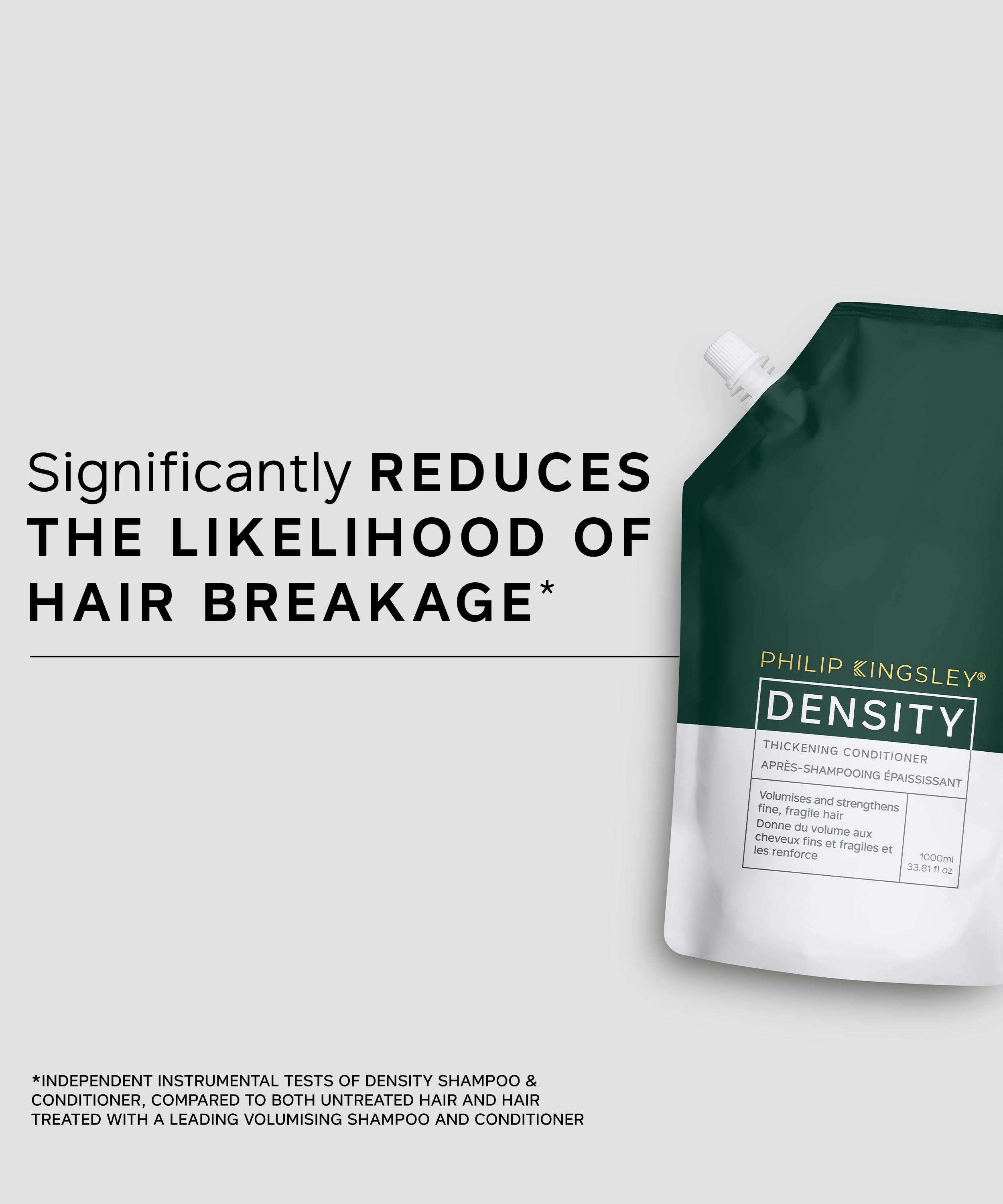 Give fine, thinning hair a boost with Philip Kingsley's Density Thickening Conditioner Refill Pouch, a transformative formula that works to protect hair density and quality over time – presented in a refill pouch that is easy to pour, and easy to store.