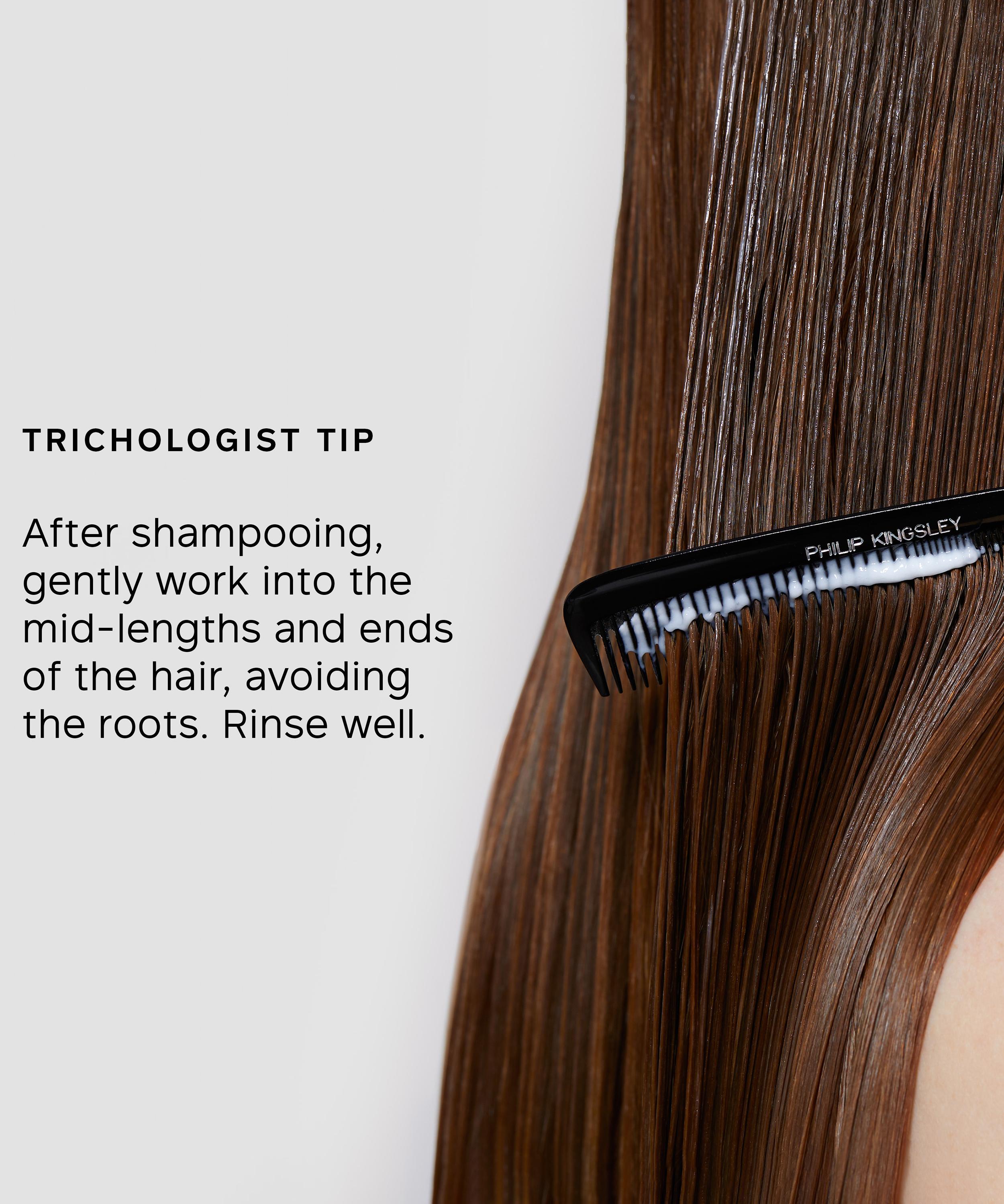 After shampooing, gently work into mid-lengths and ends of hair. Comb through to ease out tangles then rinse well.