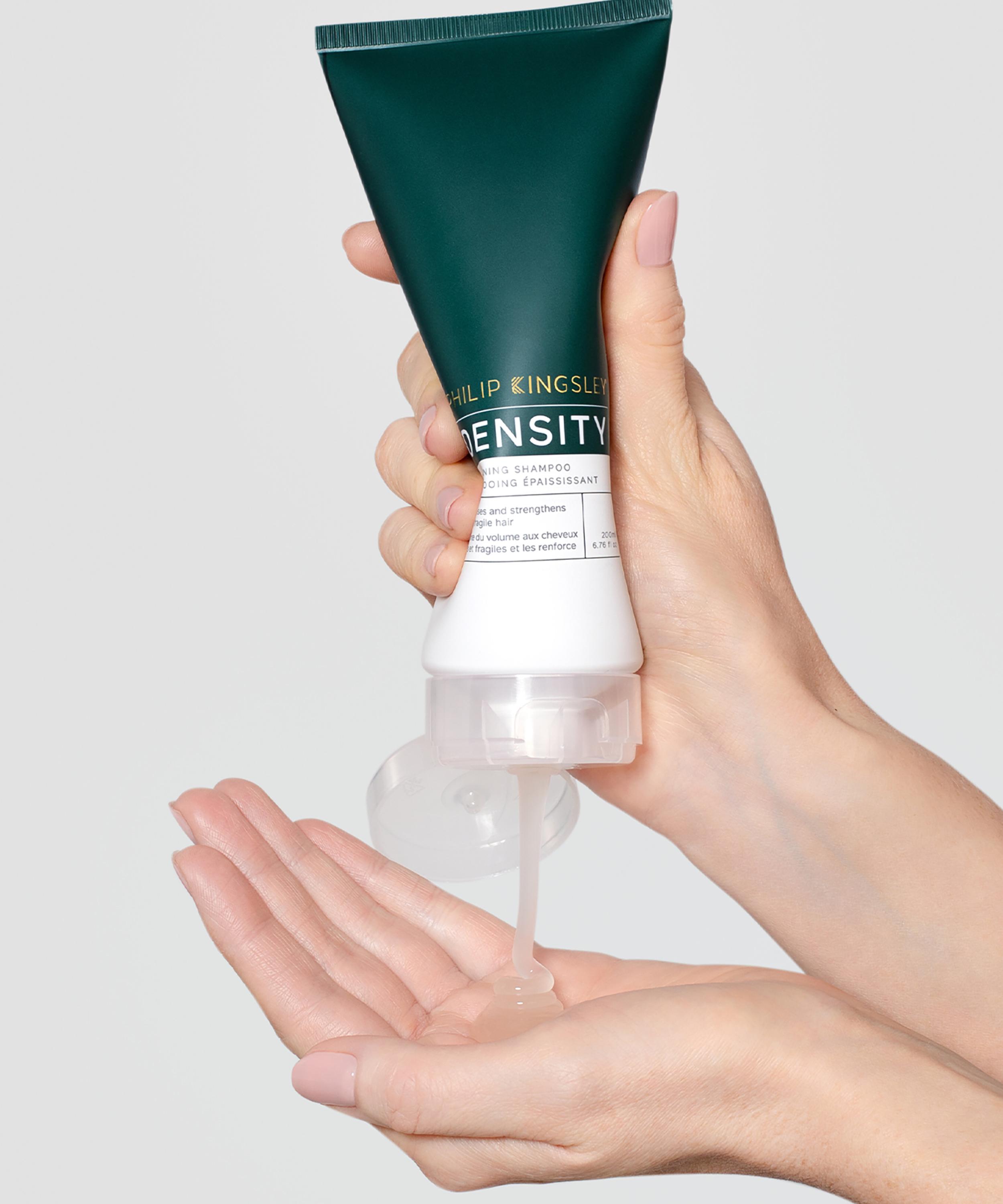 Philip Kingsley's Density Thickening Shampoo works to volumise and strengthen fine, fragile and thinning hair - enhancing strands' density, without weighing them down. Formulated with gently exfoliating salicylic acid alongside plumping pea peptides, which work to transform even the finest of hair, use this body-boosting shampoo daily for hair that is optimully volumised, protected against breakage and beautifully smooth.