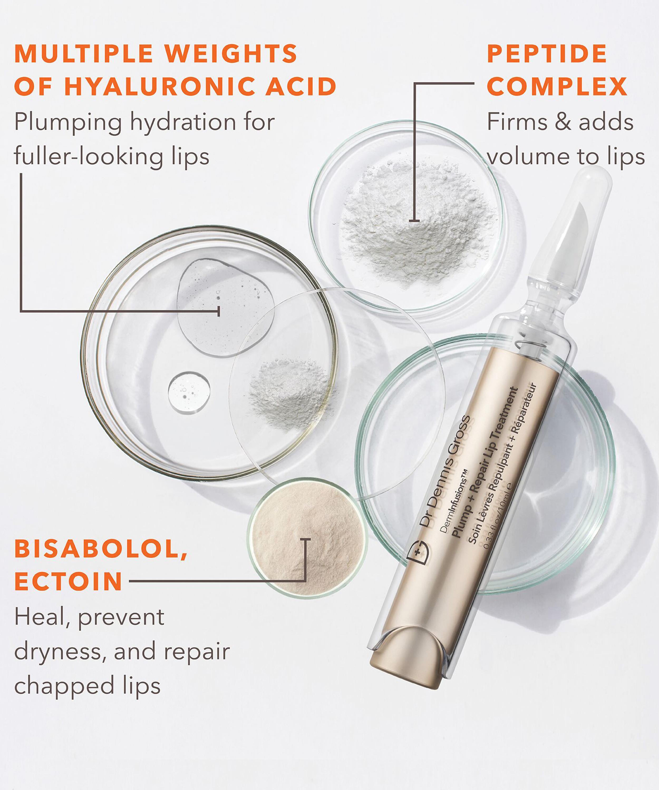 Dr. Dennis Gross’ DermInfusions Plump and Repair Lip Treatment is a fast-acting treatment that works to smooth, hydrate and volumise lips for a fuller-looking appearance.