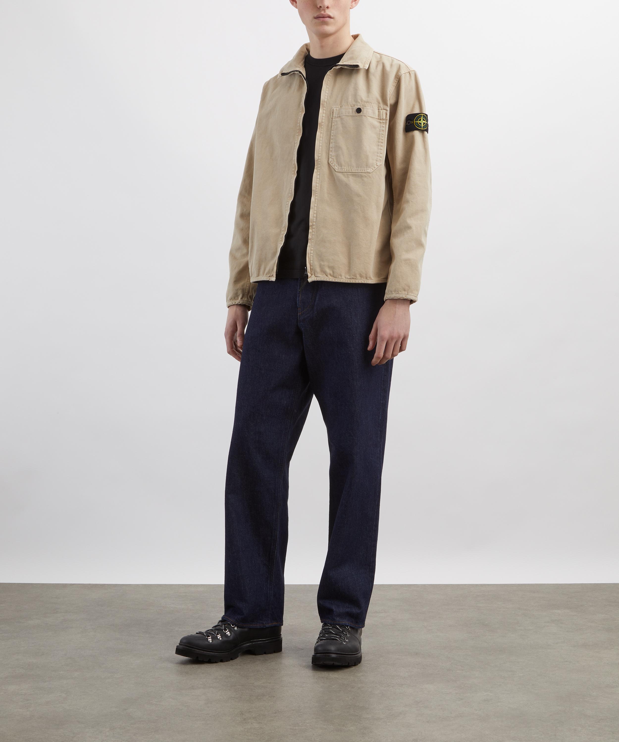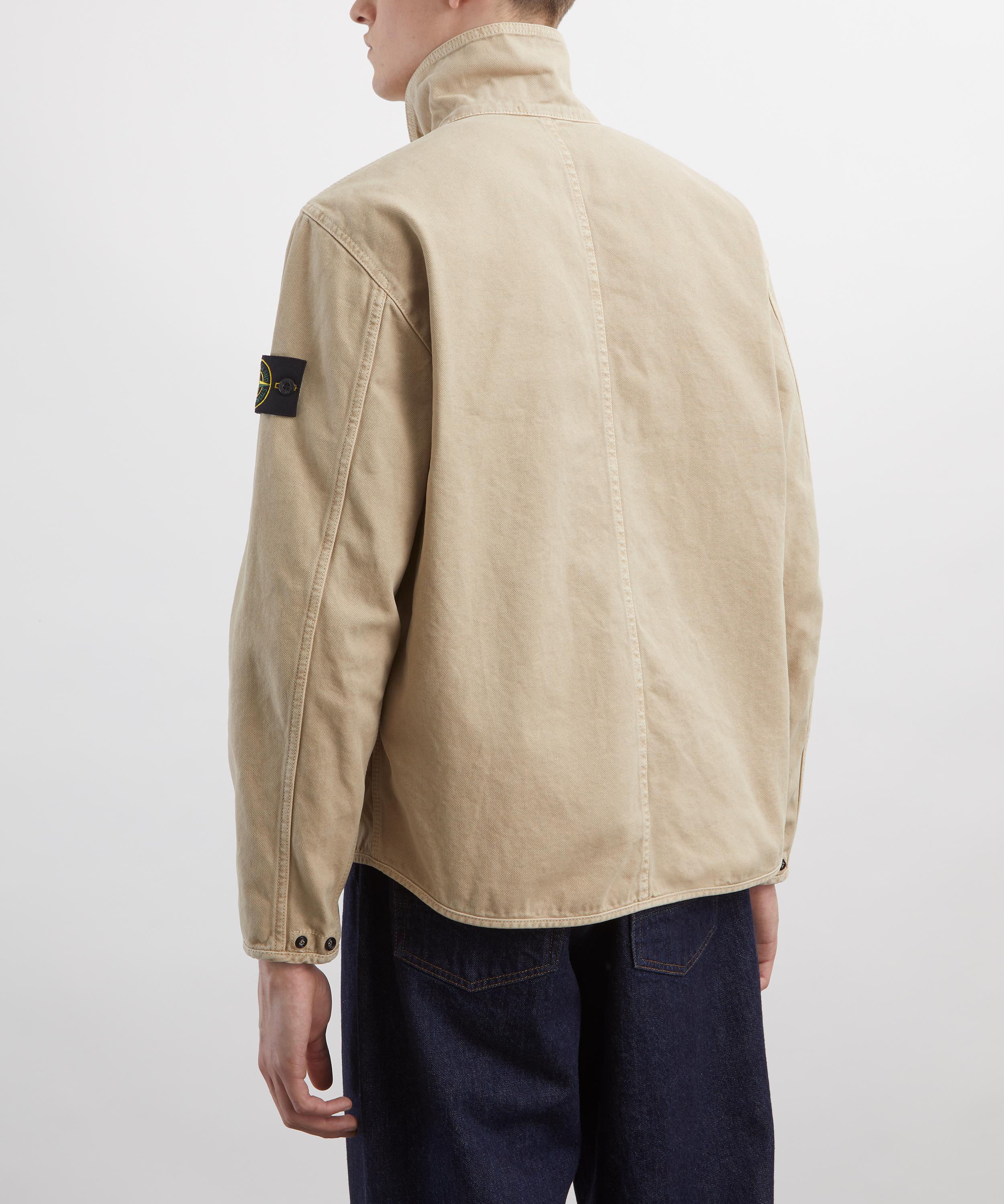 Crafted from garment-dyed Panama cotton with a subtly worn finish, this overshirt features a funnel collar, two-way zip fastening, and a single chest pocket, and is finished with the signature Stone Island badge at the left sleeve for an authentic utilitarian touch.