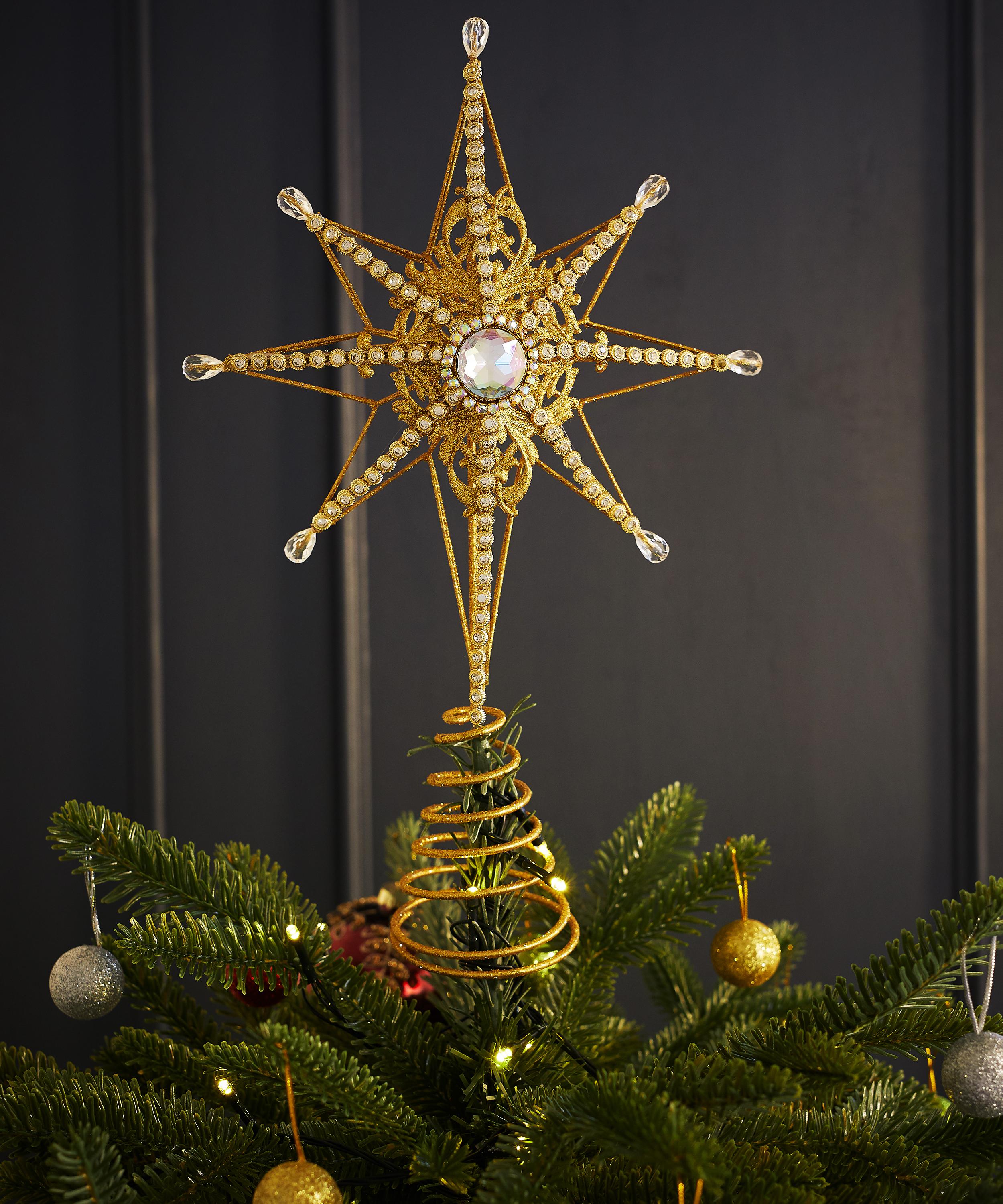 Covered in shimmering gold glitter with eye-catching bead and diamanté detailing, this is a modern piece of festive décor to adorn your tree with year after year.