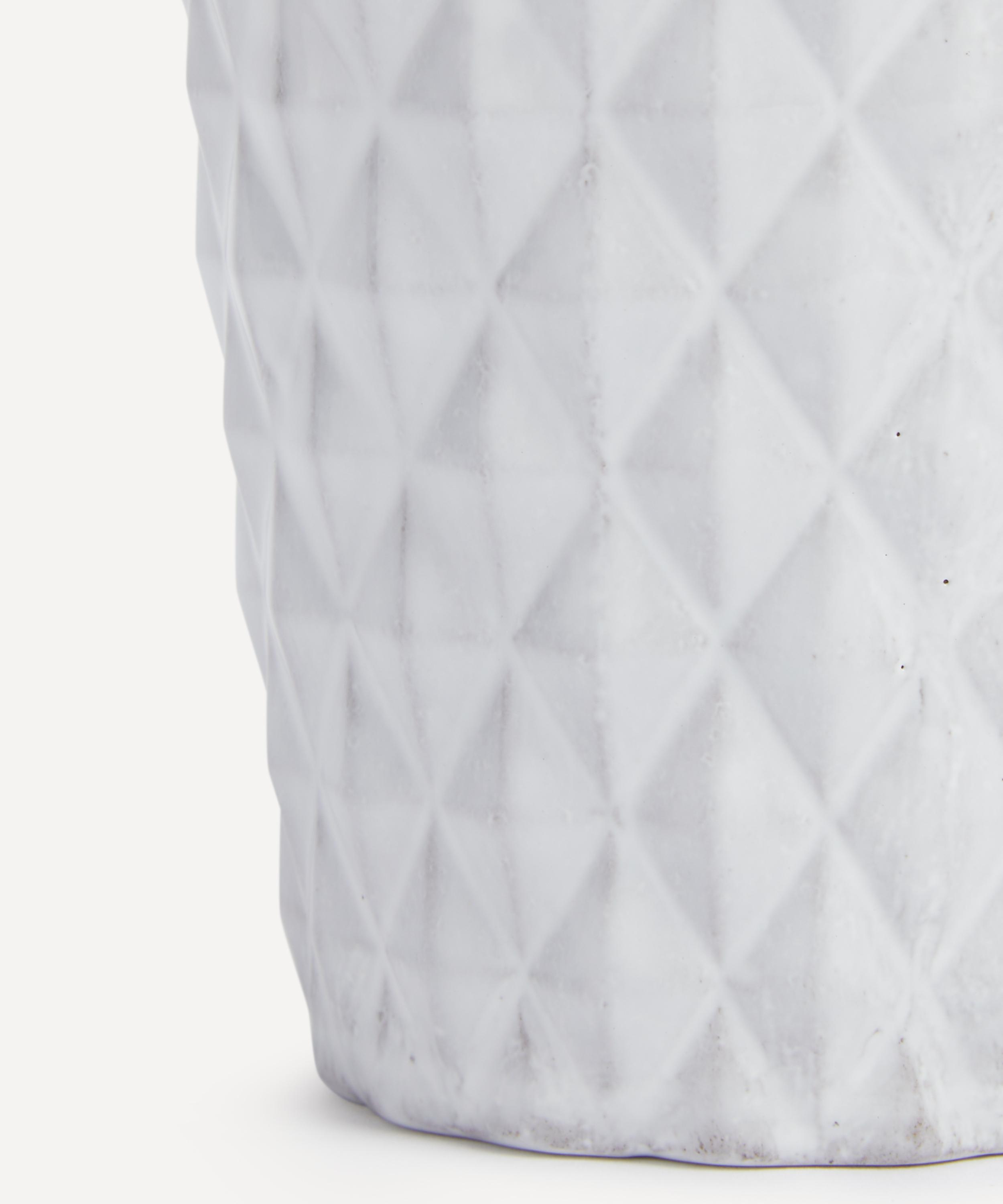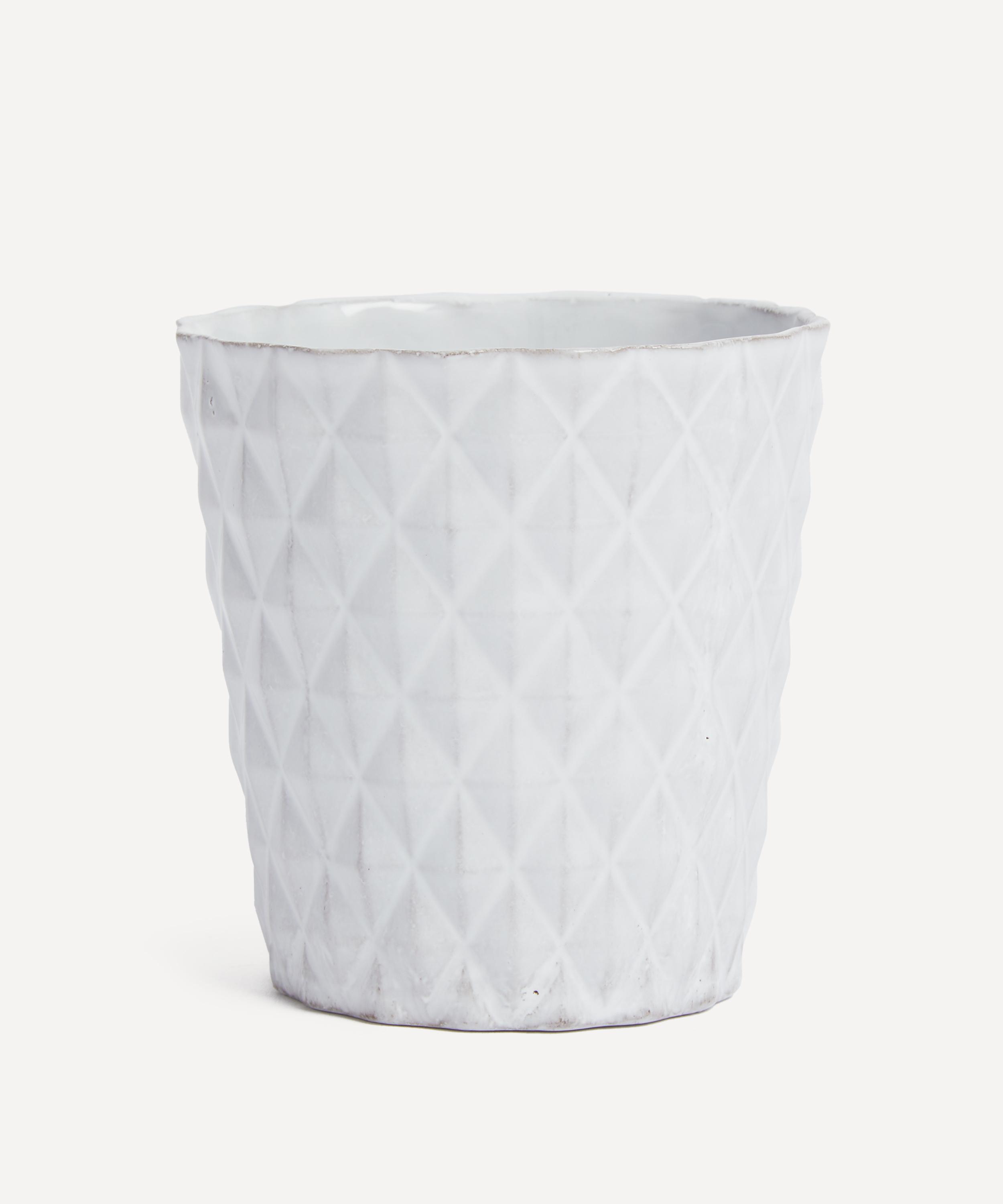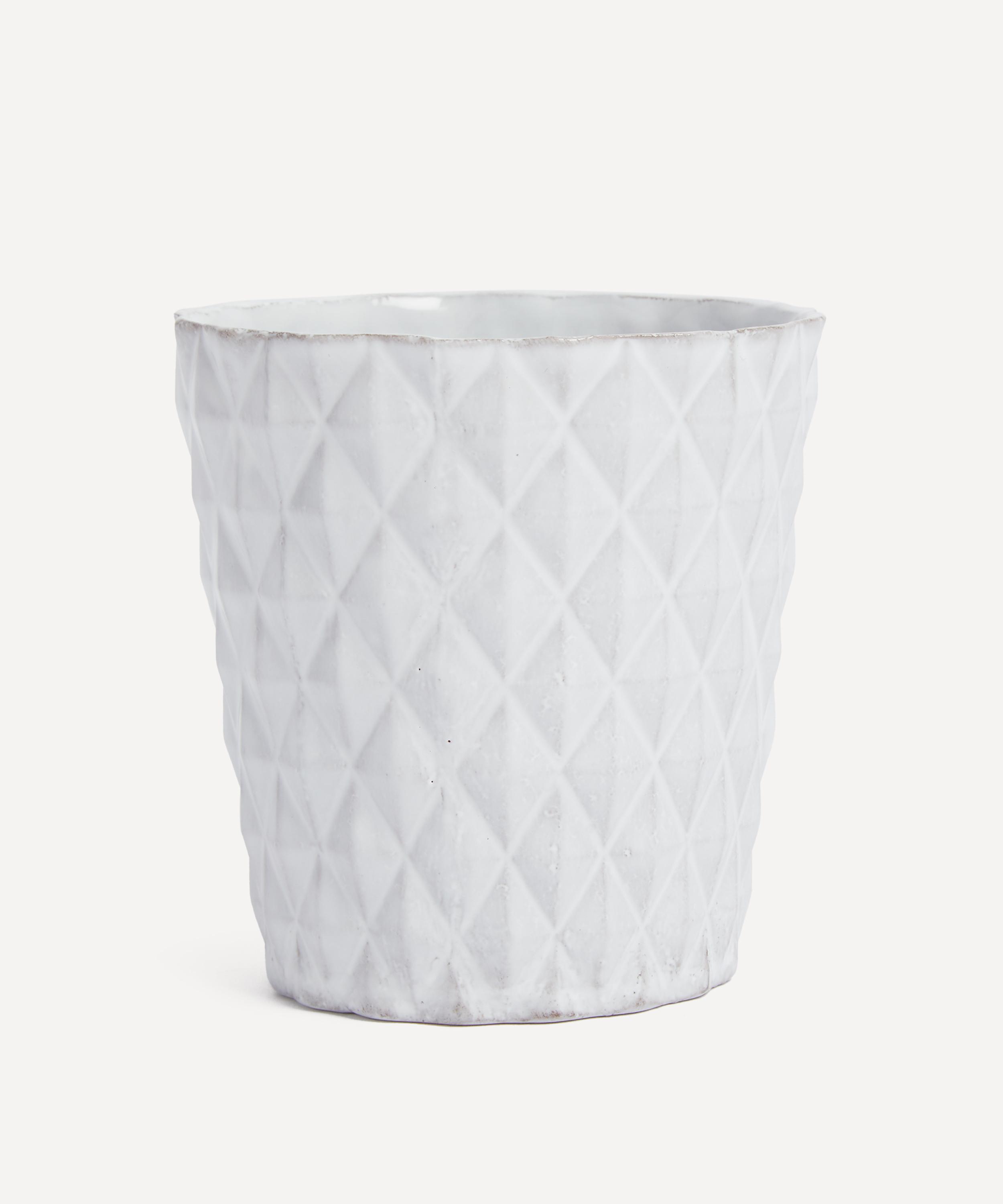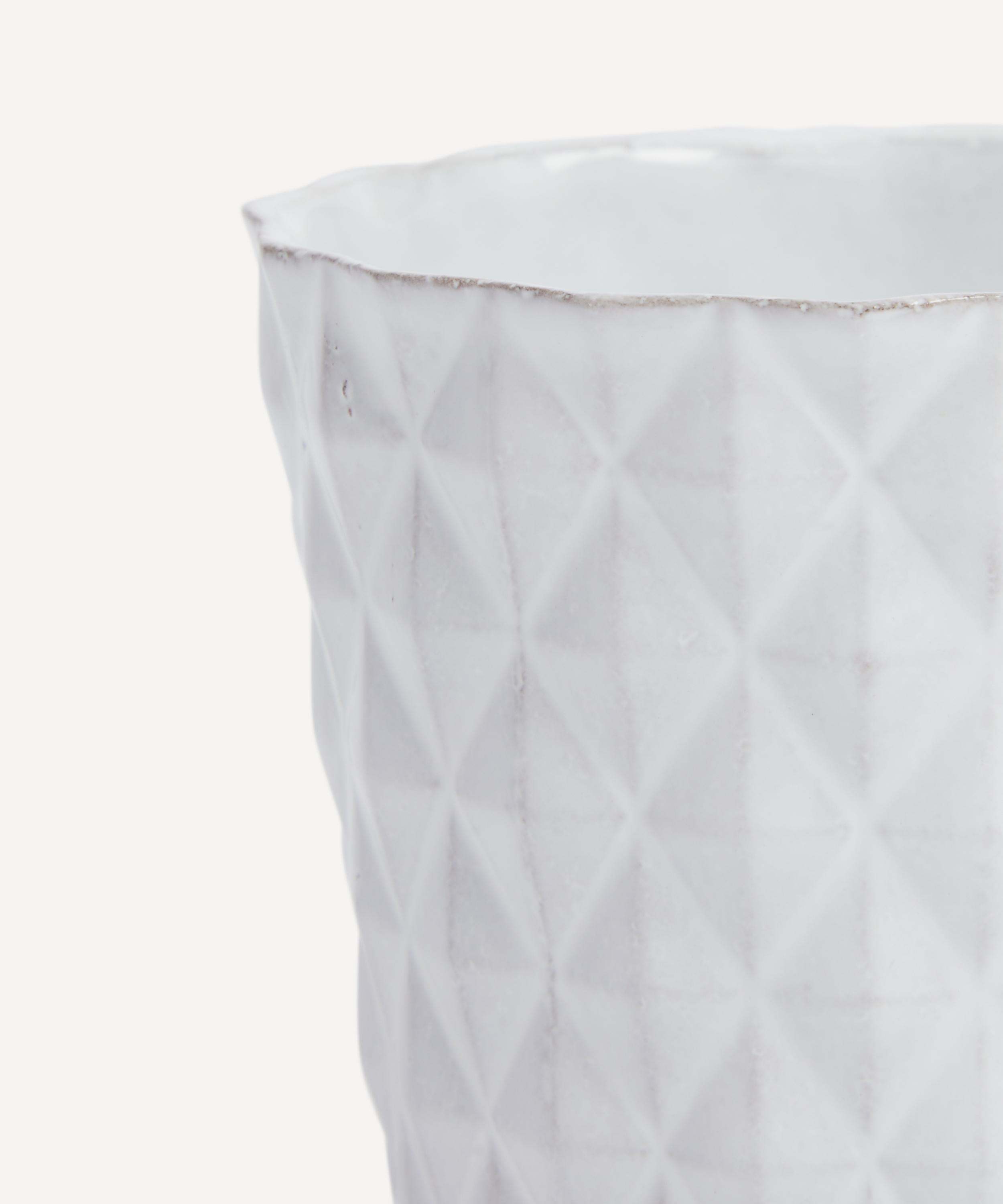 Votary of pre-industrial fabrication, Astier de Villatte is celebrated for being the one and only studio in Paris to hold and harbour the traditions of artisanal ceramic production. Restoring the ancestral systems of moulding and stamping, this tumbler is made using techniques from the Middle Ages which involve moulding a sheet of handmade clay, double firing the ‘biscuit’ piece and glazing the product in white enamel – a lengthy process that requires a drying time of up to one month. Characterised by its faceted surface, the tumbler is engraved with the brand’s signature crest – depicting an interlacing A & V – alongside the initials of one of the 40 master artisans who created it. Each handmade piece tells a beautiful story, romancing and imparting a sense of nostalgia into its owner. Fill with one of the brand’s candle refills to breathe an air of authenticity and elegant aroma into your home.
