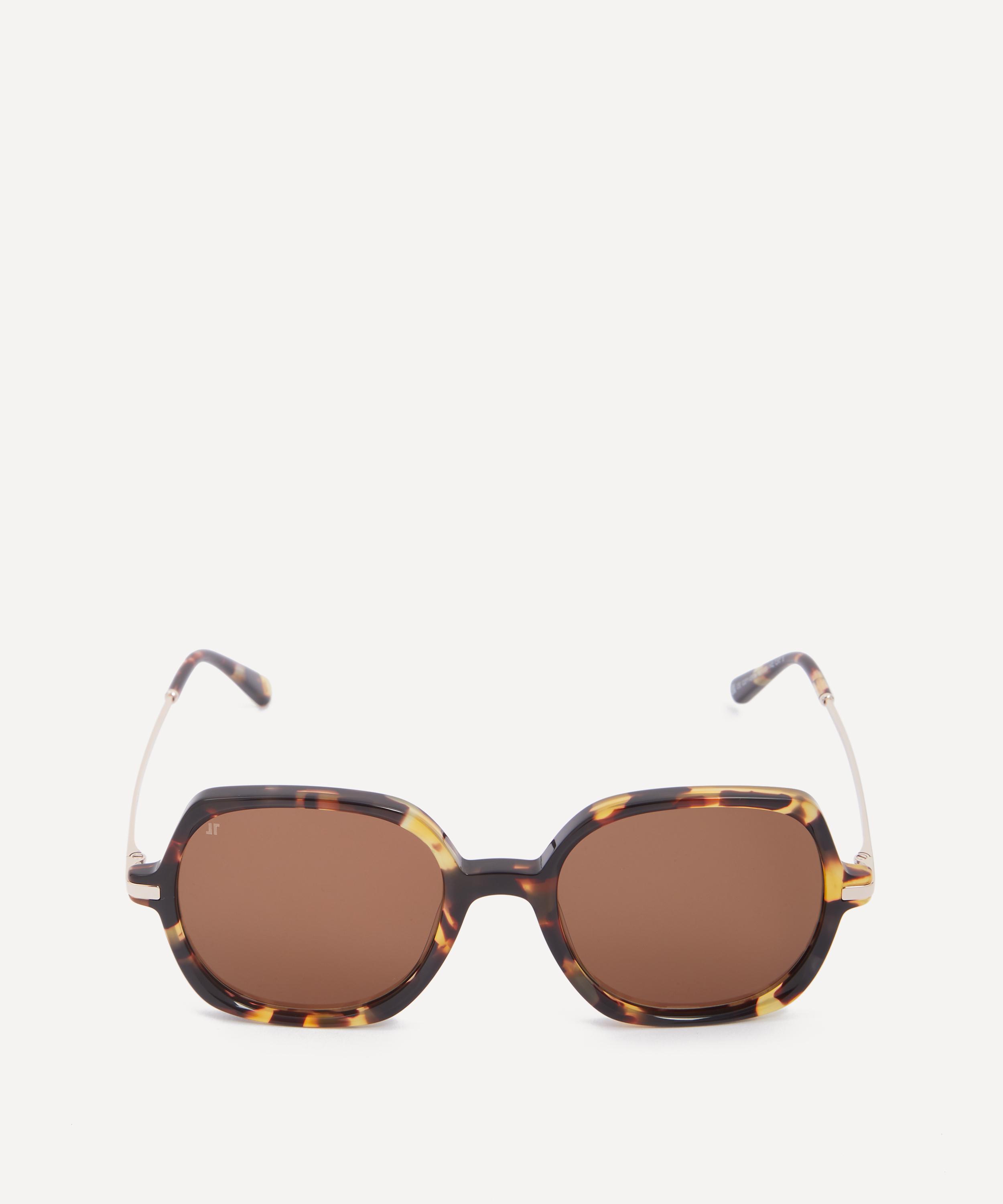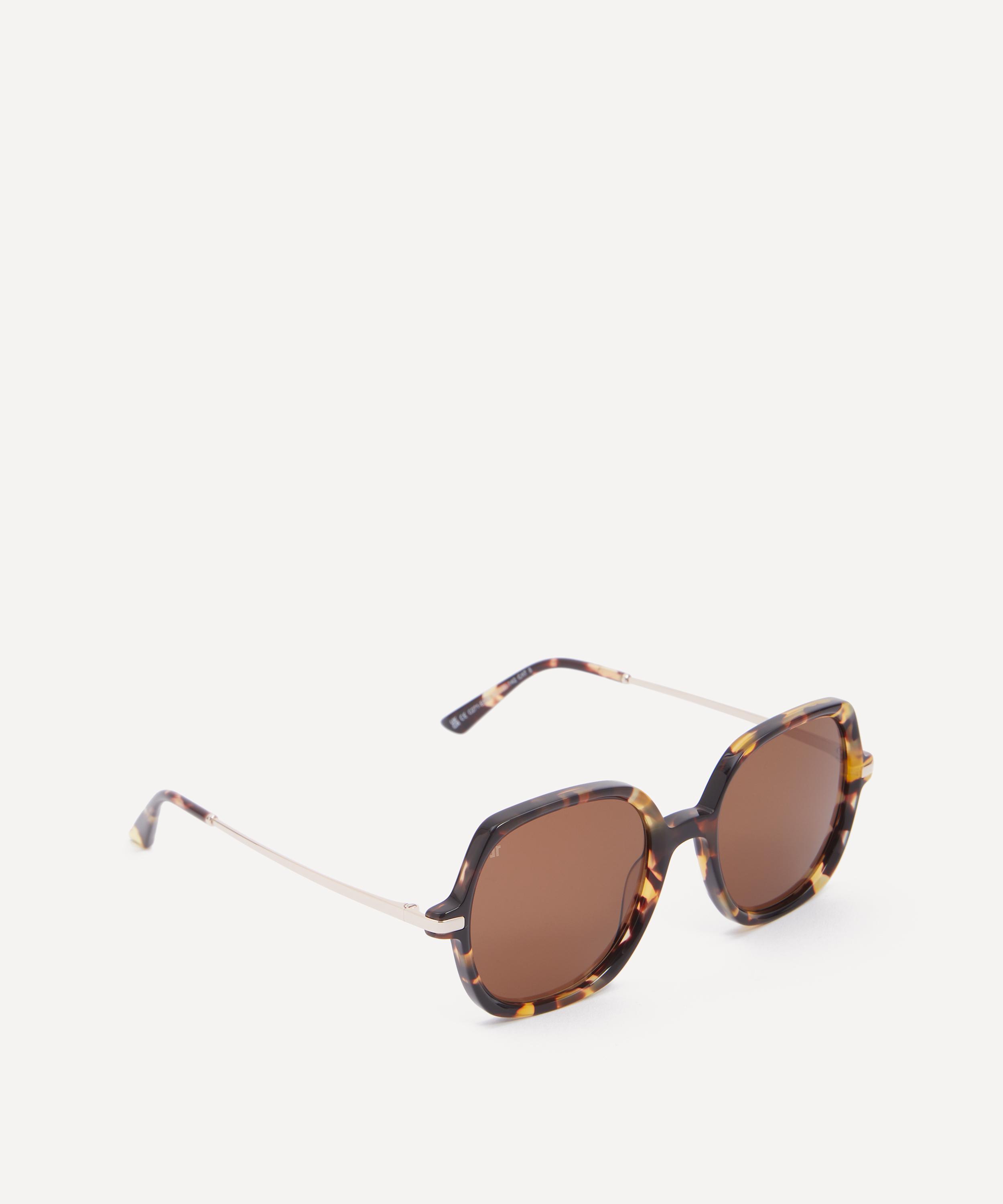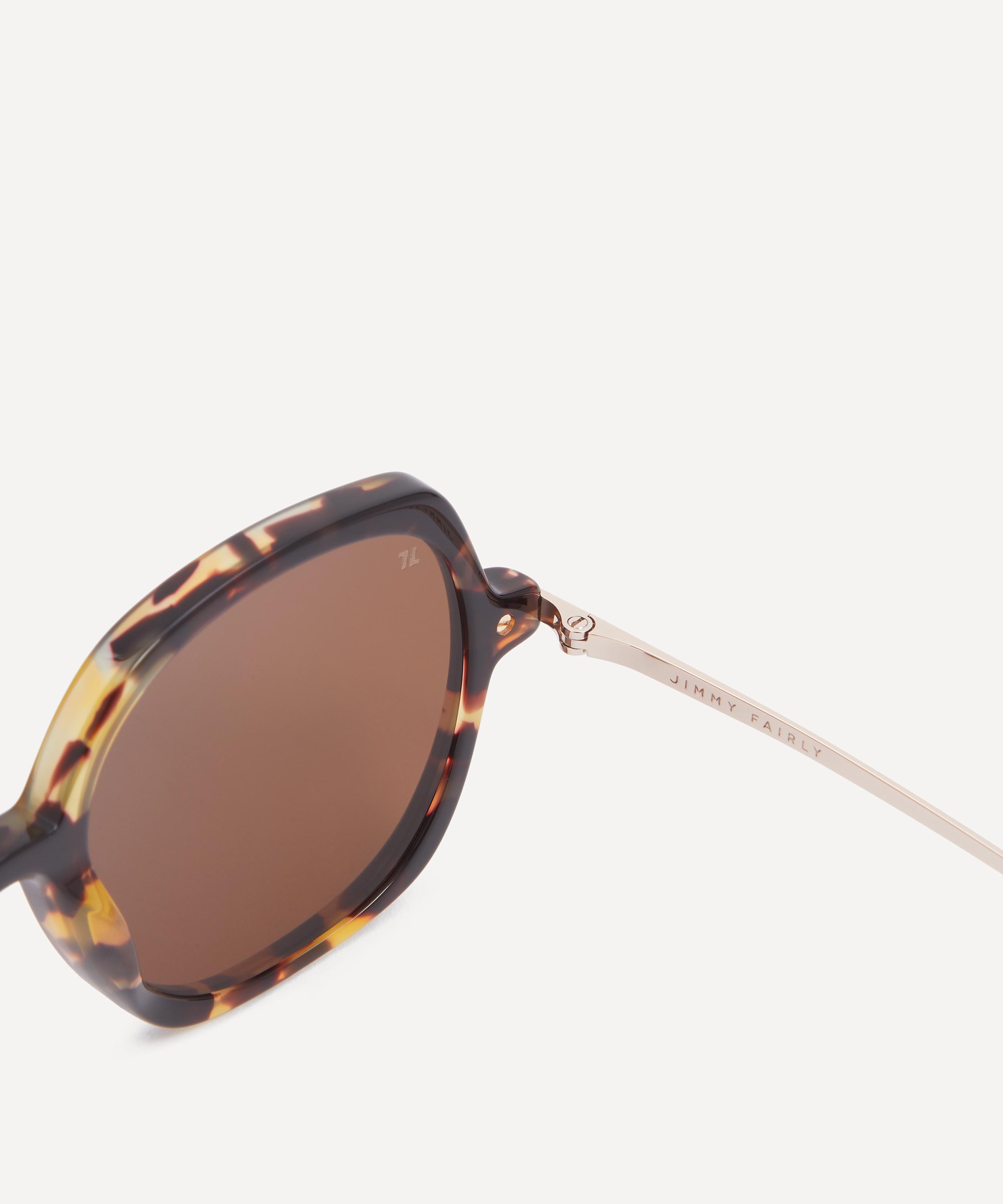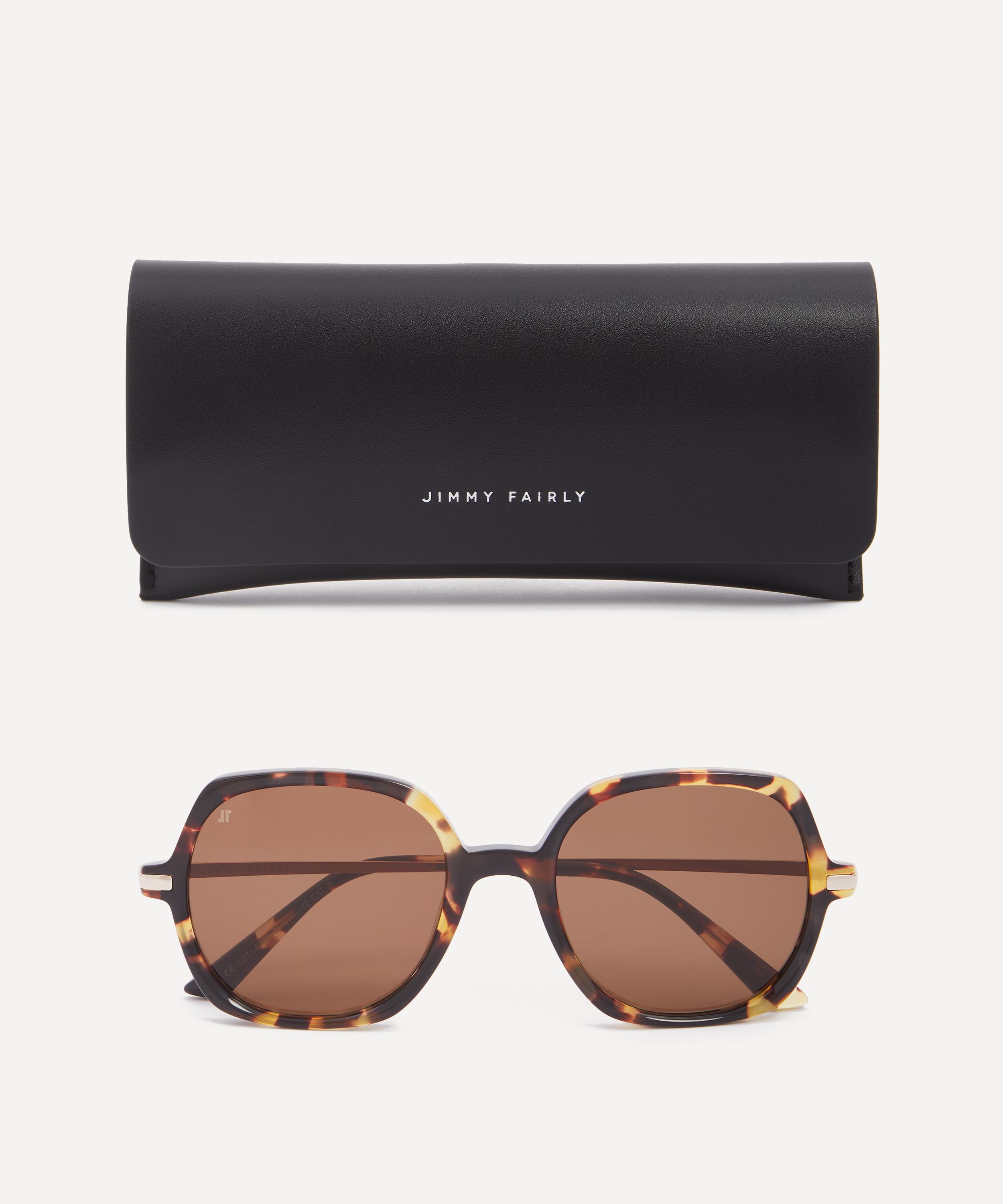 Revamp your accessories collection and effortlessly refine any look with the 70s-inspired Dimby sunglasses from Jimmy Fairly. Expertly crafted from lightweight, durable metal and crystal caramel acetate frames, these square shades offer a comfortable fit that suits round, oval or triangular faces. Equipped with tinted lenses to protect your eyes and provide clear vision even on the brightest days, this pair is complete with subtle branding to the inside arm.