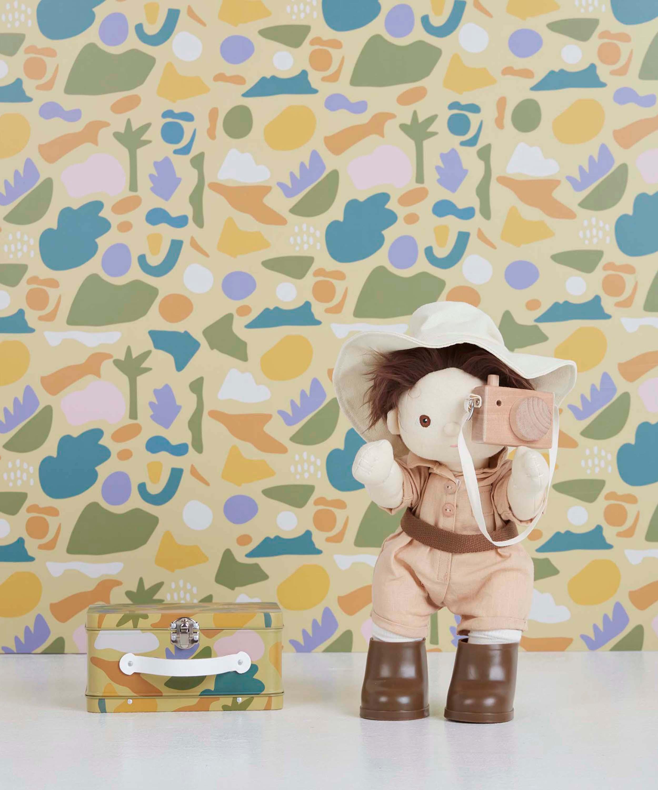 Step into a world of adventure with this marvellous pretend pack featuring a collection of beautifully crafted toys to kick start afternoons lost in play with one of the brand’s Dinkum Dolls. Packed in a collectable tin this kit includes a cotton jumpsuit with a handy matching belt, safari hat, boots and even a little wooden camera – everything your little one will need to set off exploring with their cuddly best friend!About Olli Ella