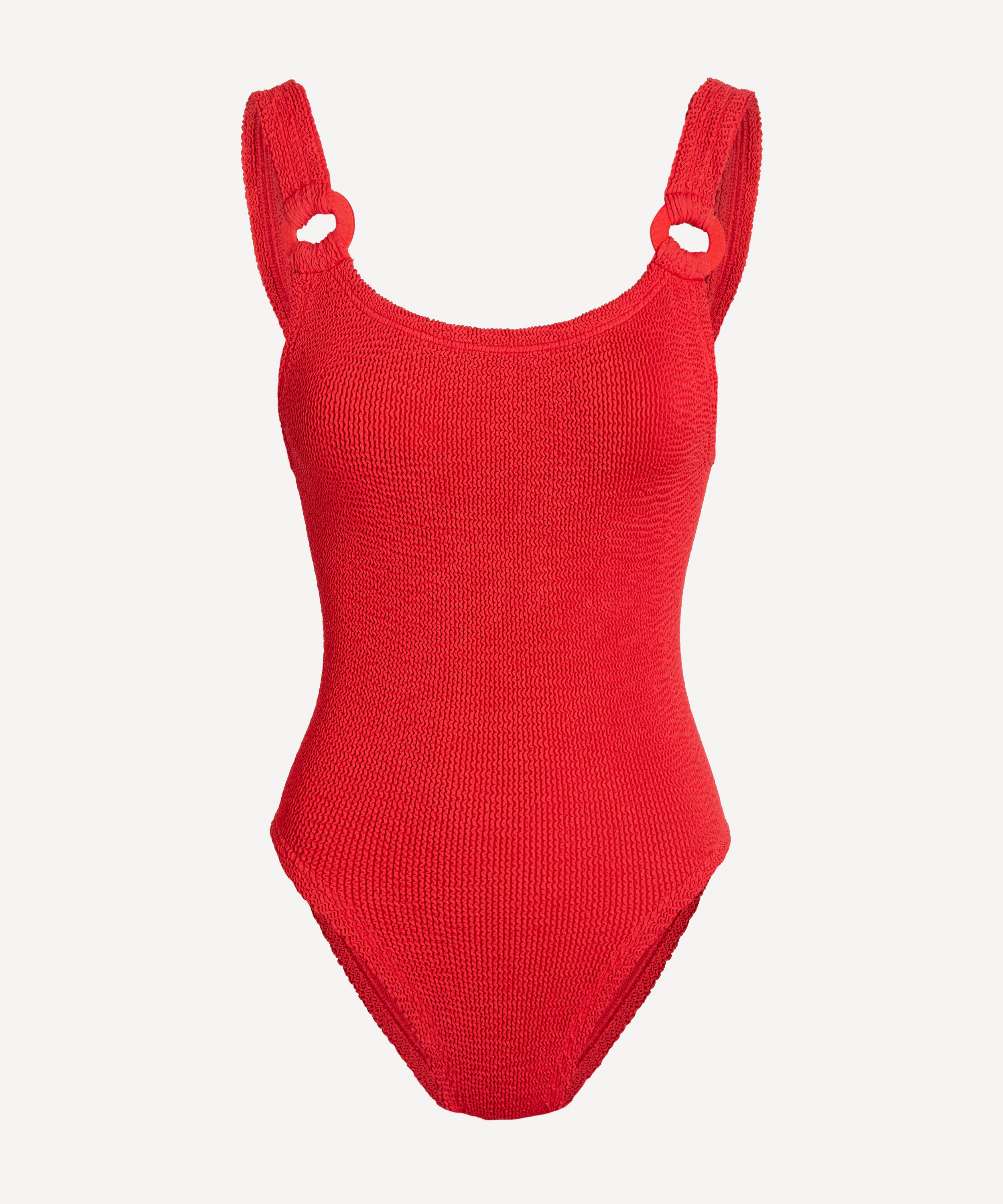 Crafted from the label’s signature crinkle seersucker material for a comfortable, flattering fit every time, this iconic swimsuit exudes timeless appeal with its dipped neck, scooped back and tonal hoop detailing.