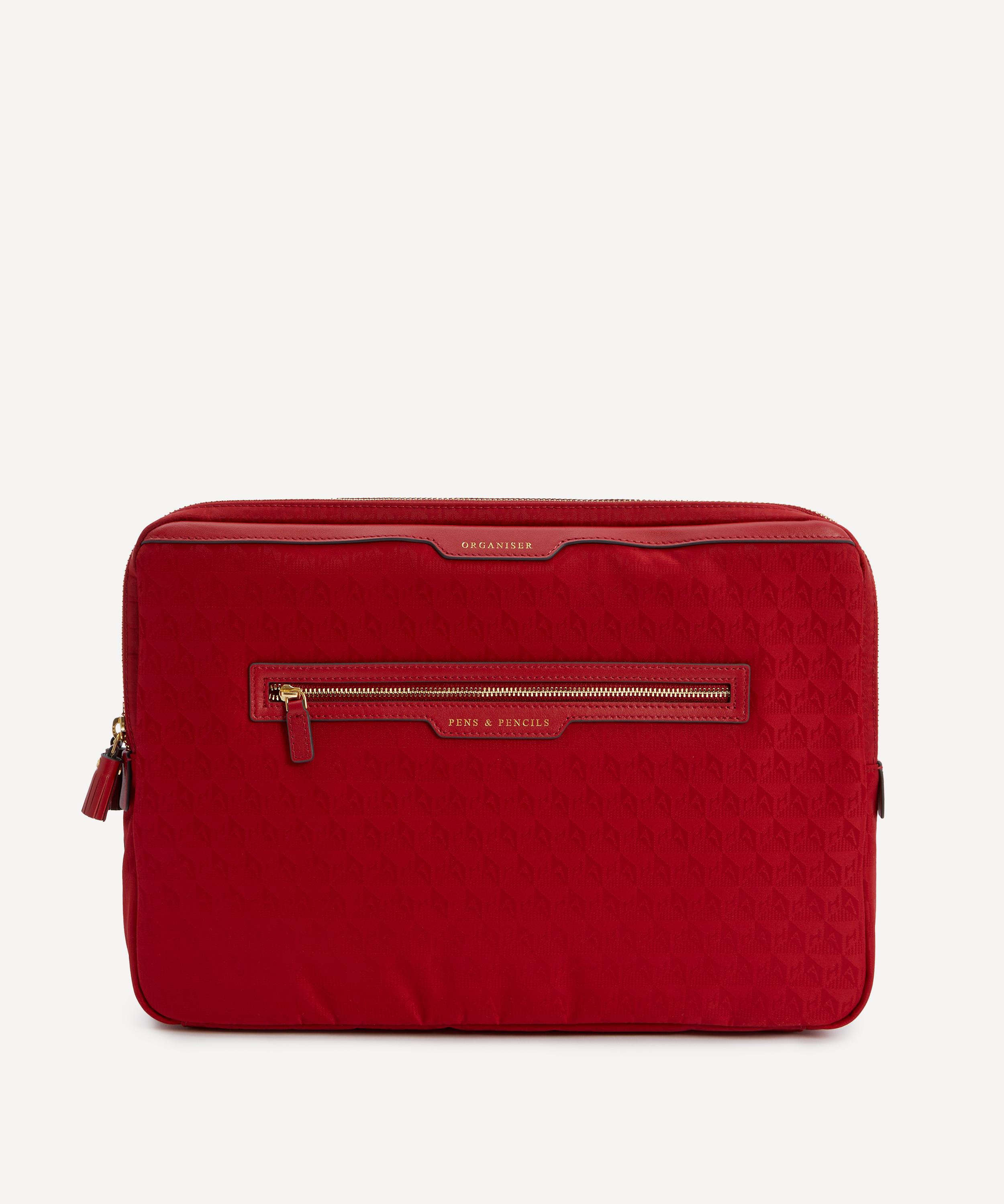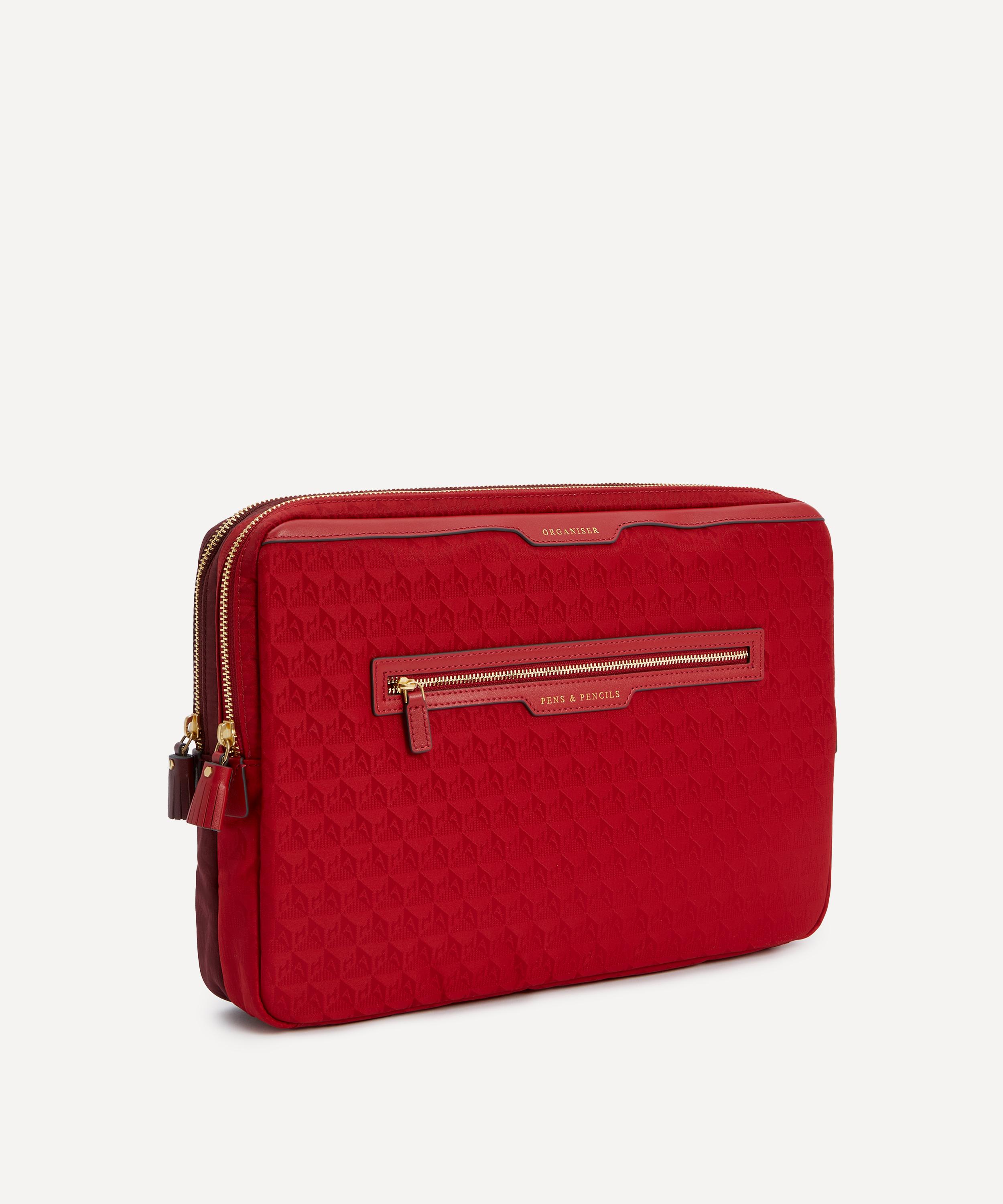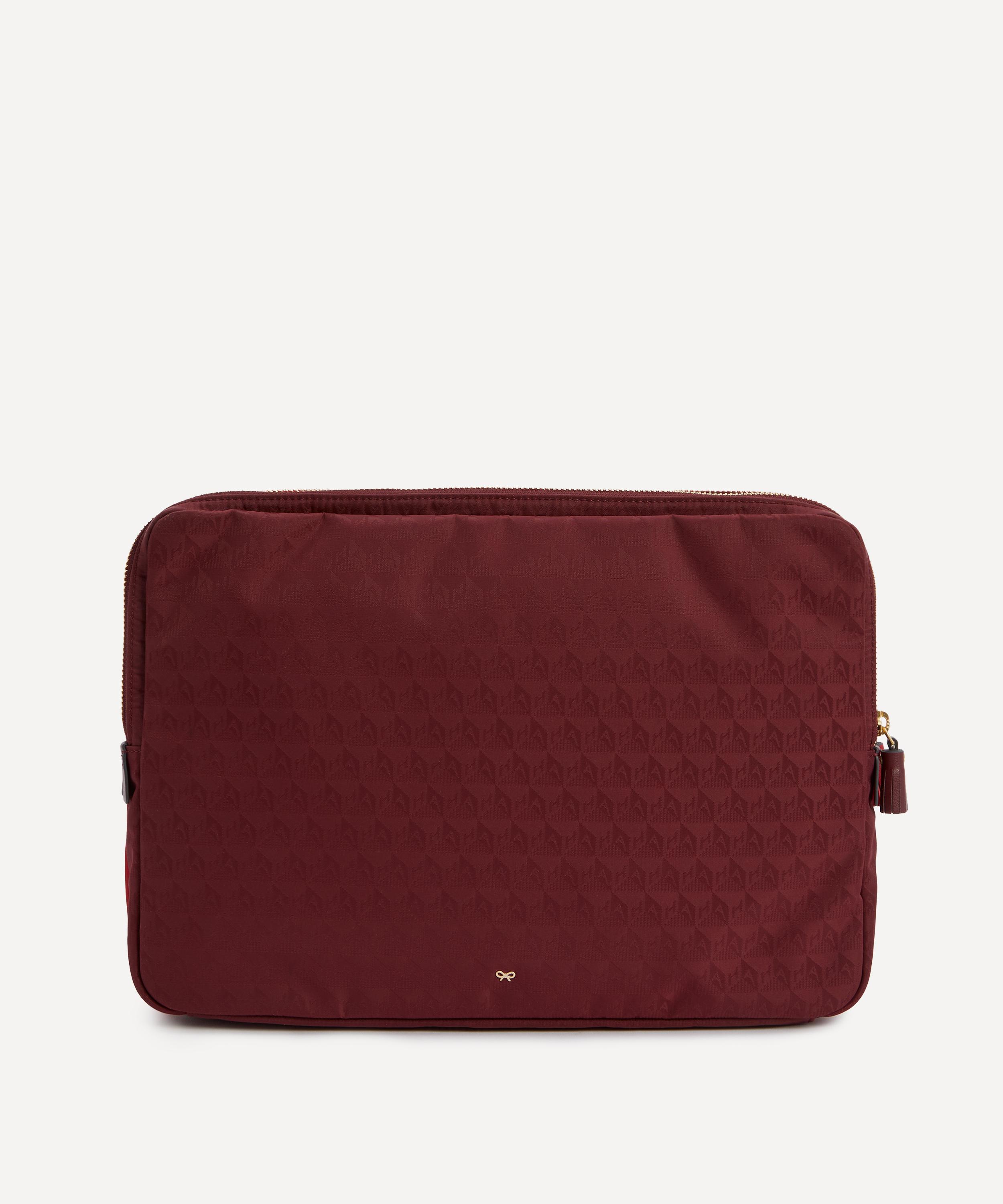 Crafted from jacquard nylon with Capra trims, this laptop sleeve features two organised sections as well as compartments for pens and pencils, detailed in gold-tone embossed lettering - reflecting the brand’s skill for fun, functional accessories.About Anya Hindmarch