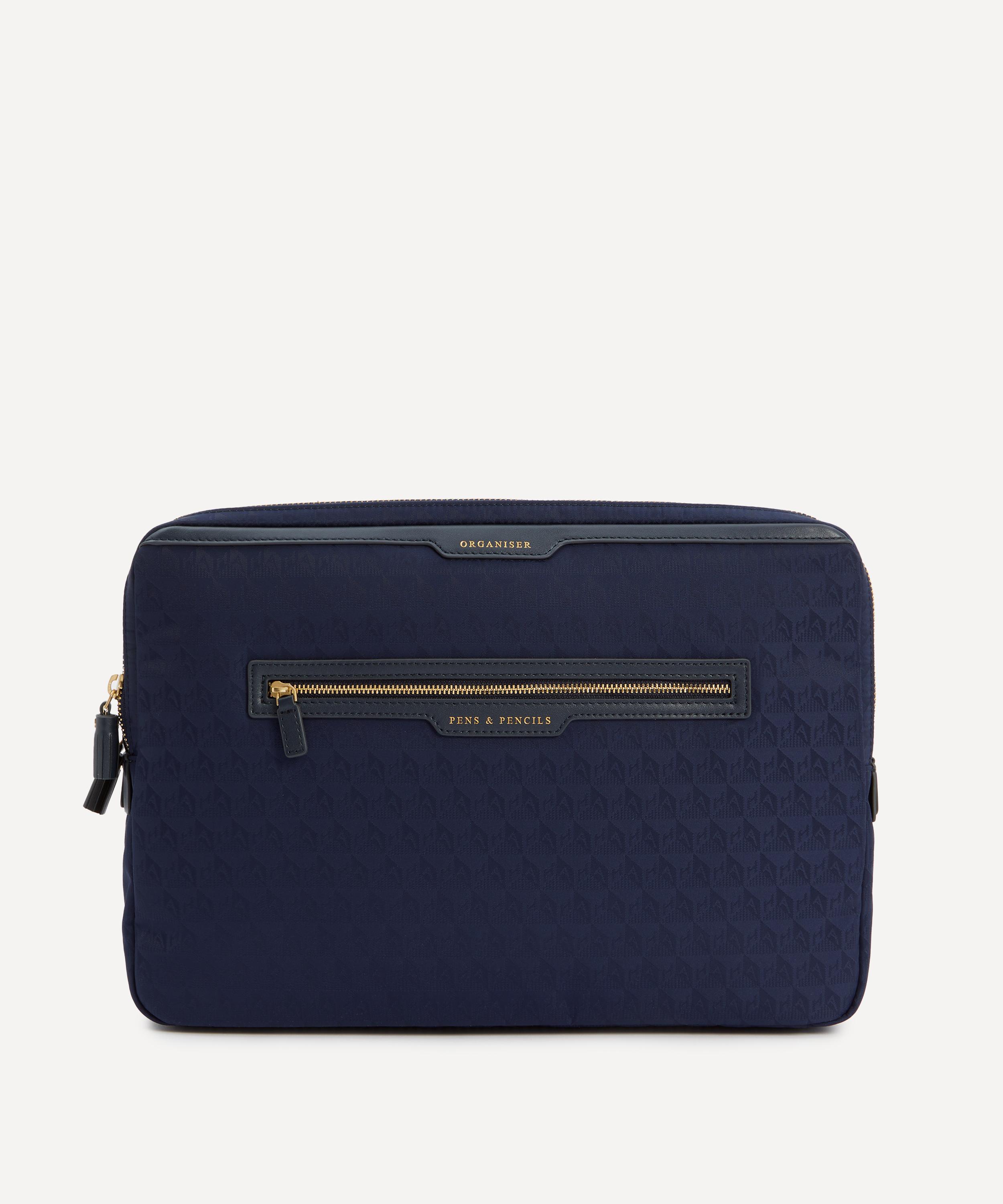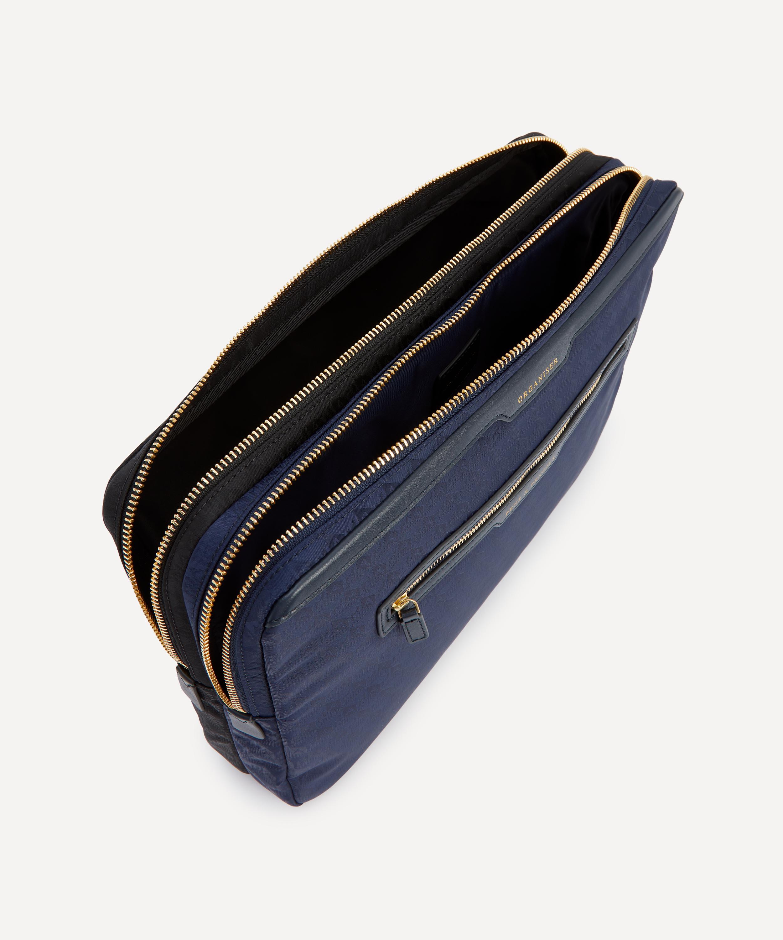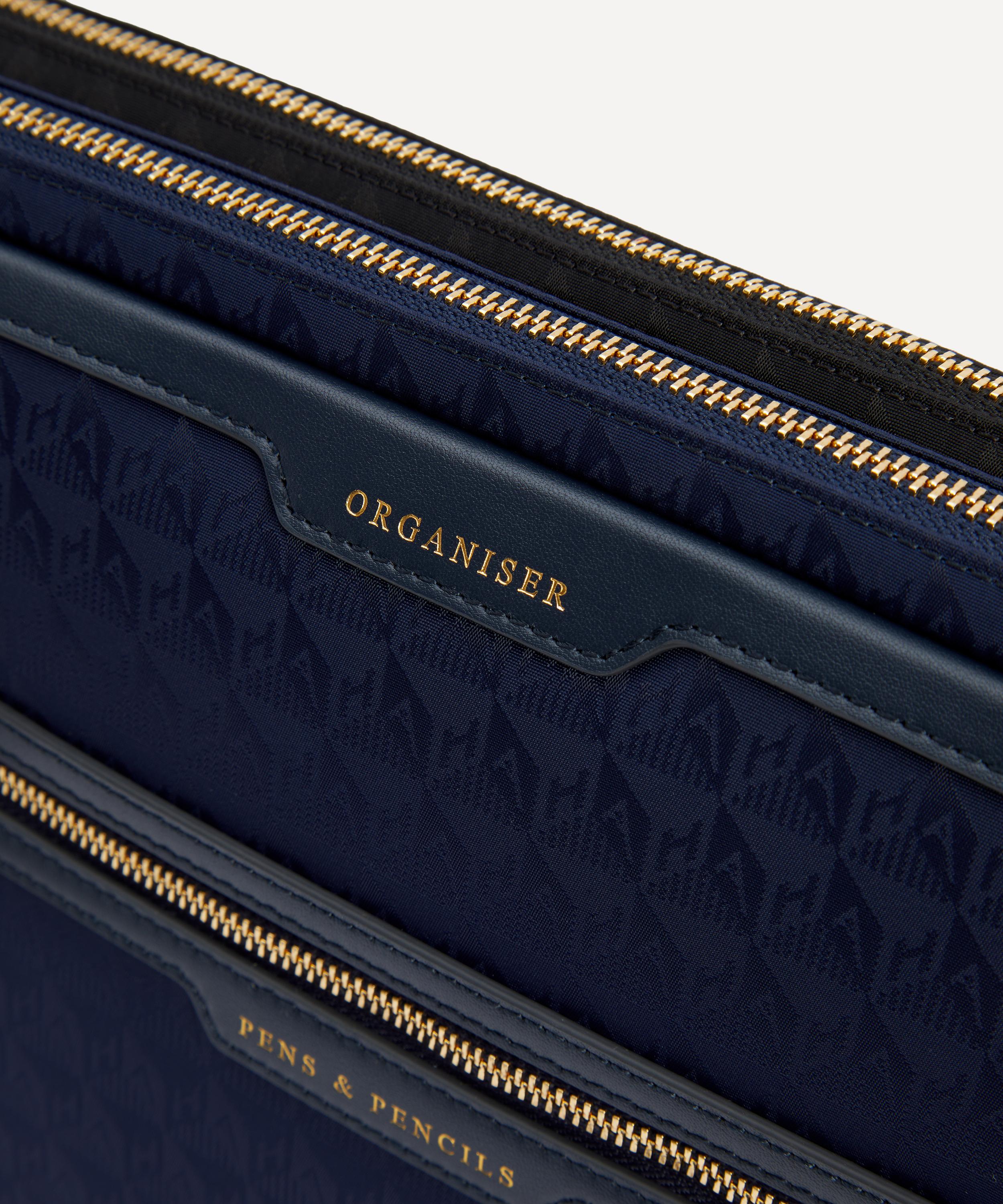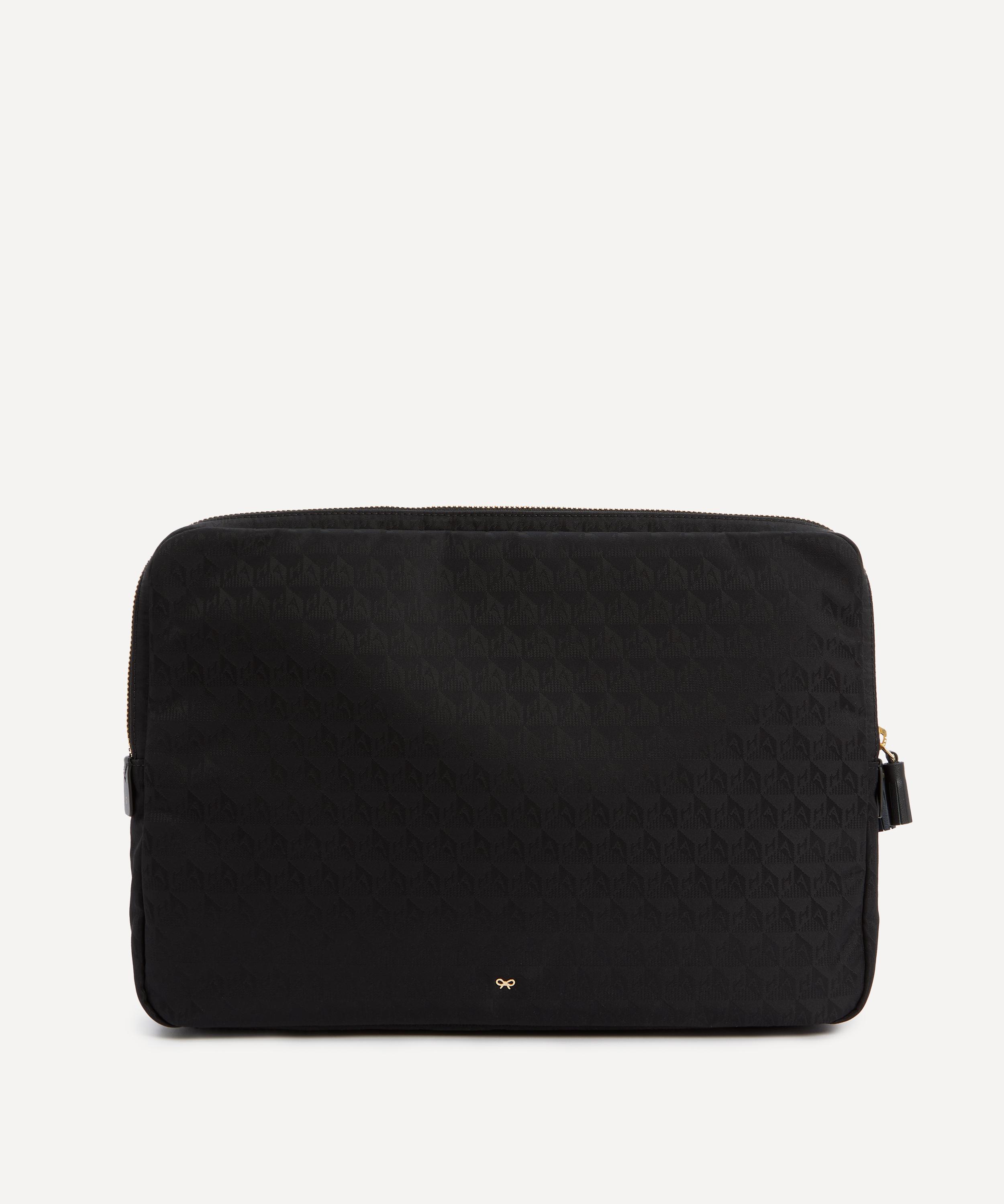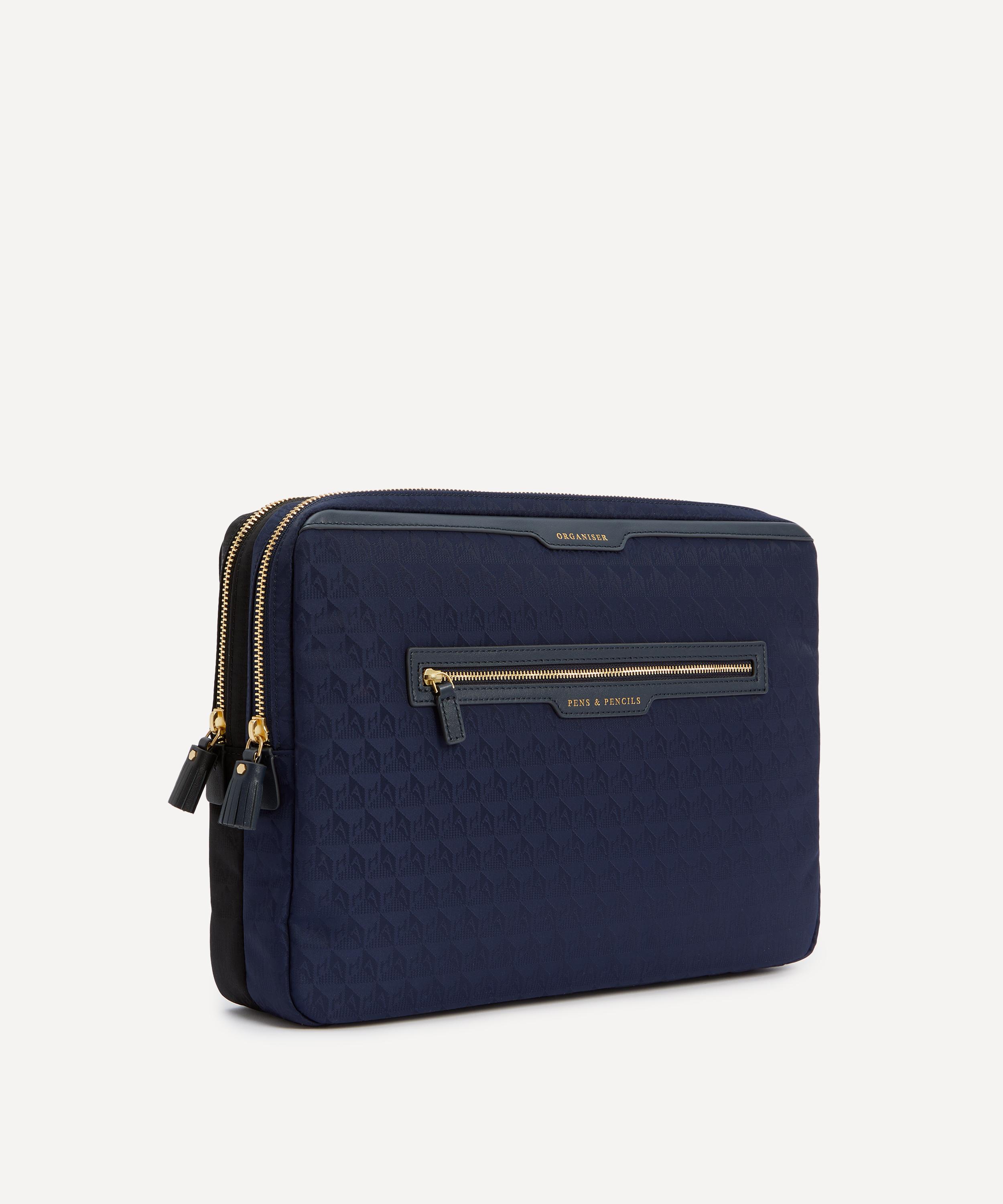 Crafted from jacquard nylon with Capra trims, this laptop sleeve features two organised sections as well as compartments for pens and pencils, detailed in gold-tone embossed lettering - reflecting the brand’s skill for fun, functional accessories.About Anya Hindmarch