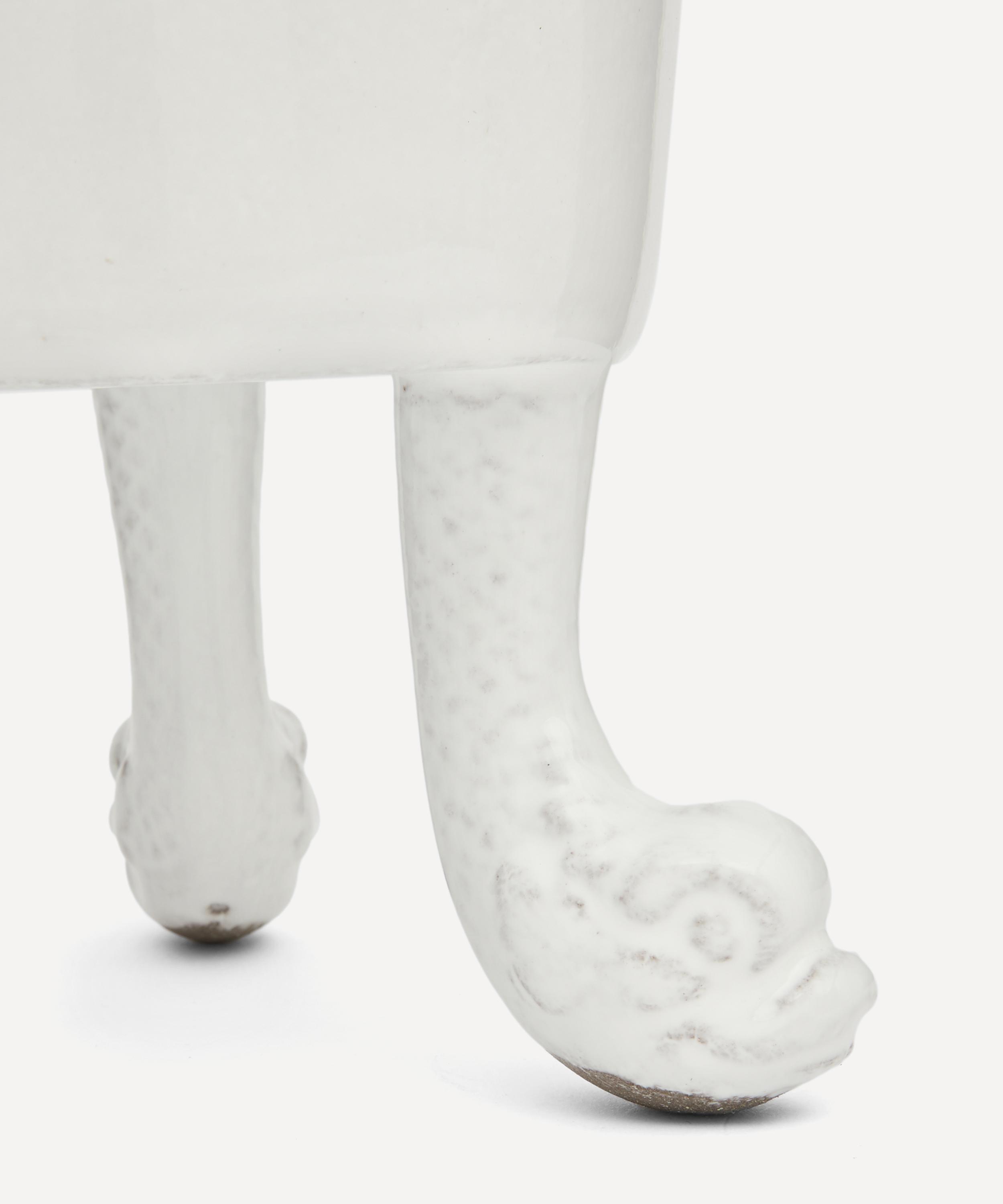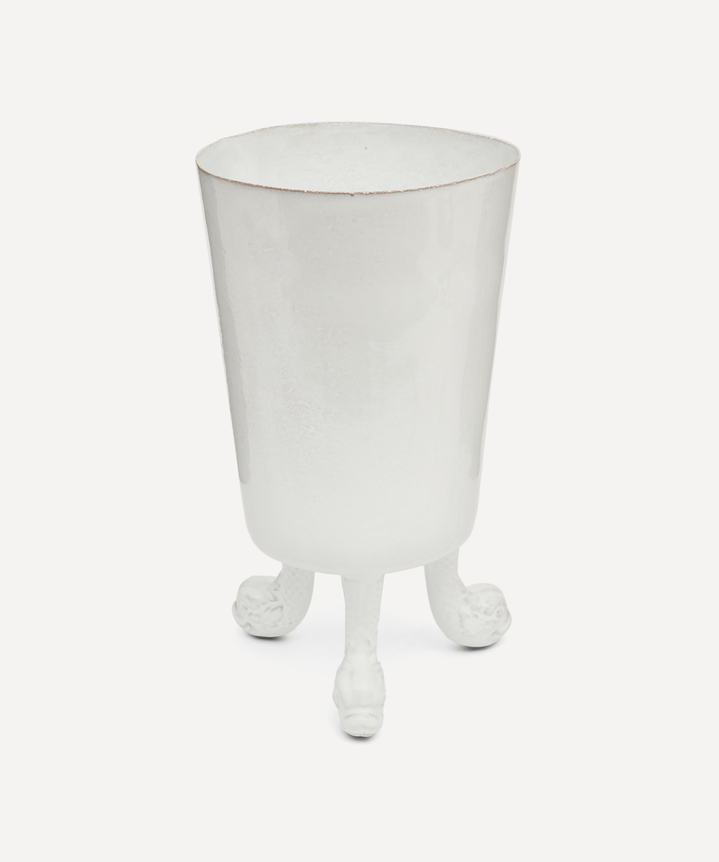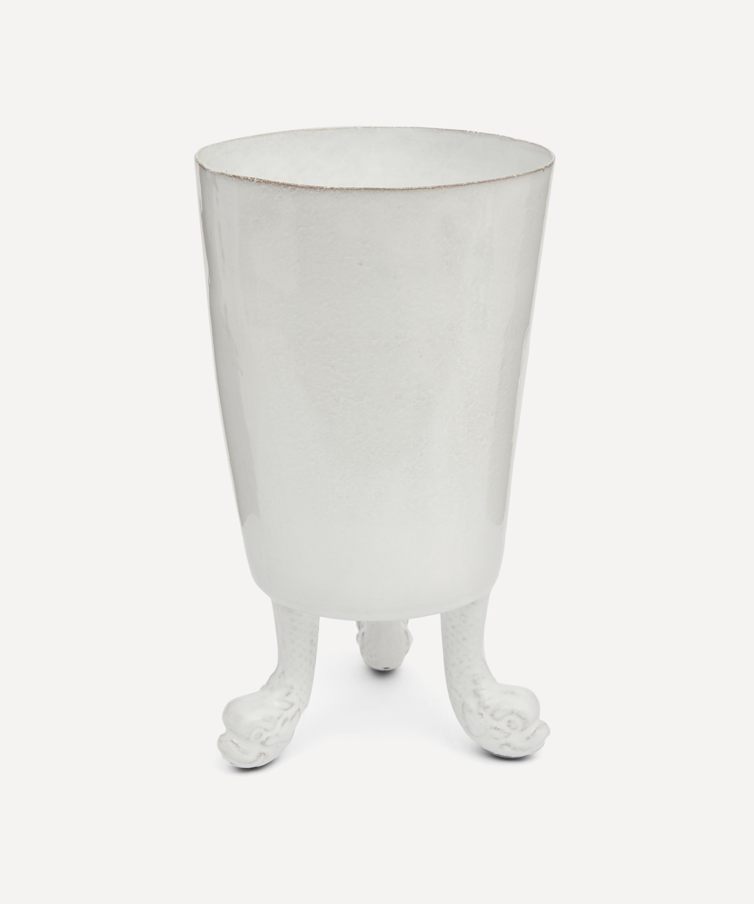 Votary of pre-industrial fabrication, Astier de Villatte is celebrated for being the one and only studio in Paris to hold and harbour the traditions of artisanal ceramic production. Restoring the ancestral systems of moulding and stamping, the Dragon vase is made using techniques from the Middle Ages which involve moulding a sheet of handmade clay, double firing the ‘biscuit’ piece and glazing the product in white enamel – a lengthy process that requires a drying time of up to one month. Characterised by three dragon feet, the vase is engraved with the brand’s signature crest - depicting an interlacing A & V - alongside the initials of one of the 40 master artisans who created it. Each handmade piece tells a beautiful story, it romances and imparts a sense of nostalgia into its owner. Use this perfectly imperfect vase to display verdant fronds or vibrant bouquets.