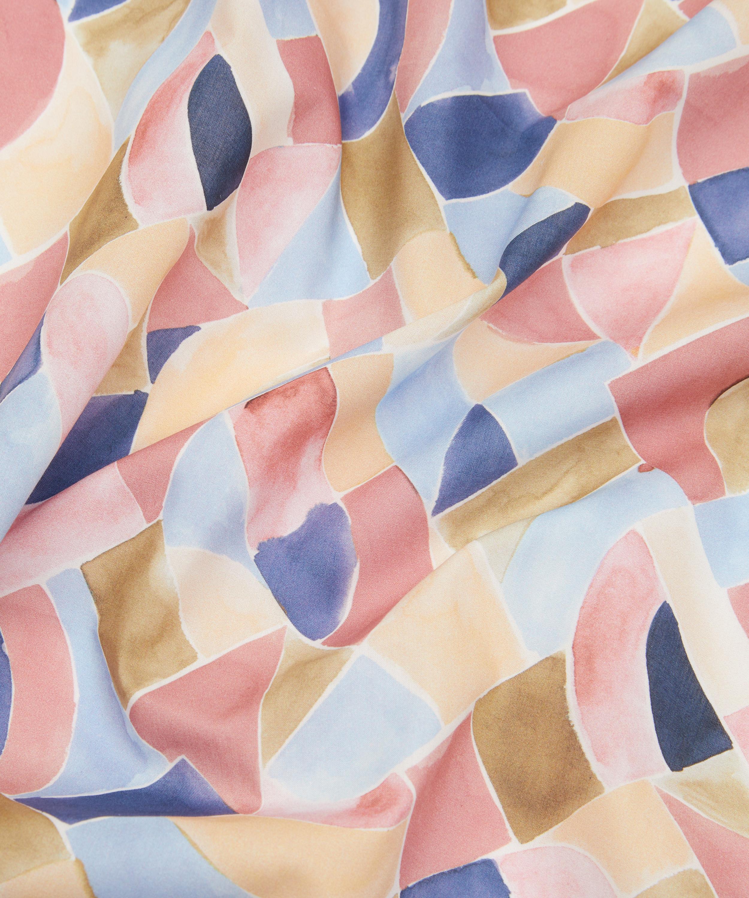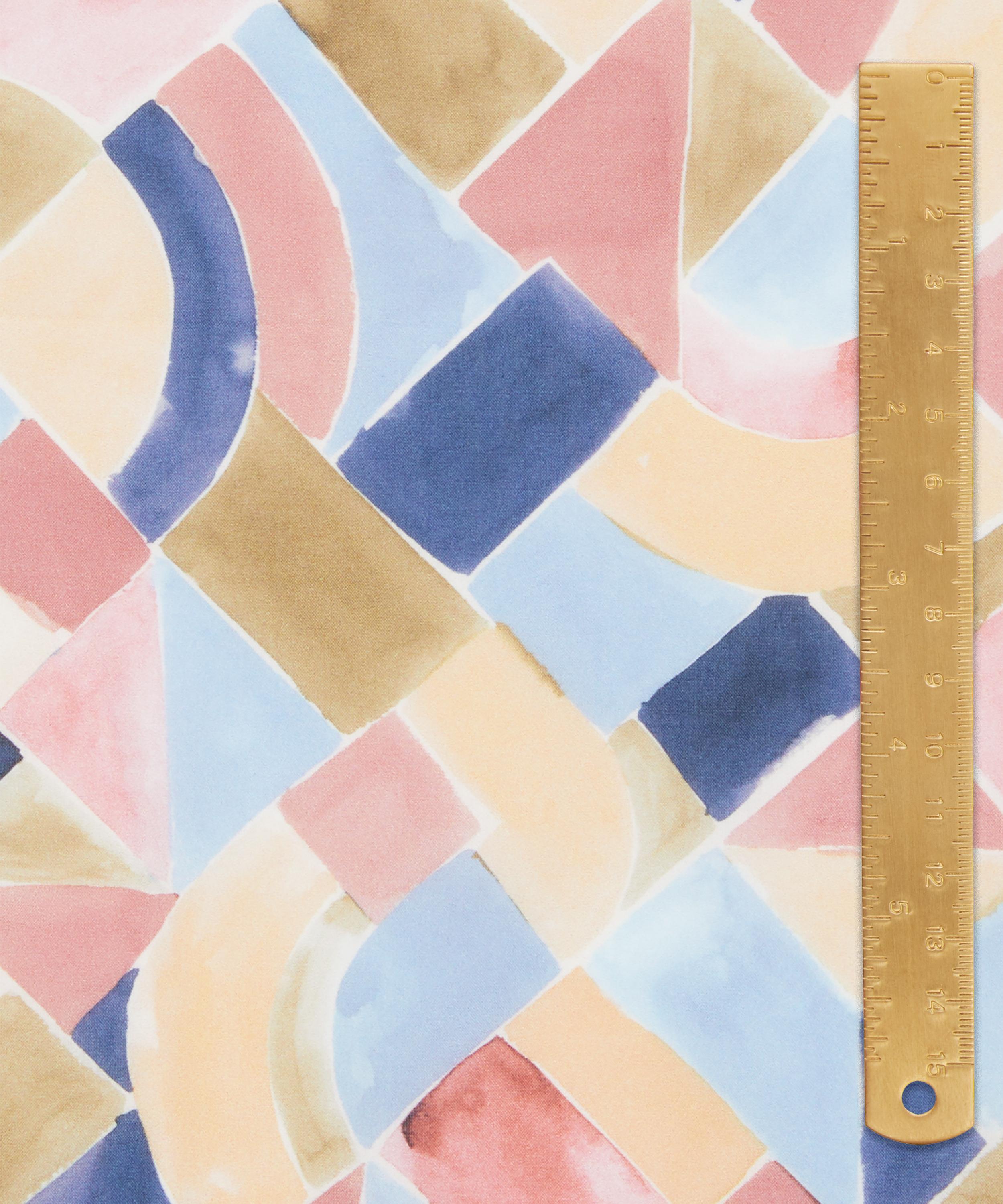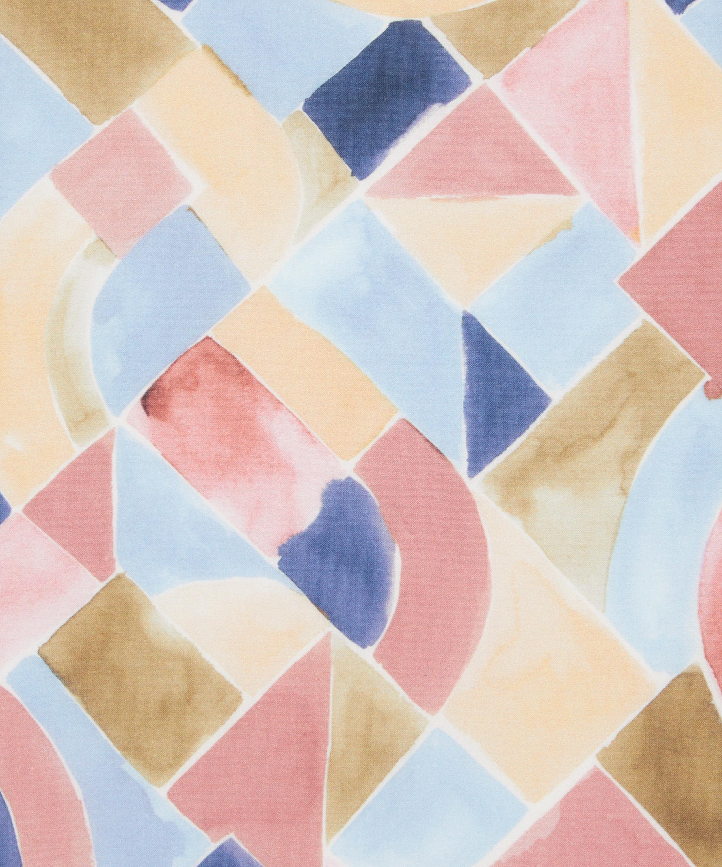 Taking inspiration from Sonia Delaunay’s geometric art and dynamic use of colour, Drake ventures into a world of kaleidoscopic shapes and tonal relationships. Hand-painted in the Liberty studio using fluid watercolours, this tiled collage is infused with nuances of depth and soft textures. A clever synergy of lines, blocks, triangles, and curves breathes life into the design, creating an avant-garde aesthetic. This print is part of the second chapter of this collection, Collaboration, which reflects the current design team’s celebration of the techniques and styles of their predecessors - bridging the gap between past and present.