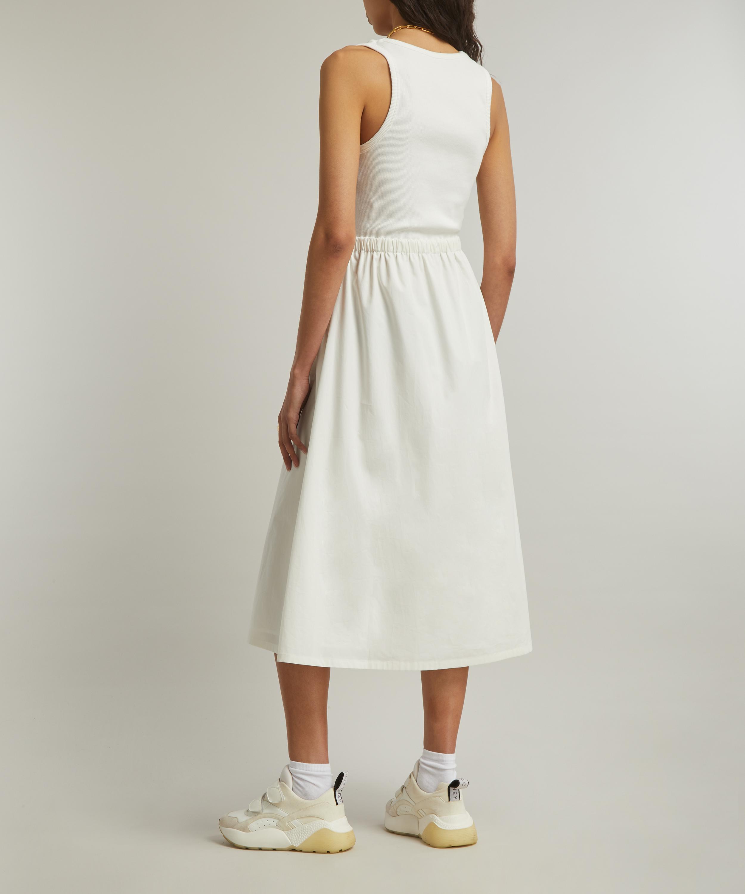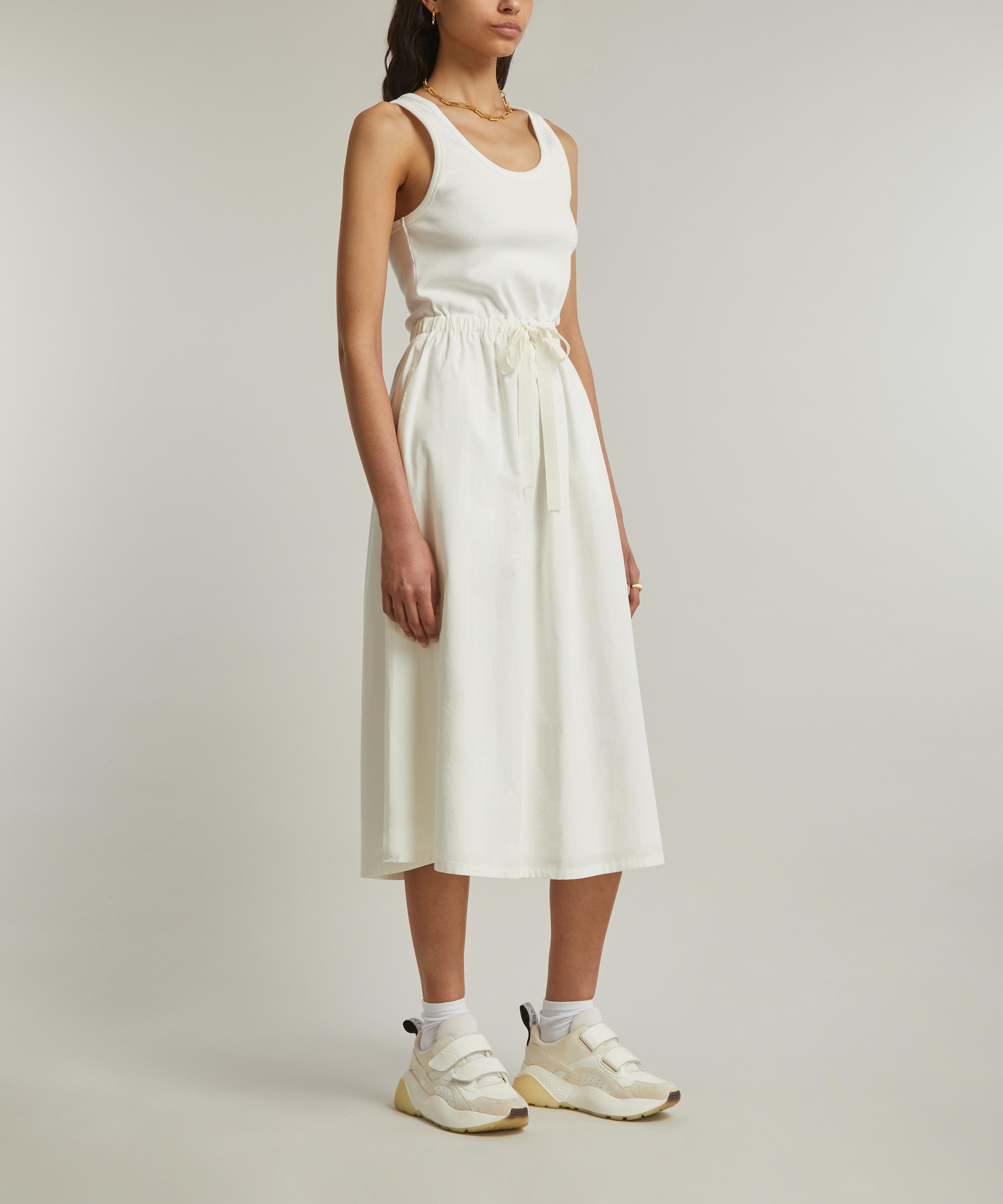 Fusing the label’s technical expertise with classic styles, this hybrid dress consists of a rib-knit tank-effect bodice, and a full stretch-cotton skirt. Designed with a fit-a-flare silhouette, its drawstring waistband is cinched with grosgrain ties.