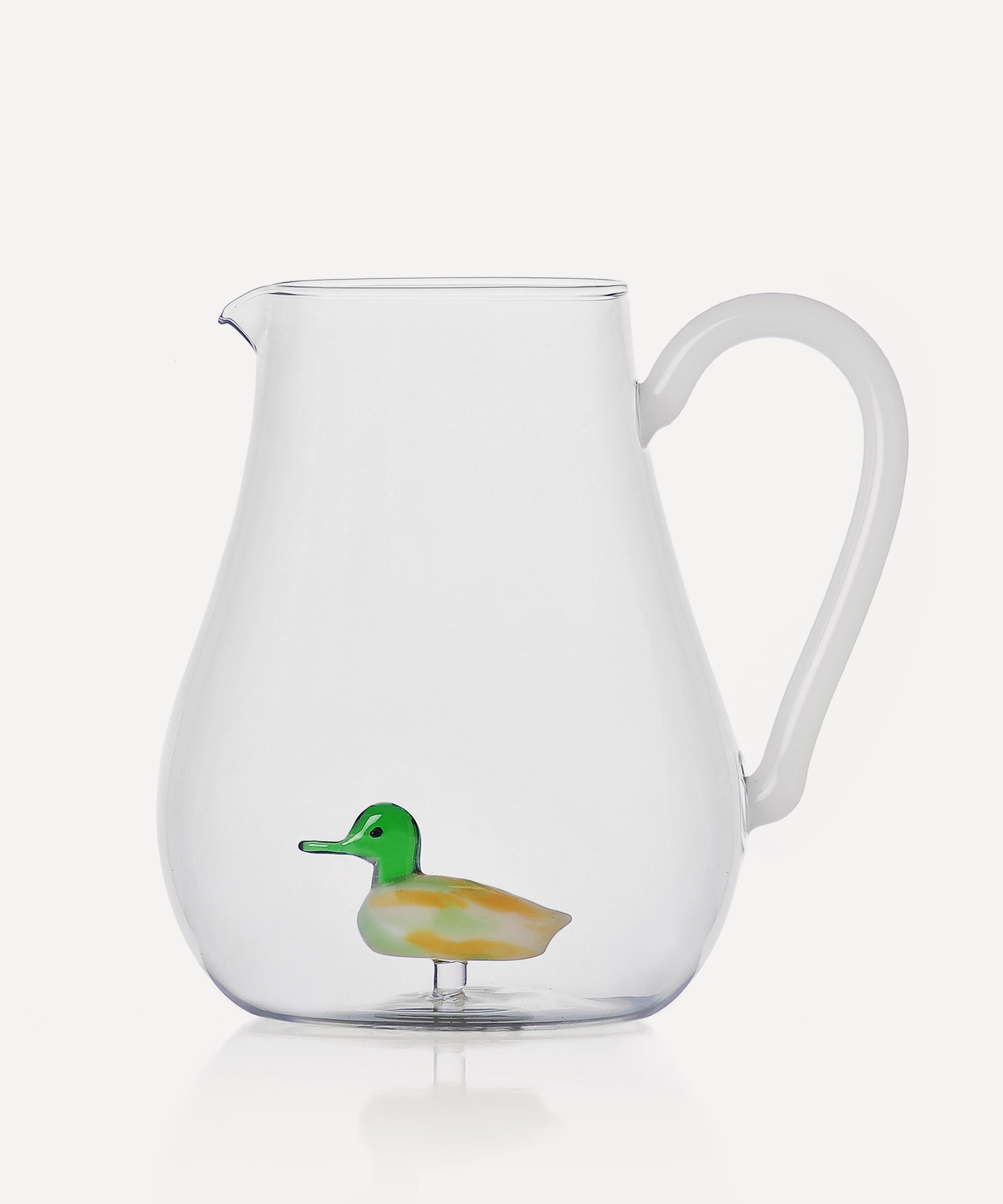 Hand-made and flame-worked in Italy, this pitcher features a sleek silhouette and is decorated with a stylised duck motif. Perfect for gifting or pile high with ice and fill with your favourite summer cocktail for the centre of your hosting tablescape.About Ichendorf