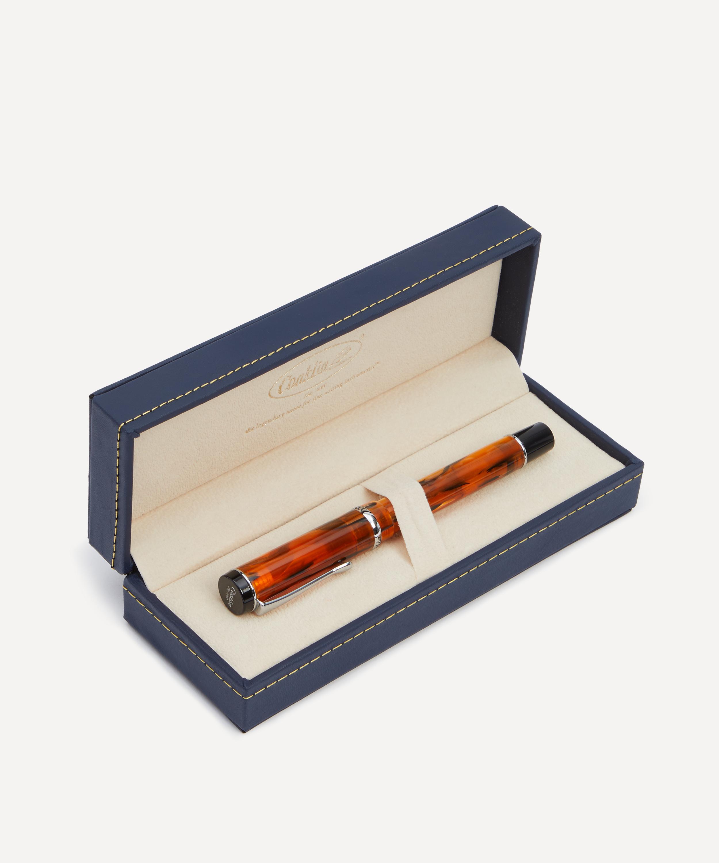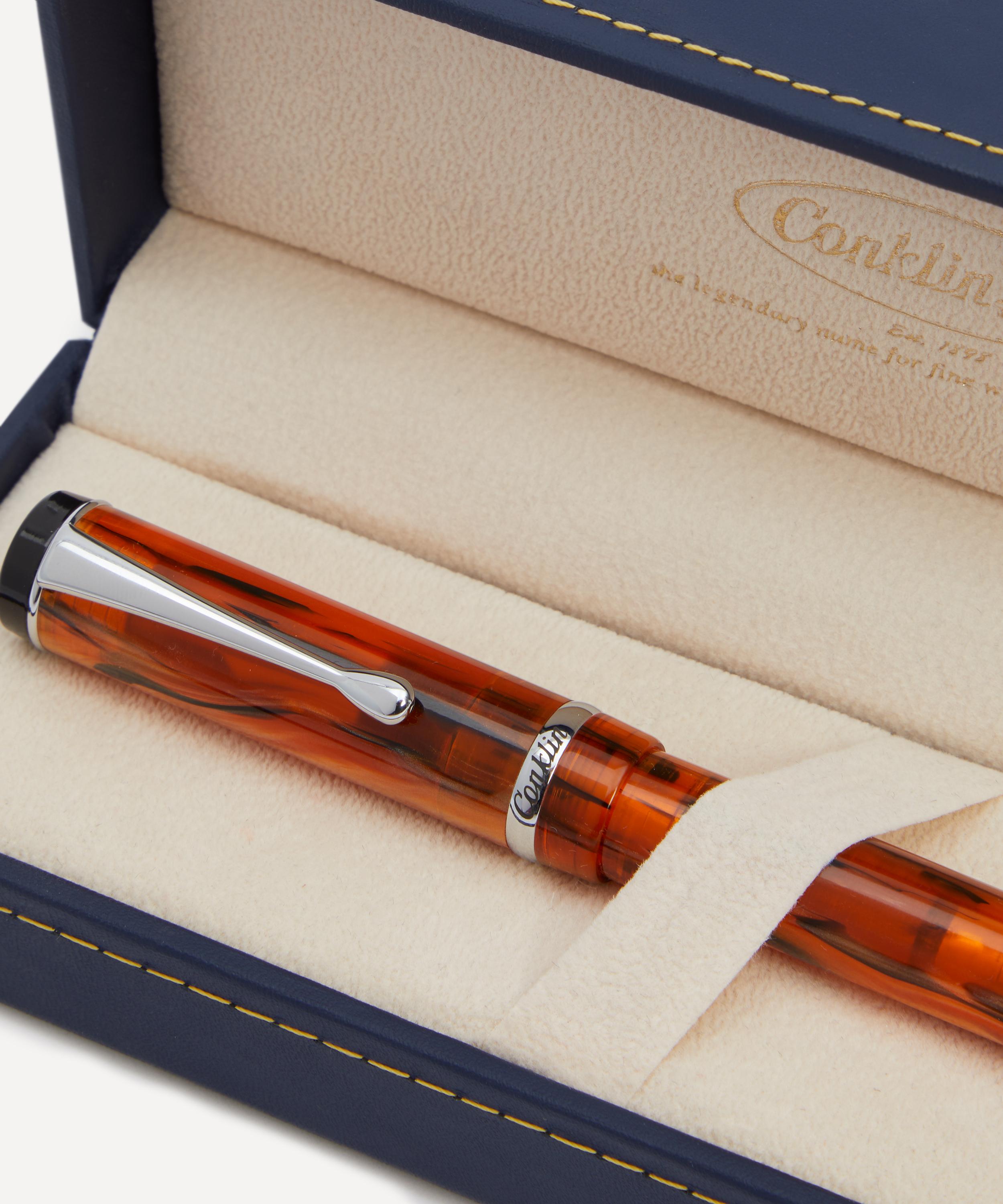 This pen is an exquisite example of Conklins’ attention to detail - the cap is adorned with the Conklin Est. 1898 logo and is engraved with the company’s three iconic crescents, with its warm amber hue made up of handmade resins. Finished with a steel nib results for smooth and comfortable writing experience, this pen is a chic essential in your workspace or a perfect gift to a loved one with literary tendencies.