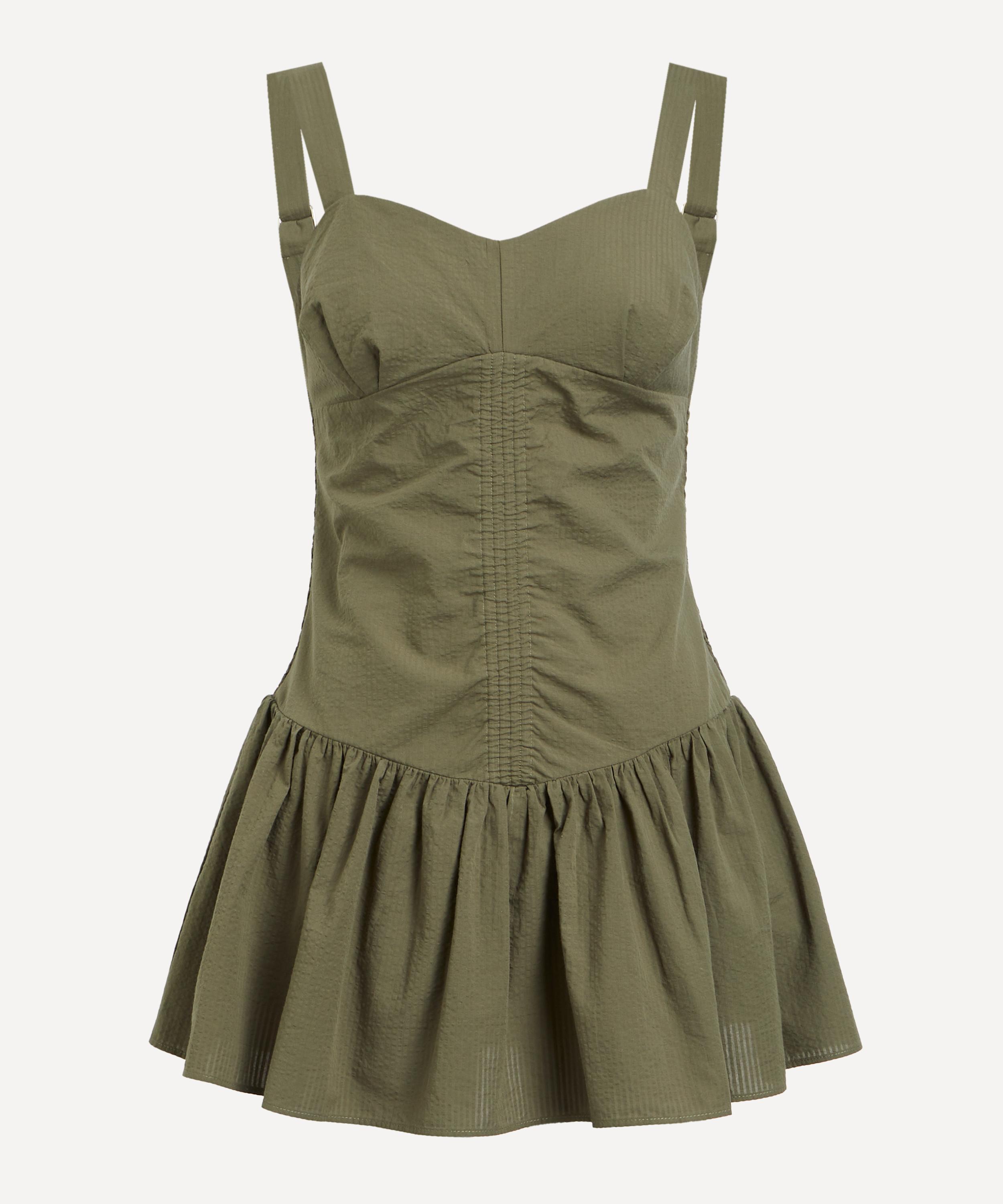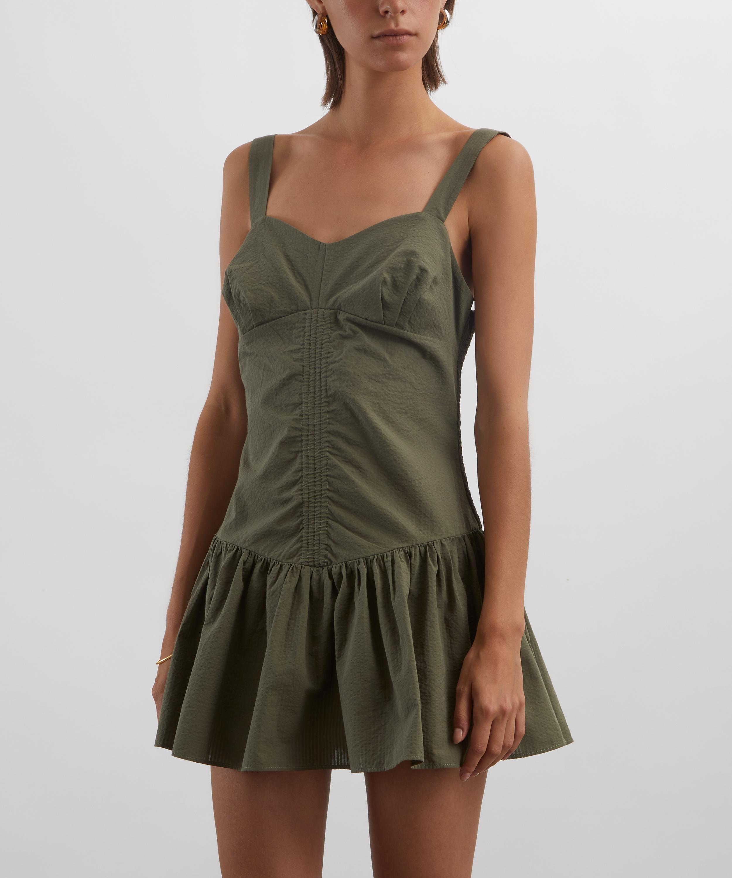 Crafted from cotton adorned with crisp broderie anglaise, the Dylan Romper features a ruched bodice, dropped waist, and built-in shorts for ease and coverage.