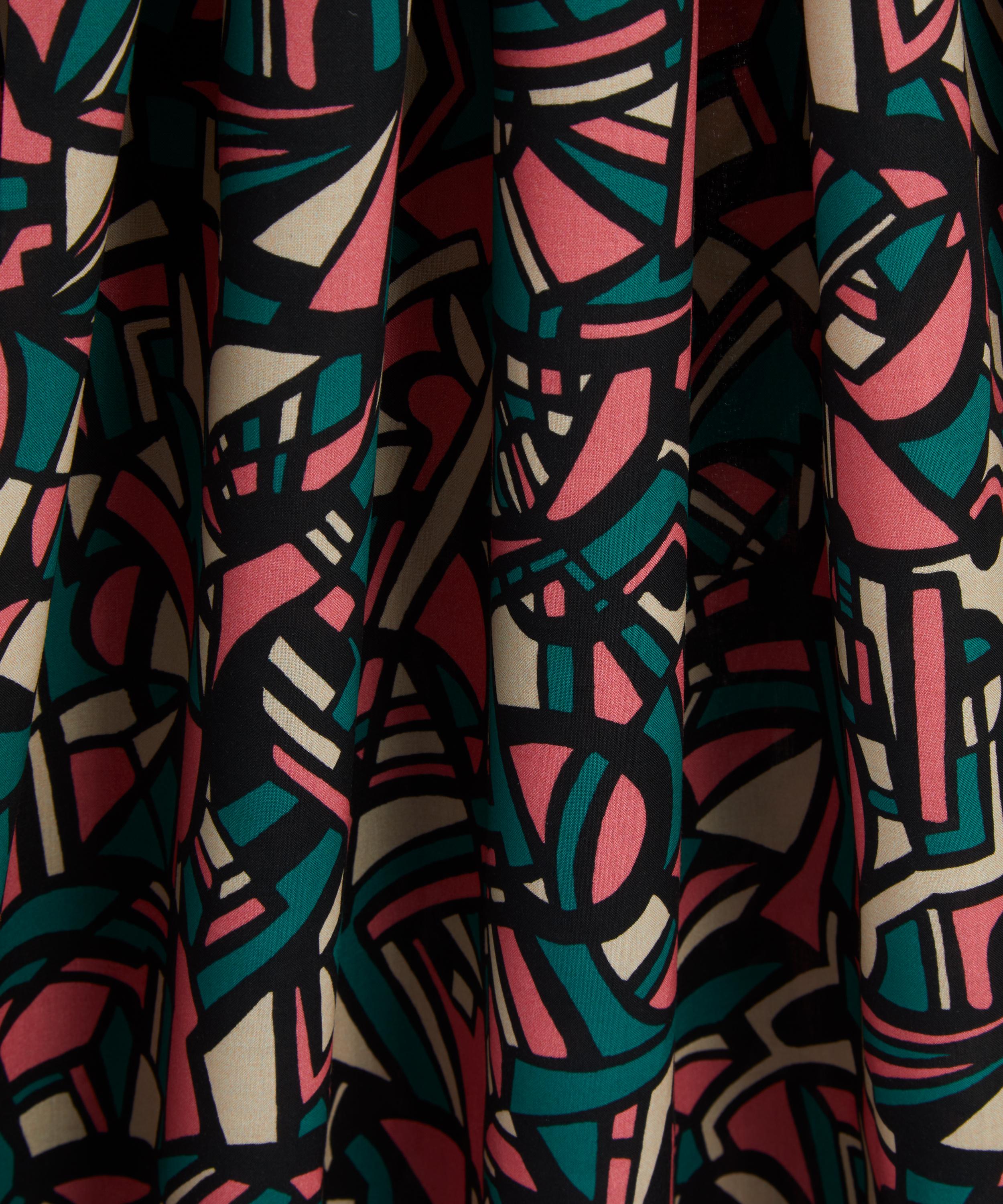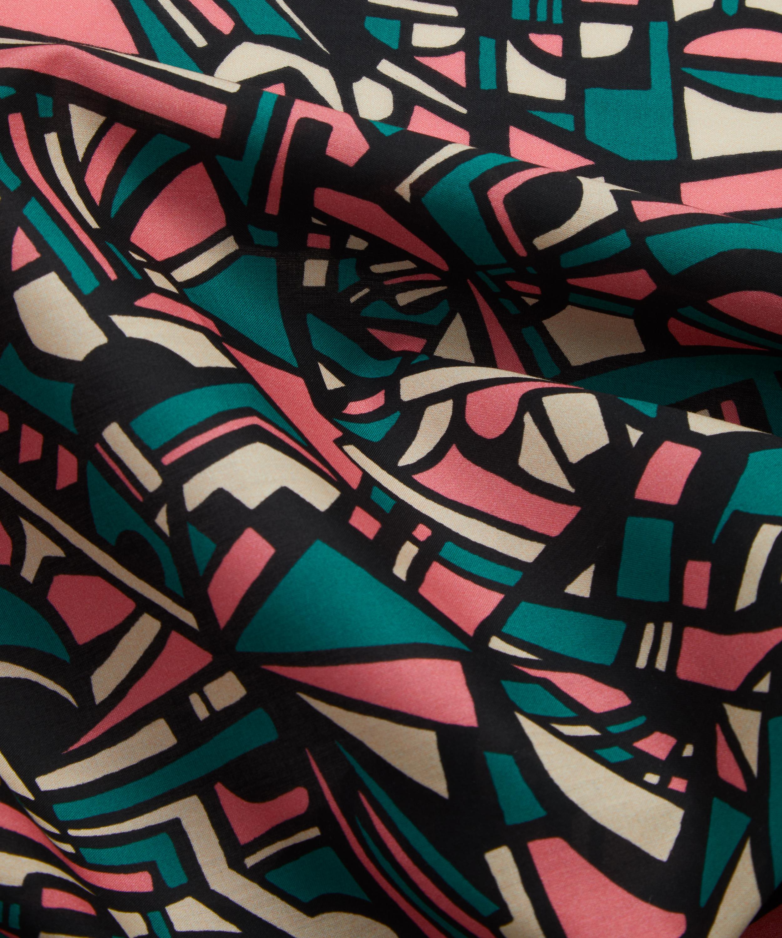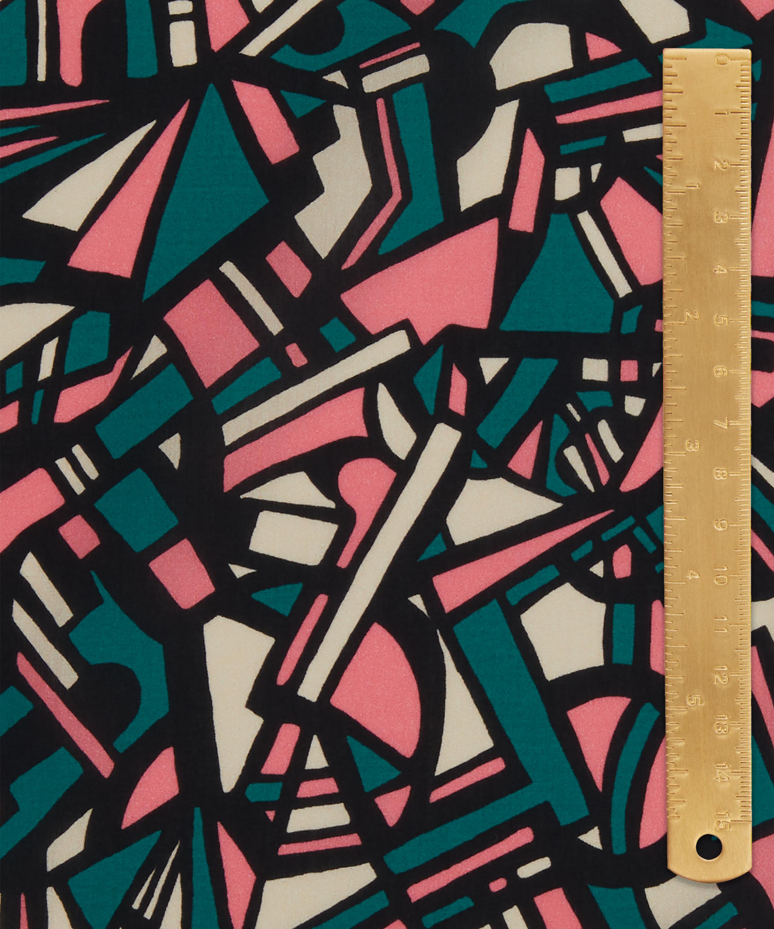 Dynamic City is a design from Bernard Nevill’s 1960’s Jazz Collection, originally printed for Liberty in velvet and silk before being reprinted on a variety of base cloths until the early 1970s. The Liberty Design Studio meticulously redrew the artwork which features bold black lines that frame coloured tessellating shapes - giving the design a feeling of stained glass.