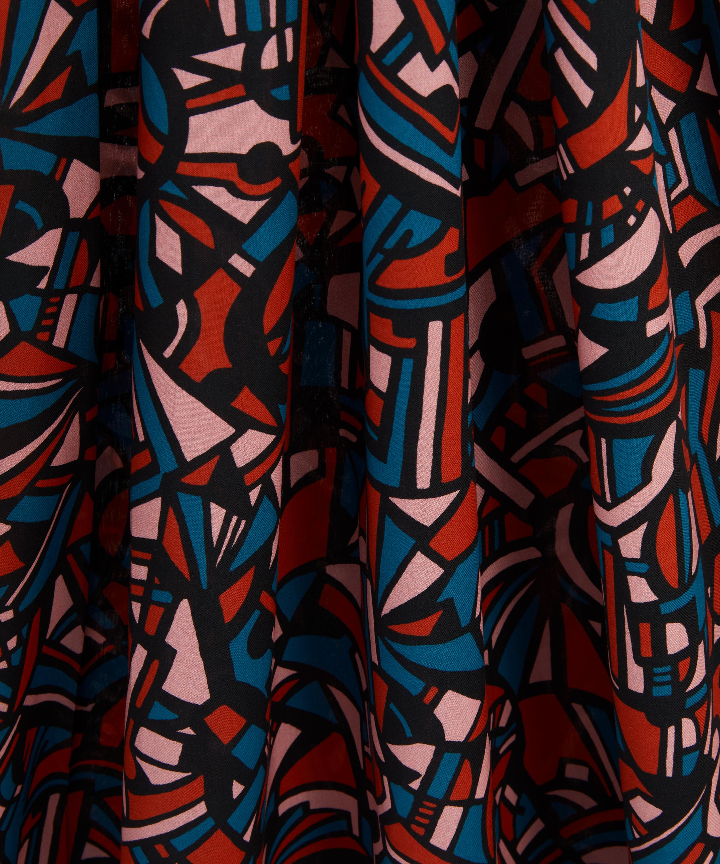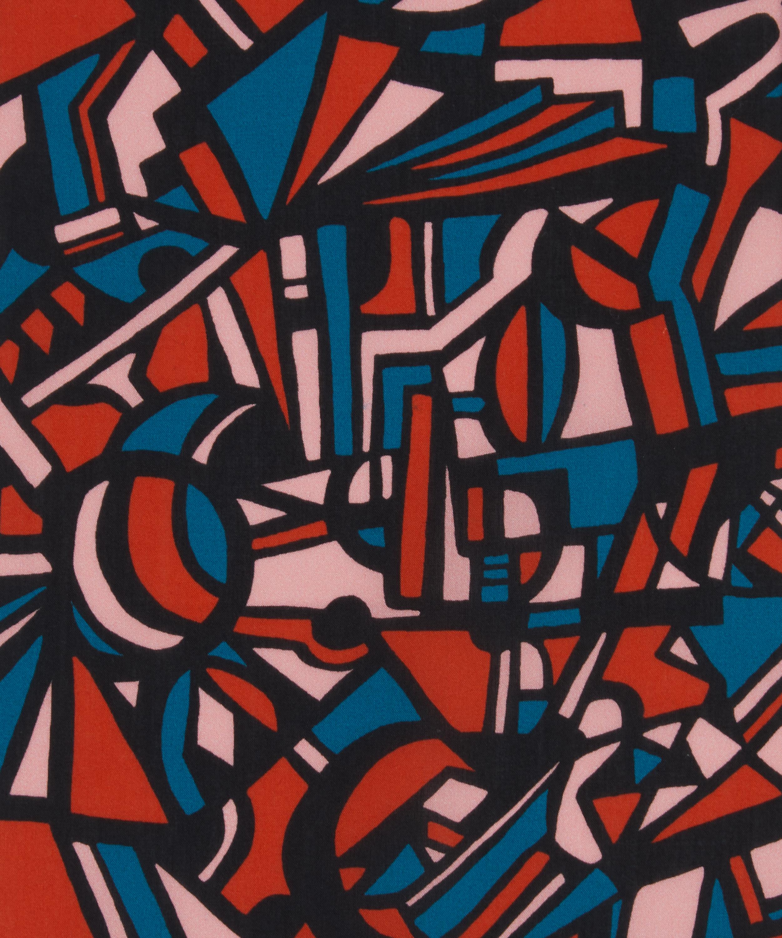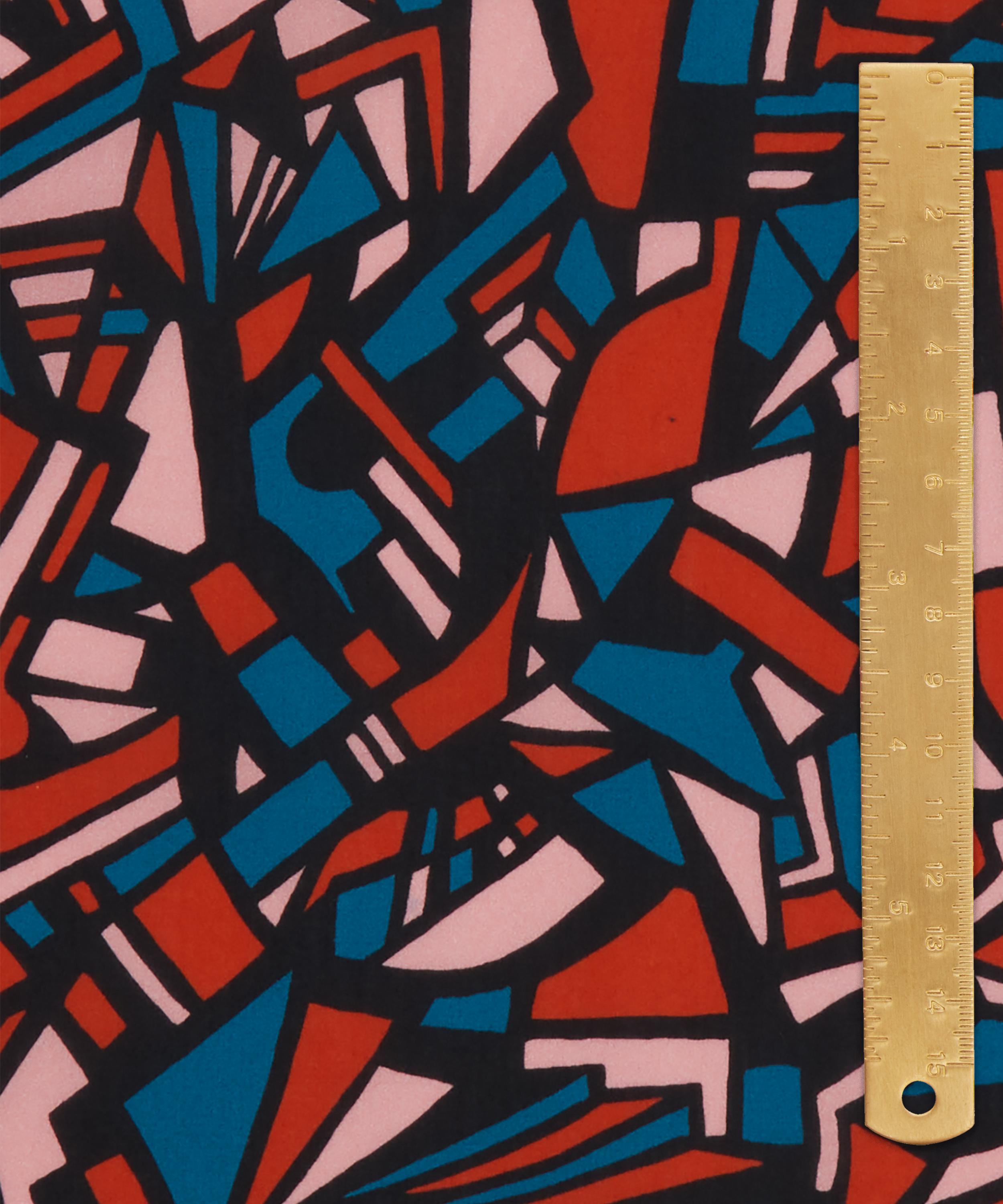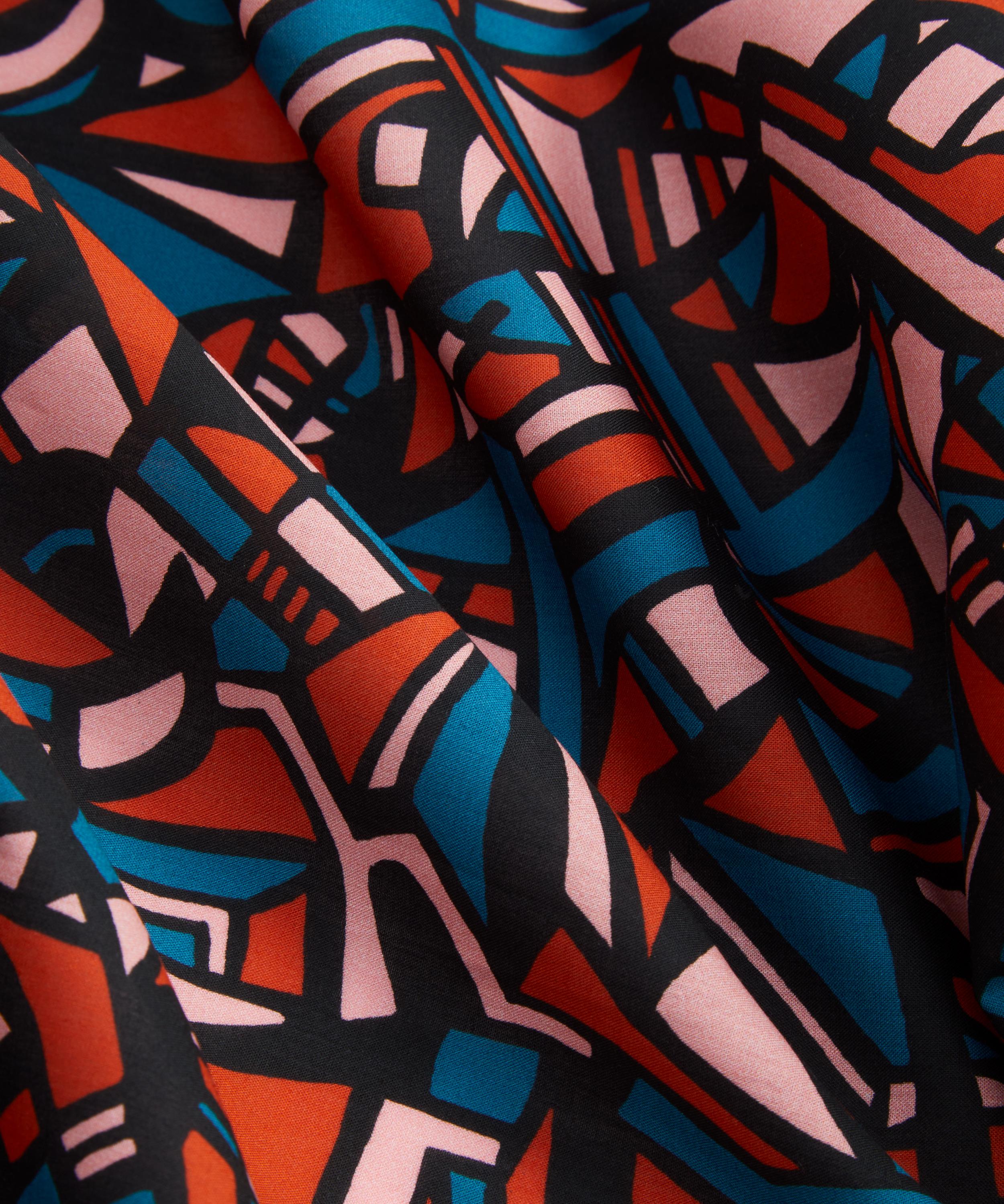 Dynamic City is a design from Bernard Nevill’s 1960’s Jazz Collection, originally printed for Liberty in velvet and silk before being reprinted on a variety of base cloths until the early 1970s. The Liberty Design Studio meticulously redrew the artwork which features bold black lines that frame coloured tessellating shapes - giving the design a feeling of stained glass.