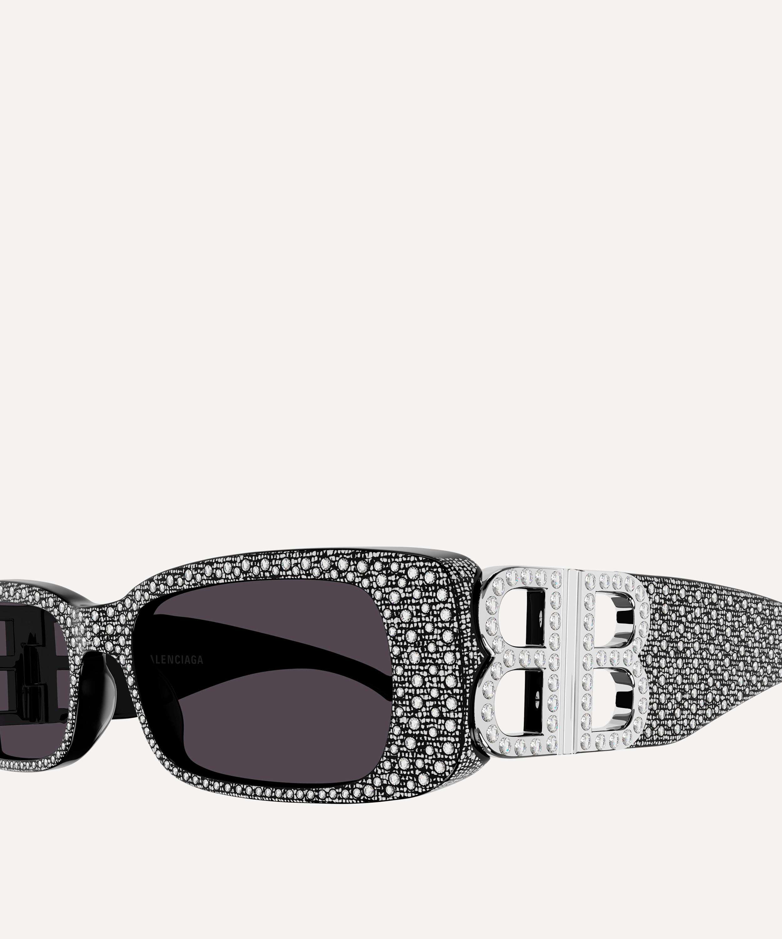 A high-impact pair poised to elevate any look, the Dynasty sunglasses from Balenciaga feature a glossy black aesthetic, covered in sparkling crystal embellishments for a statement finish.