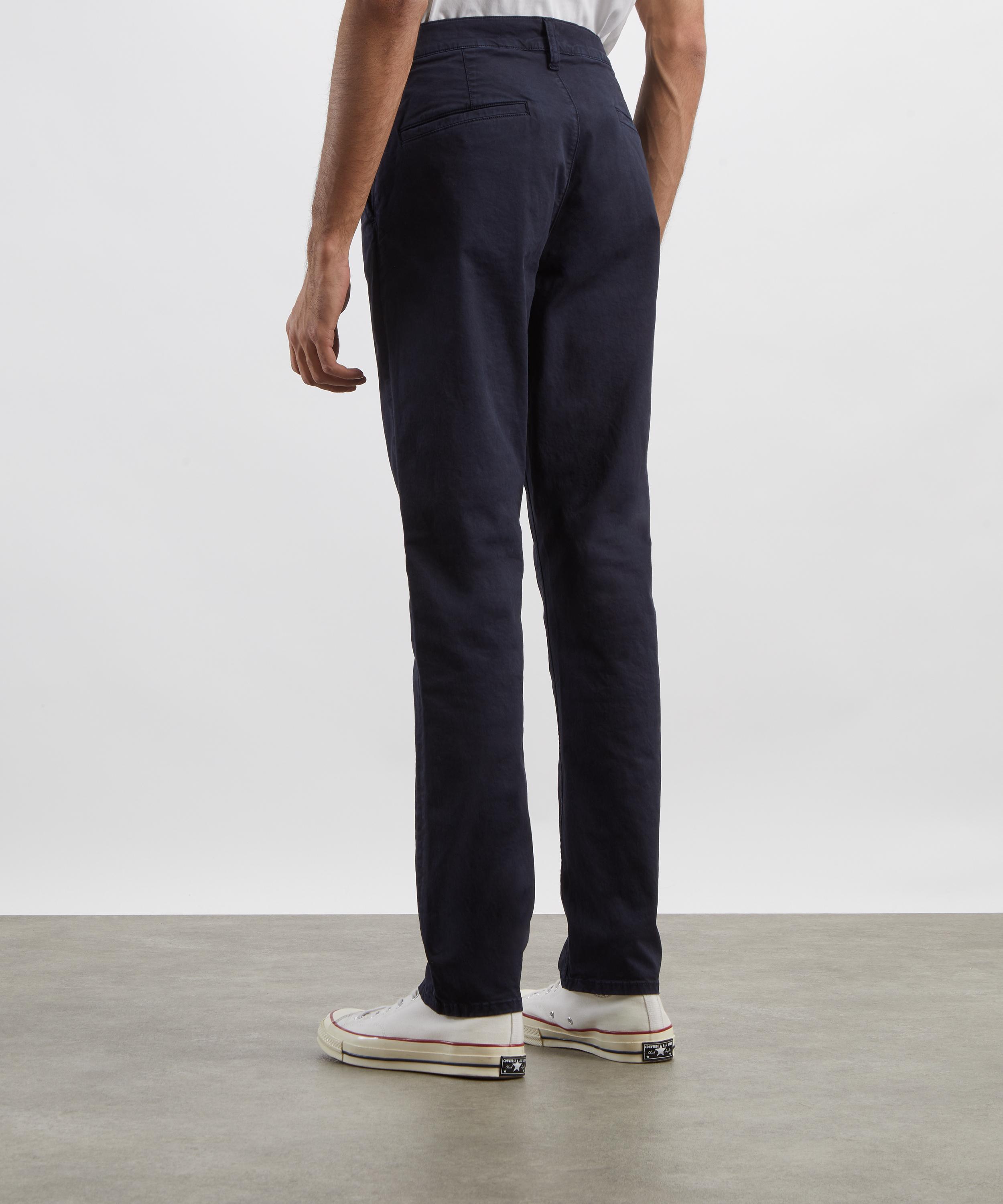 Crafted from comfort stretch twill, these navy chinos offer a modern take on a timeless classic. Designed with a slim, tapered fit, they feature a zip fly, four pockets, and tonal stitching for an effortlessly refined finish.