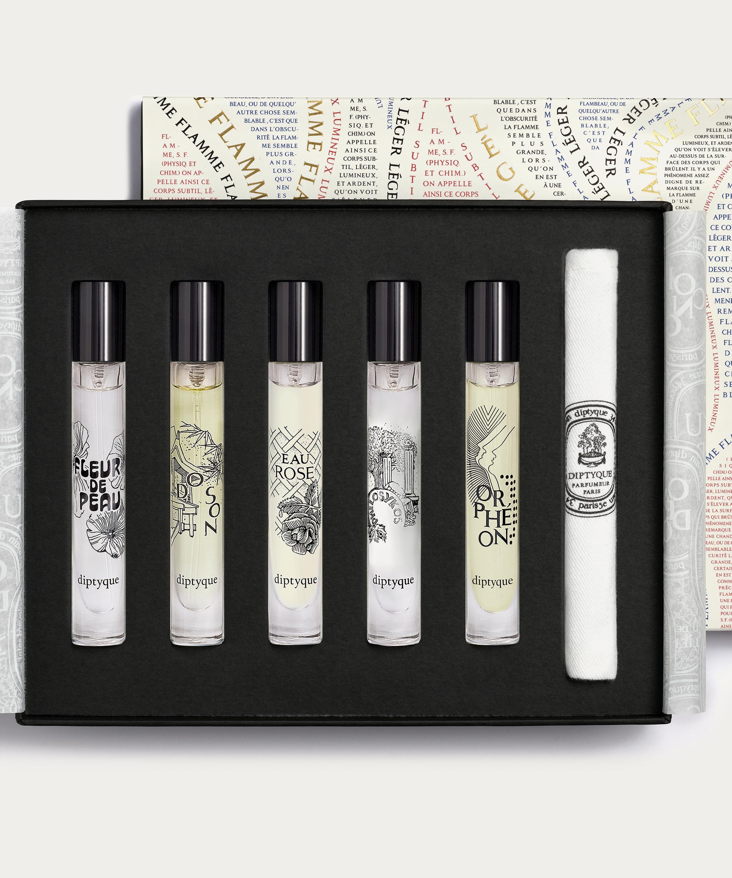 Envelop in the luxury of French parfums with this introduction to Diptyque’s range, including elegantly curated travel-sized vials that are ideal for experimenting with fragrance to discover your signature scent.