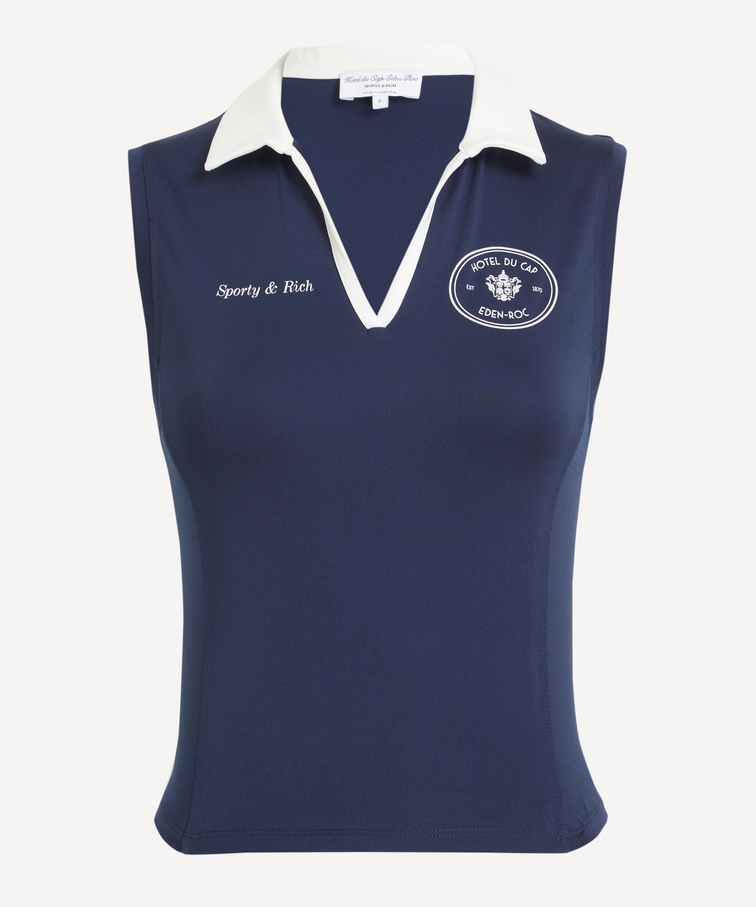 Inspired by classic tennis styles, this sleeveless polo shirt features a contrasting white spread collar, and printed Eden Crest and Sport & Rich logos to the chest for a polished, refined touch.