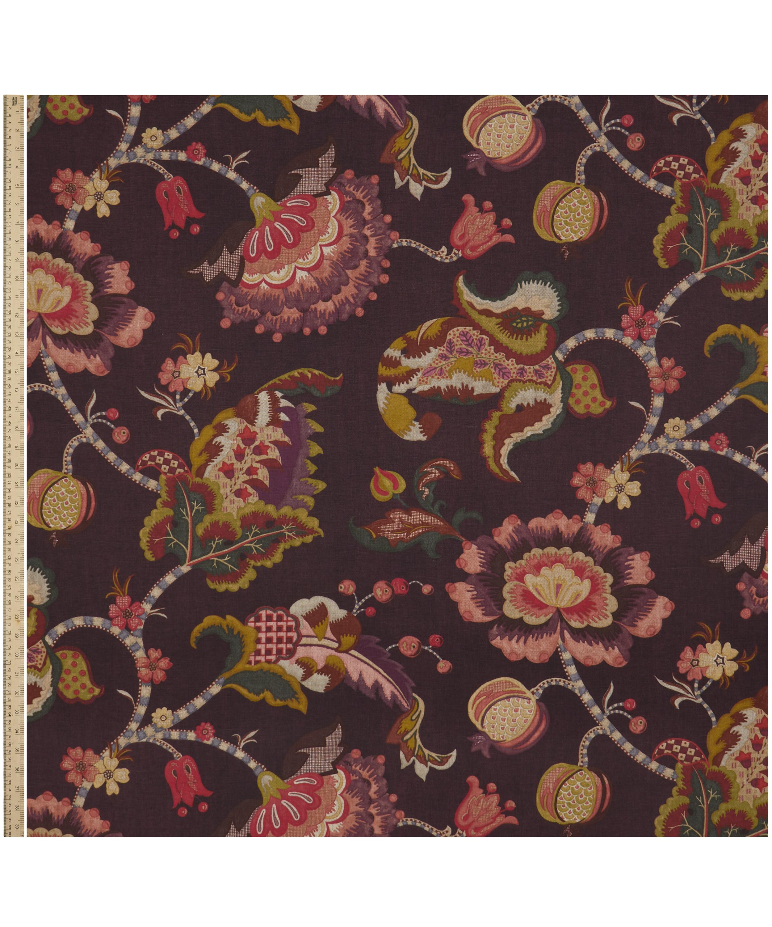 Drawing inspiration from a collection of Jacobean-style, hand-painted artworks discovered in the Liberty archive, this striking ornamental design showcases the grandeur of early 17th century textiles. Oversized flowers enveloped by lush foliage are depicted in refreshing hues and arranged in a trailing Tree of Life-style pattern, highlighting the richness of flow and form. Expertly printed in Italy onto a linen base with a heavy drape and soft tumbled finish, Eden Orchard is suitable for upholstery, drapery, cushions, and accessories.
