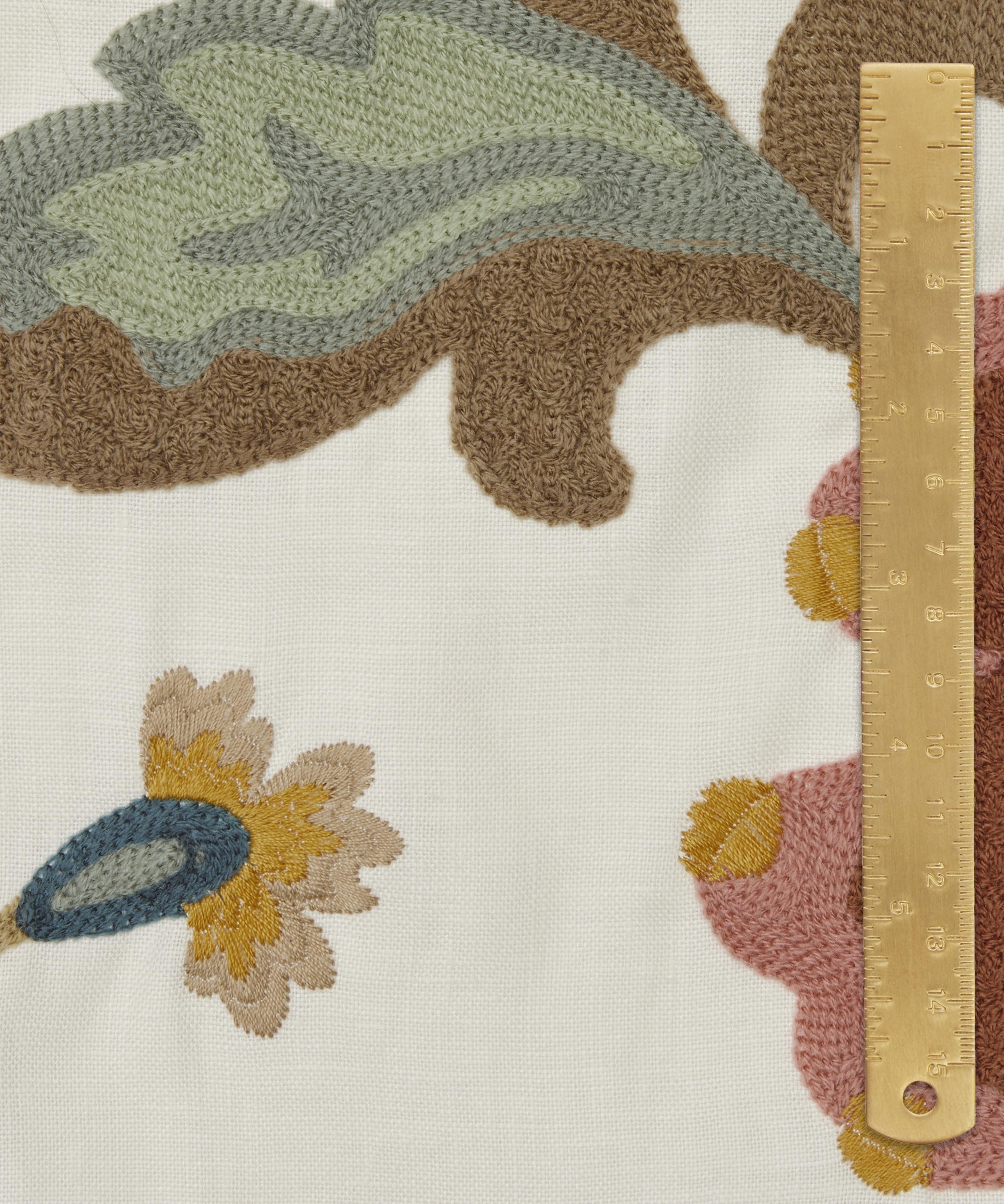 Drawing inspiration from a collection of Jacobean-style, hand-painted artworks discovered in the Liberty archive, this striking ornamental embroidery showcases the grandeur of early 17th century textiles. Oversized flowers enveloped by lush foliage are depicted in refreshing hues and arranged in a trailing Tree of Life-style pattern, highlighting the richness of flow and form. Carefully crafted by expert embroiderers in India using brightly hued yarns, Eden Stitch is ideal for upholstery, drapery, and cushions.