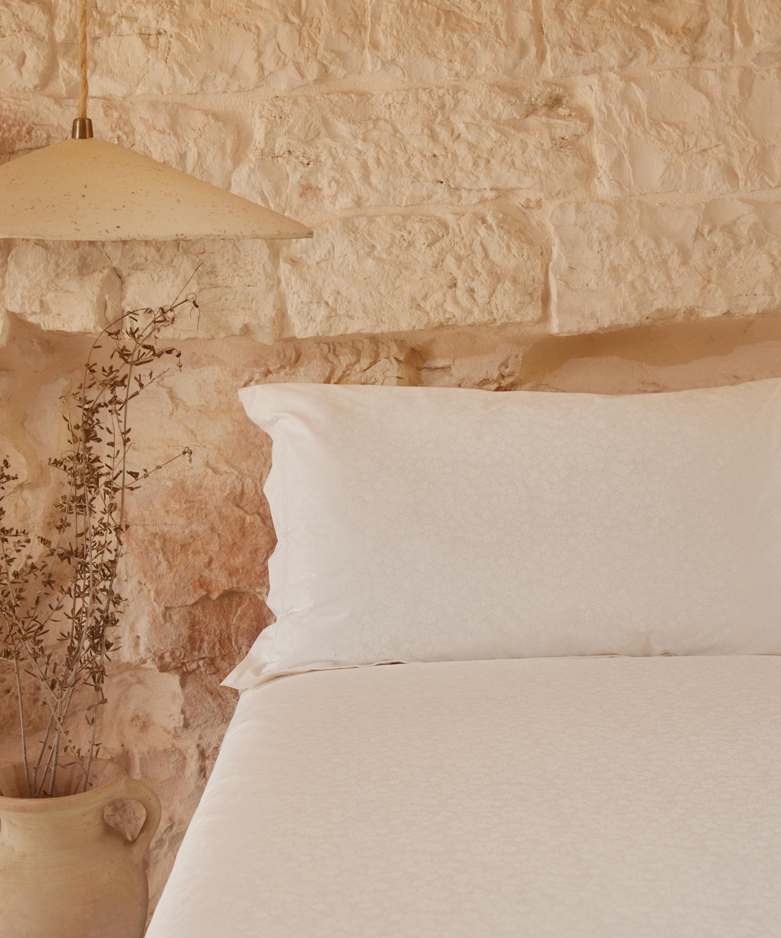 Liberty’s Edenham Mono duvet set features two standard pillowcases and a double duvet cover, all crafted from luxurious cotton bonneville – a silky-smooth and soft material with a lightweight finish. Printed at our very own Italian fabric mill, Edenham was first designed for Liberty Fabrics in 1994, inspired by motifs from our archive, now reimagined in a fresh, graphic layout. Use the set to incorporate a touch of print alongside a minimalist bedroom set-up.
