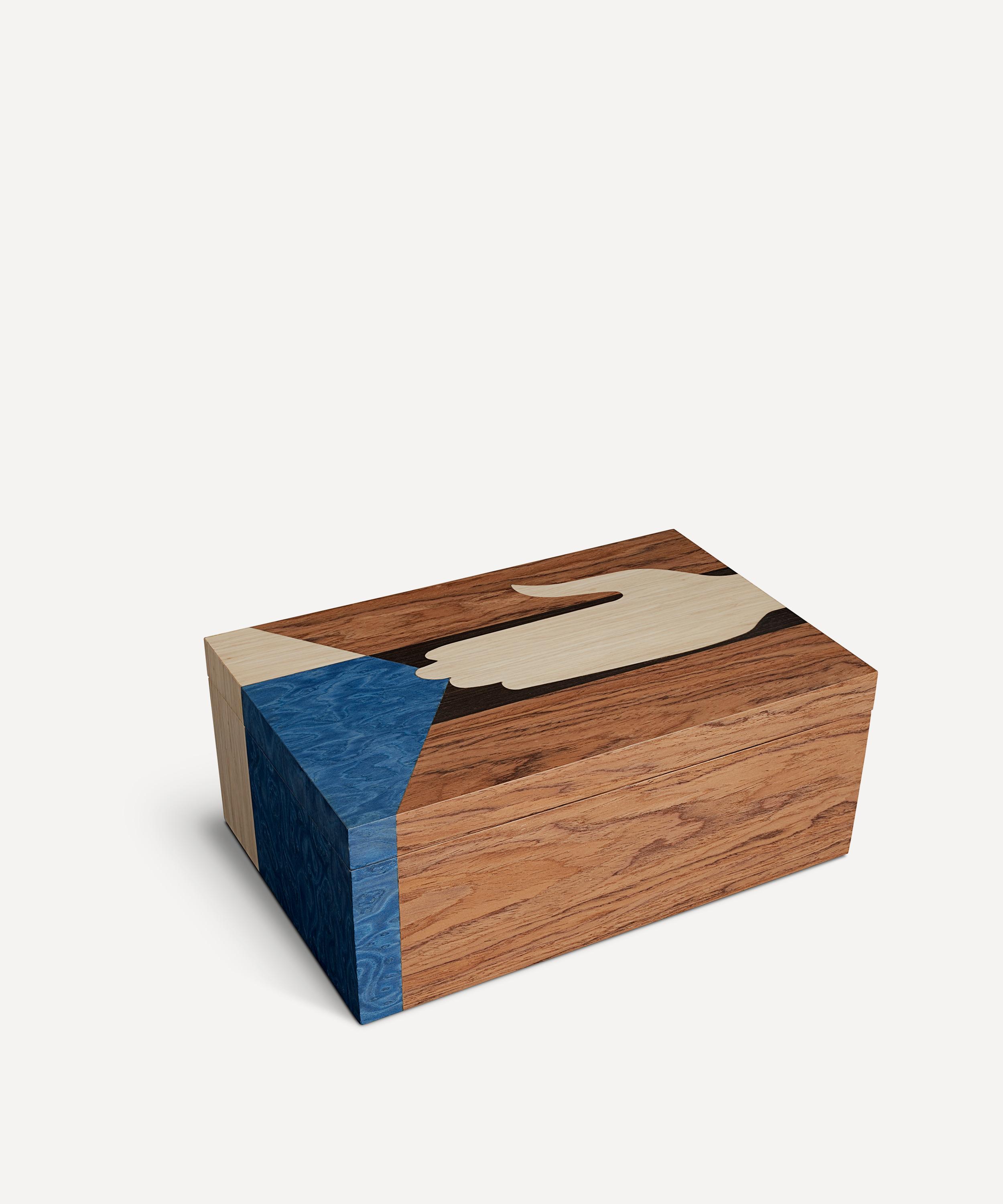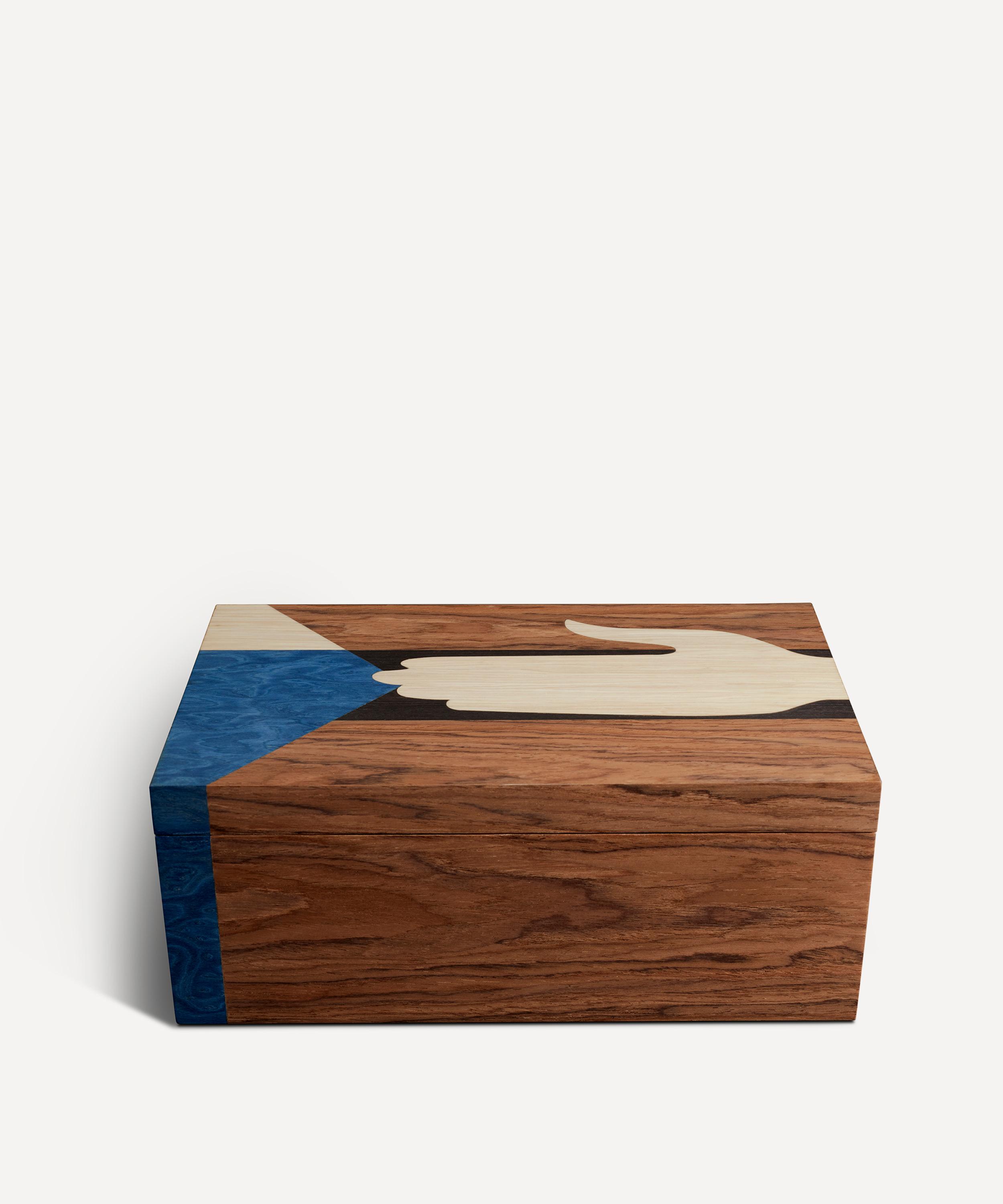 A sleek, stylish way to corral treasures and trinkets, this box has been meticulously handcrafted with authentic exotic wood veneers using marquetry techniques. Featuring a modernist take on the classic hand symbol, place on a shelf or a mantle for a polished yet practical addition to refined spaces.About L'Objet